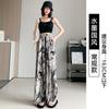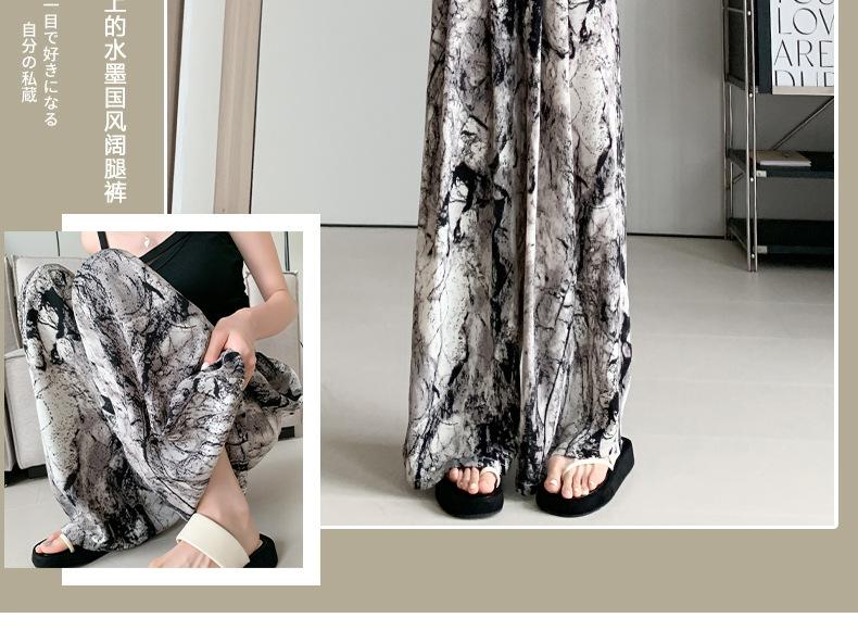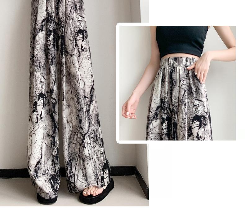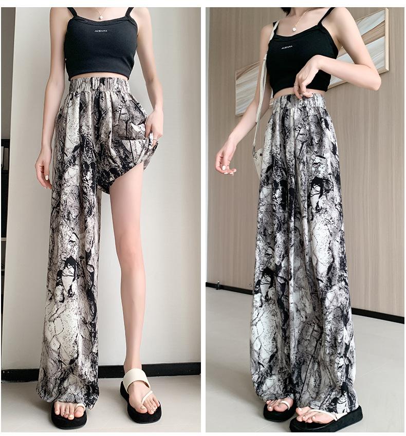 Pantalones de Pierna Ancha de Seda Helada para Mujer, Pantalones Falda de Chifón Fino de Verano, Cintura Alta, Pantalones Frescos de Pierna Recta Holgados, Verano Casual