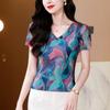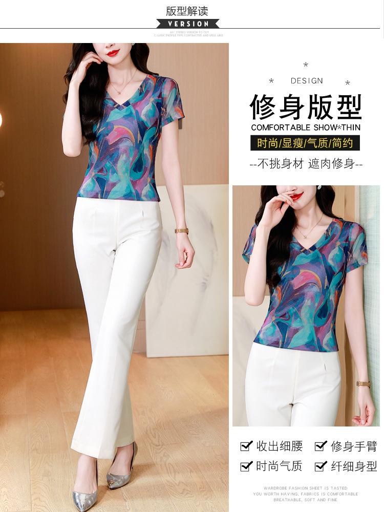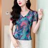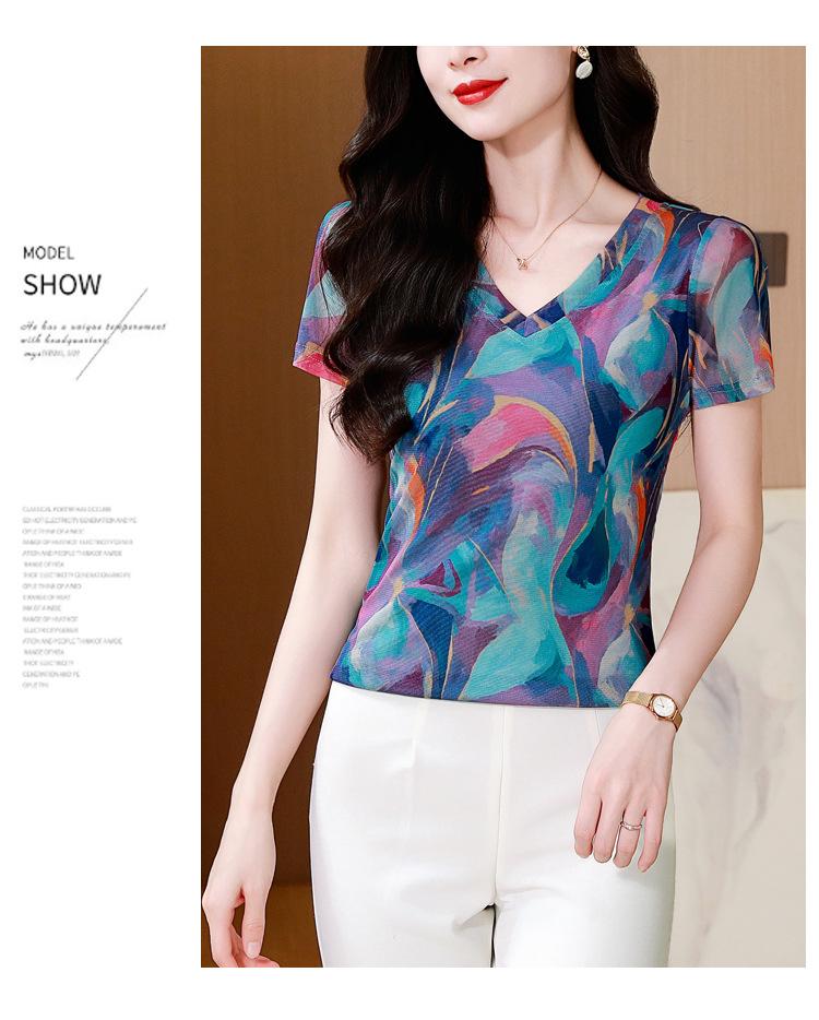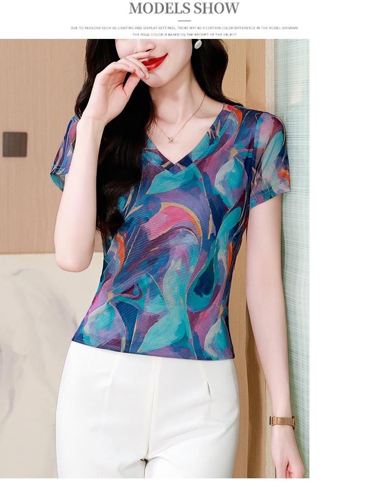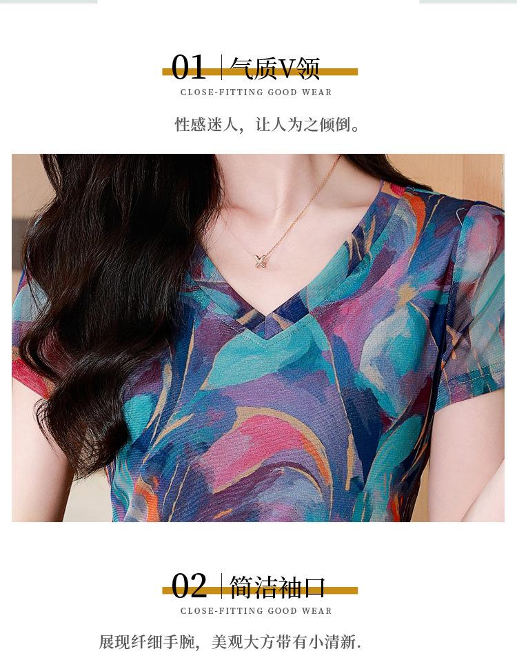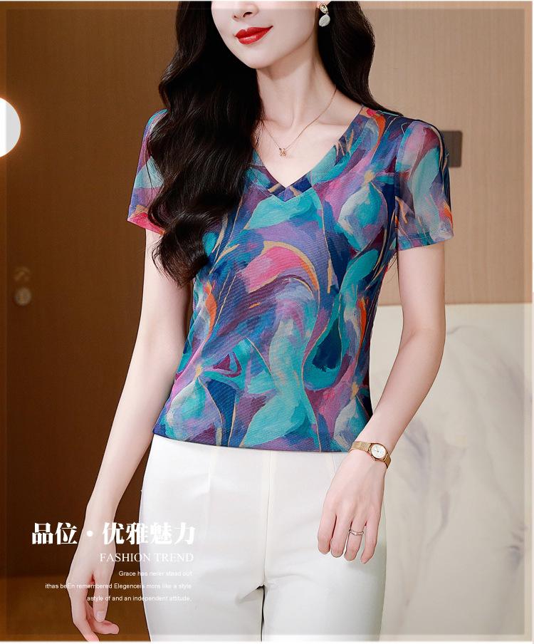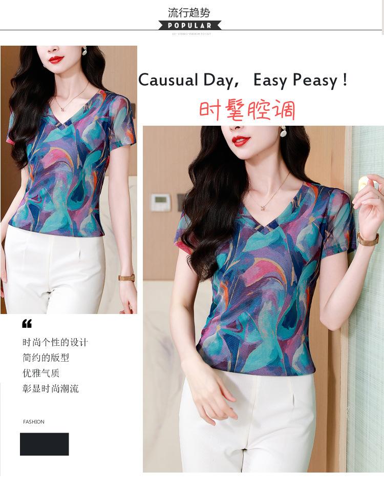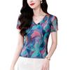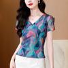 Moda Verano 2025 Camiseta de Manga Corta con Cuello en V de Malla a Contraste de Color para Mujer Ajustada y Elegante Top Jersey de Moda