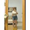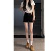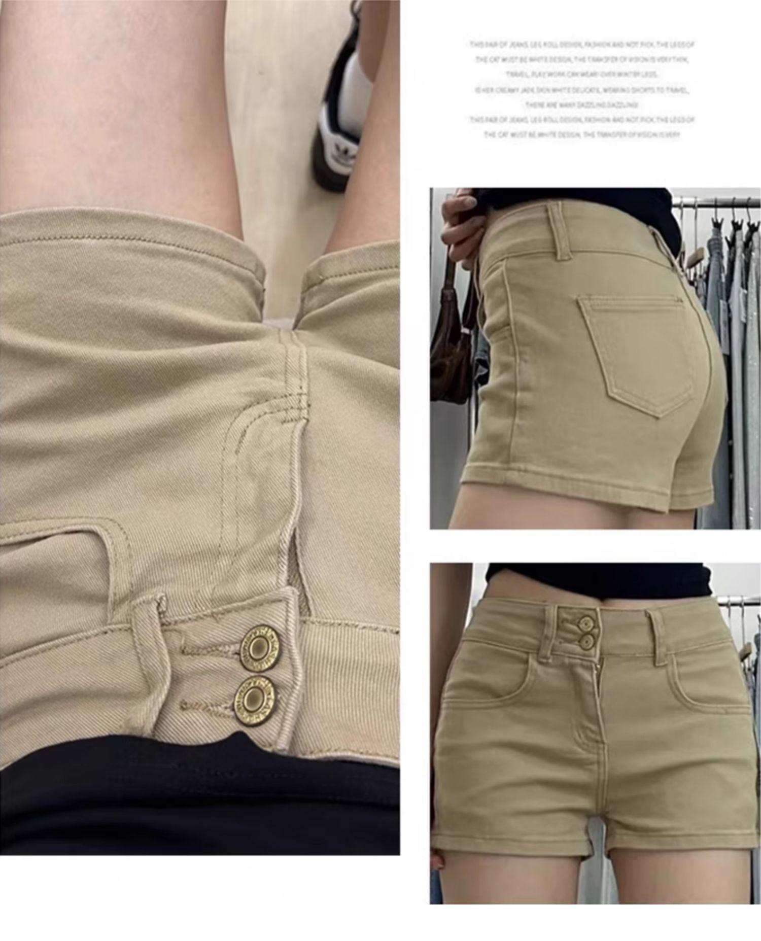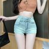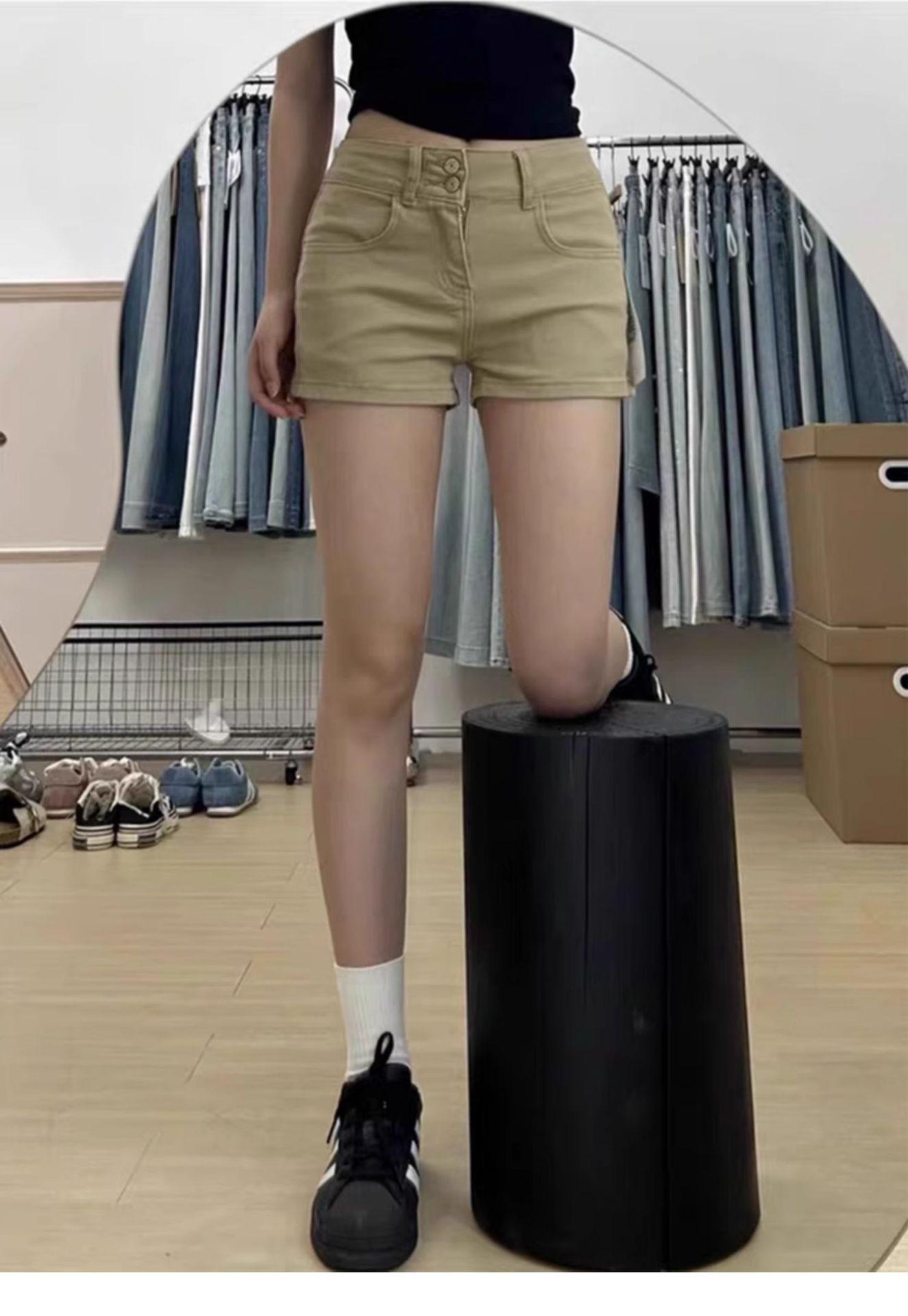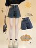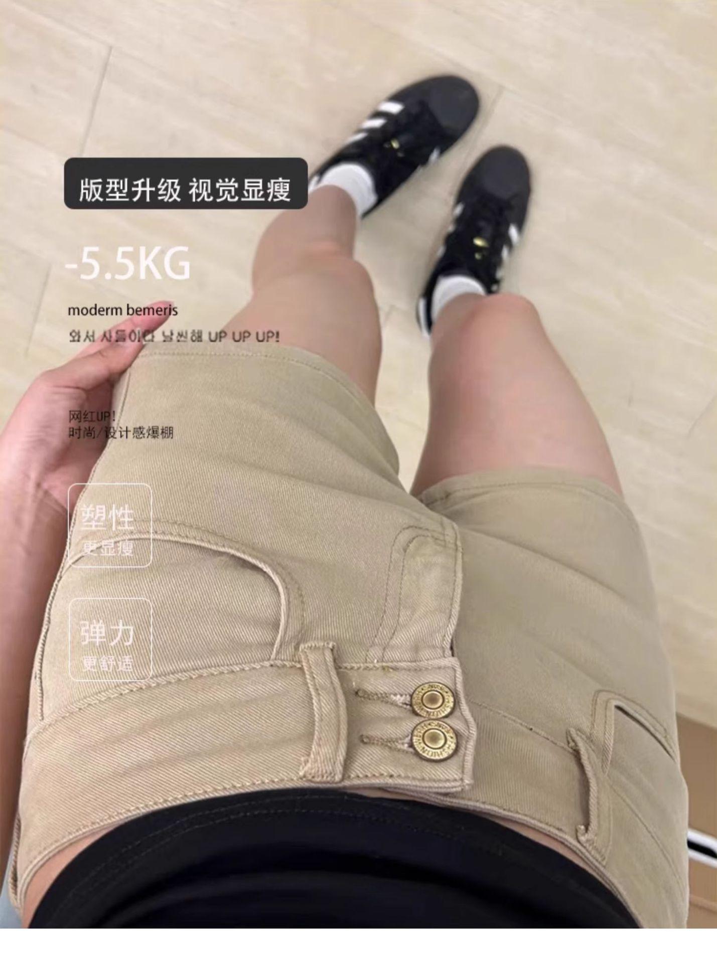 Shorts de mezclilla de talla grande para mujer, verano delgados de cintura alta elásticos adelgazantes versátiles petite línea A pantalones cortos