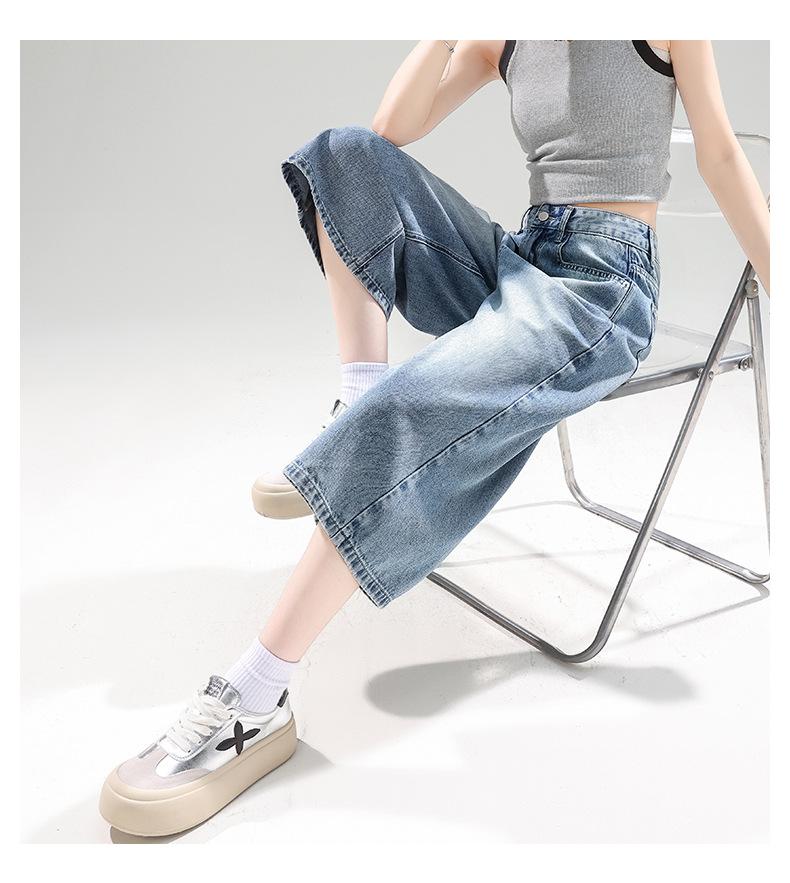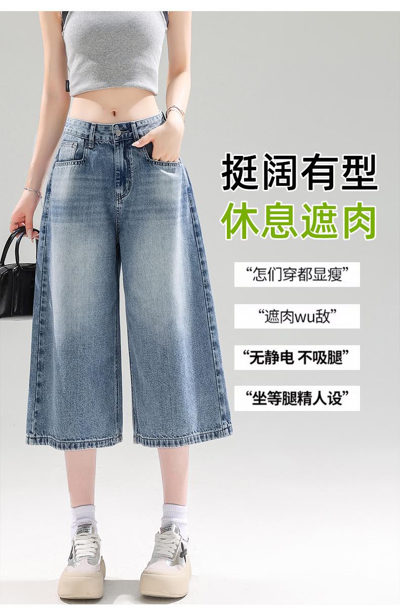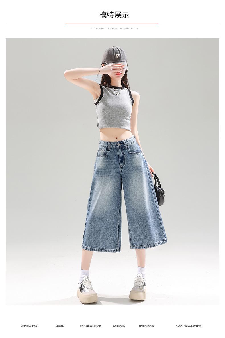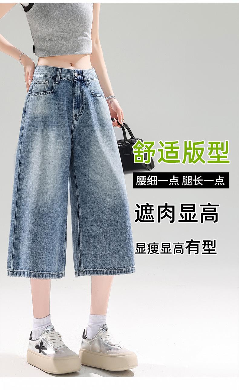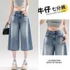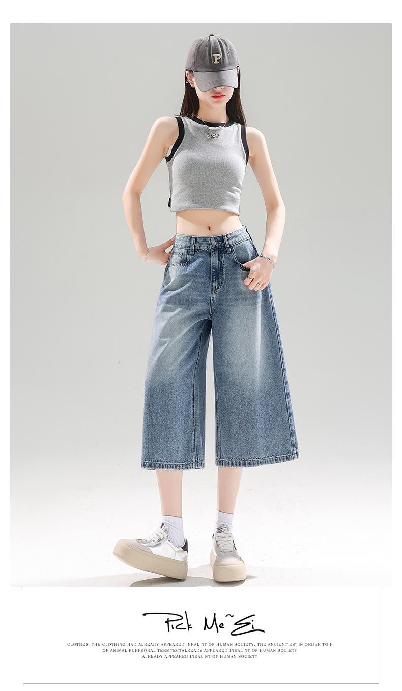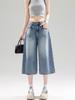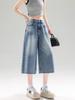 Pantalones de Mezclilla Azules Holgados Adelgazantes de Cintura Alta para Mujer Verano Nuevo Pantalones Cortos de Mezclilla Rectos Delgados A4097