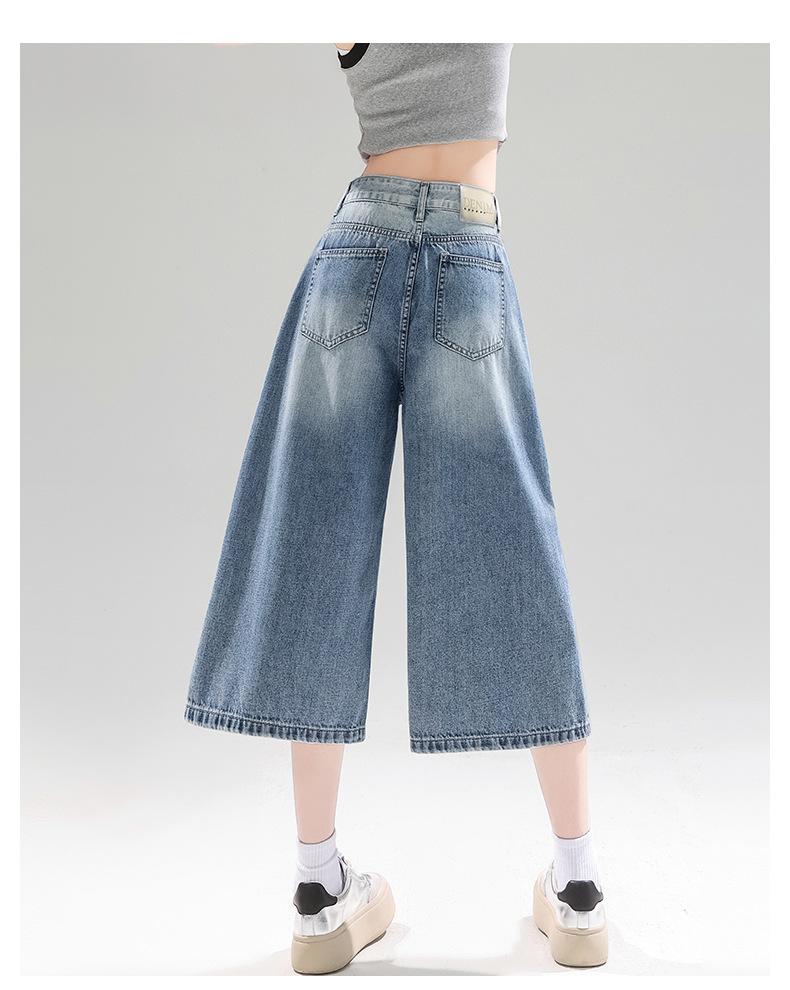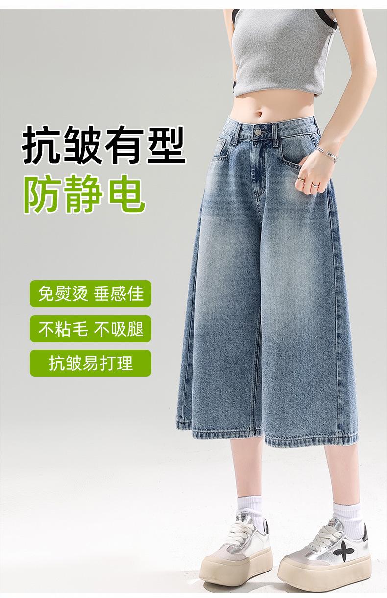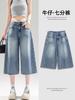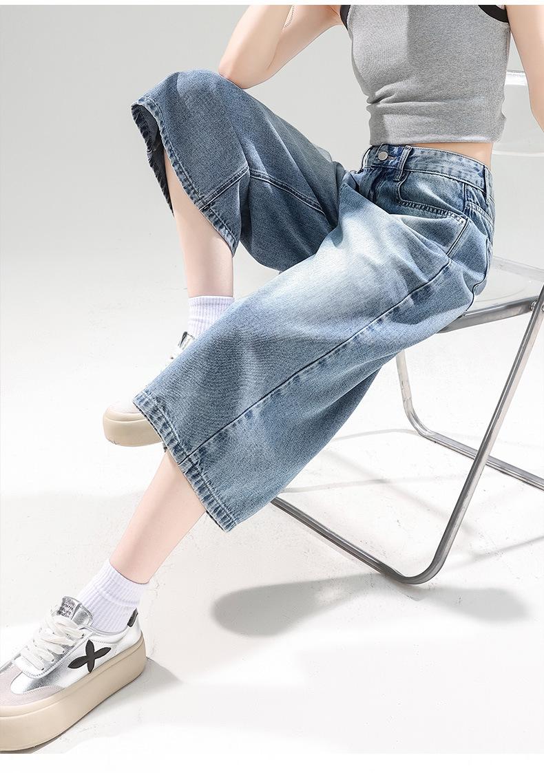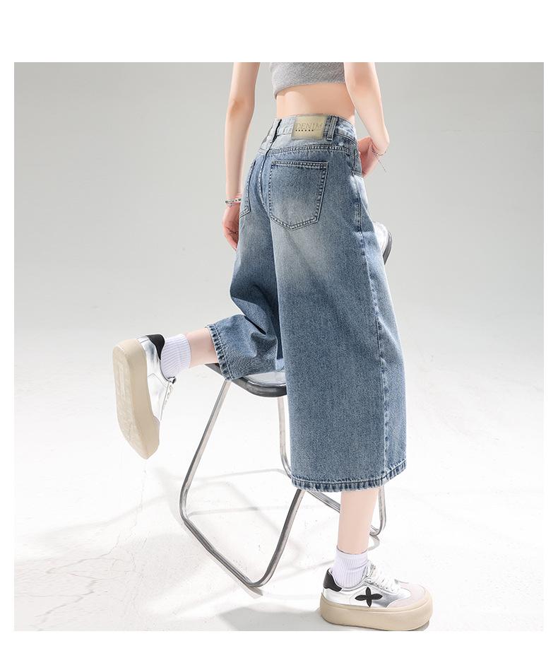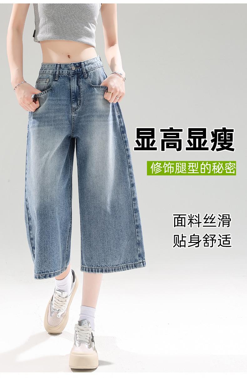 Pantalones de Mezclilla Azules Holgados Adelgazantes de Cintura Alta para Mujer Verano Nuevo Pantalones Cortos de Mezclilla Rectos Delgados A4097