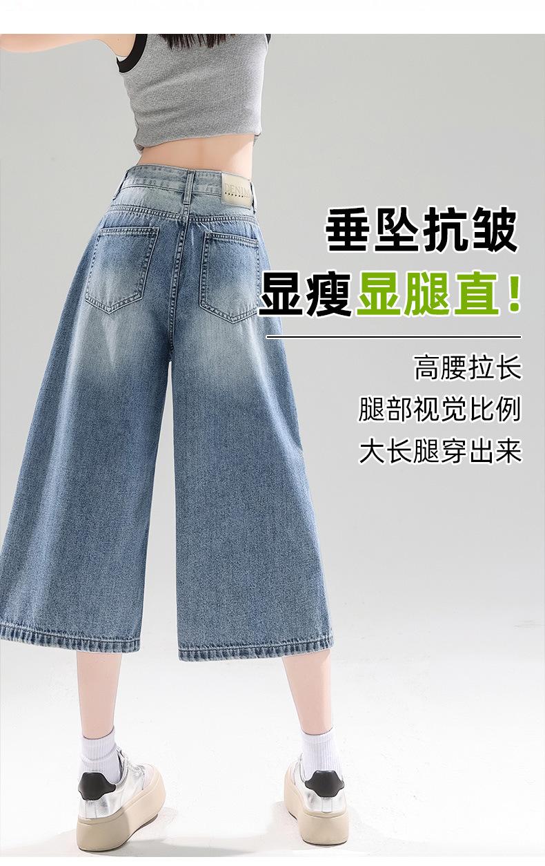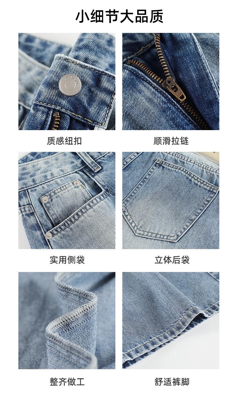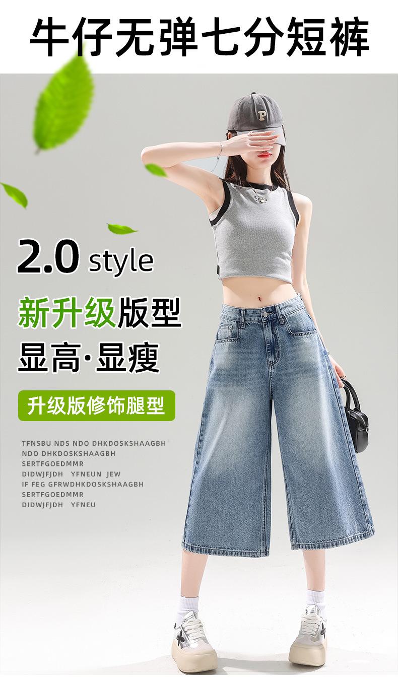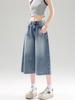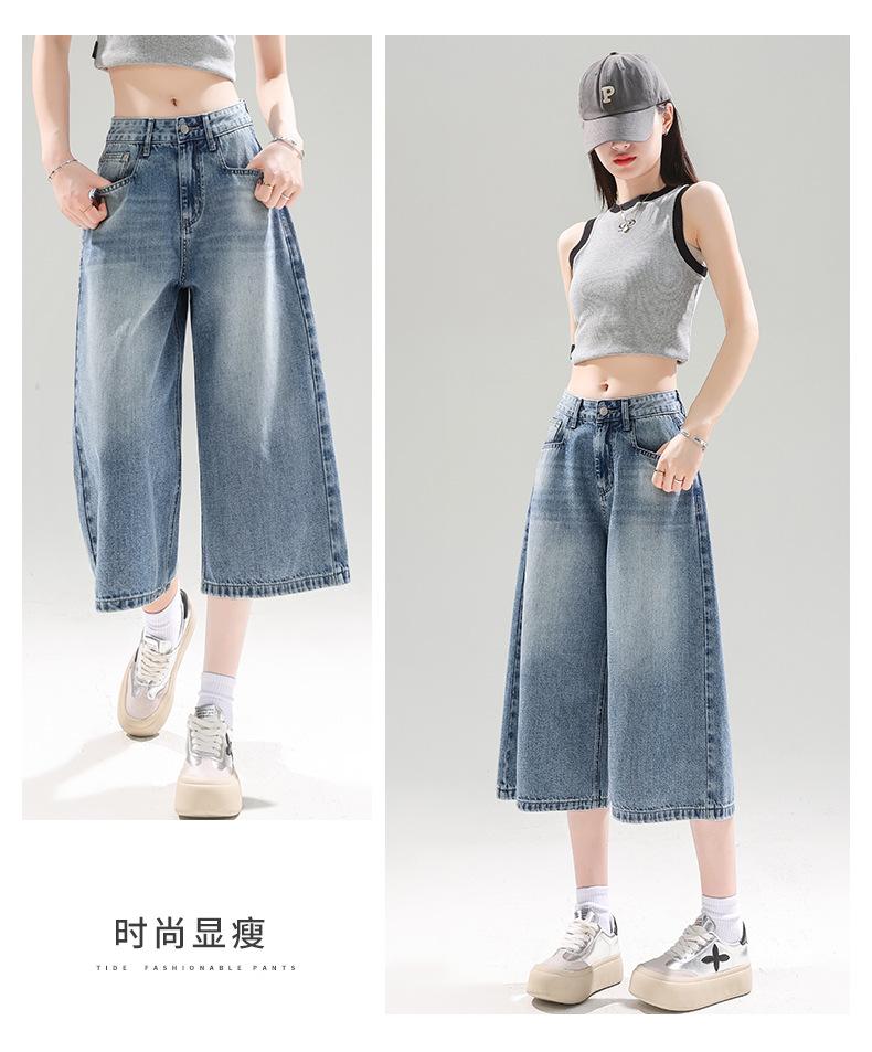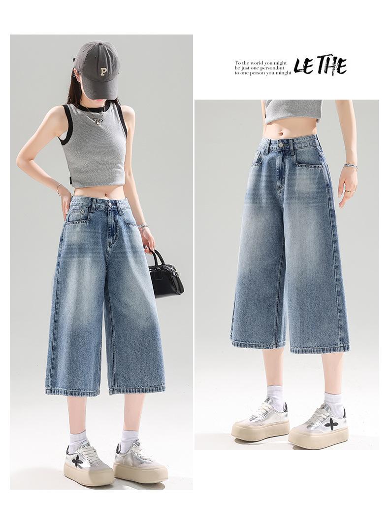 Pantalones de Mezclilla Azules Holgados Adelgazantes de Cintura Alta para Mujer Verano Nuevo Pantalones Cortos de Mezclilla Rectos Delgados A4097