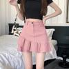 Falda elástica dulce de línea A para mujer, falda con volantes, color a la cadera, combina con todo, primavera, vigorosa, sexy, para chica, falda corta para mujer