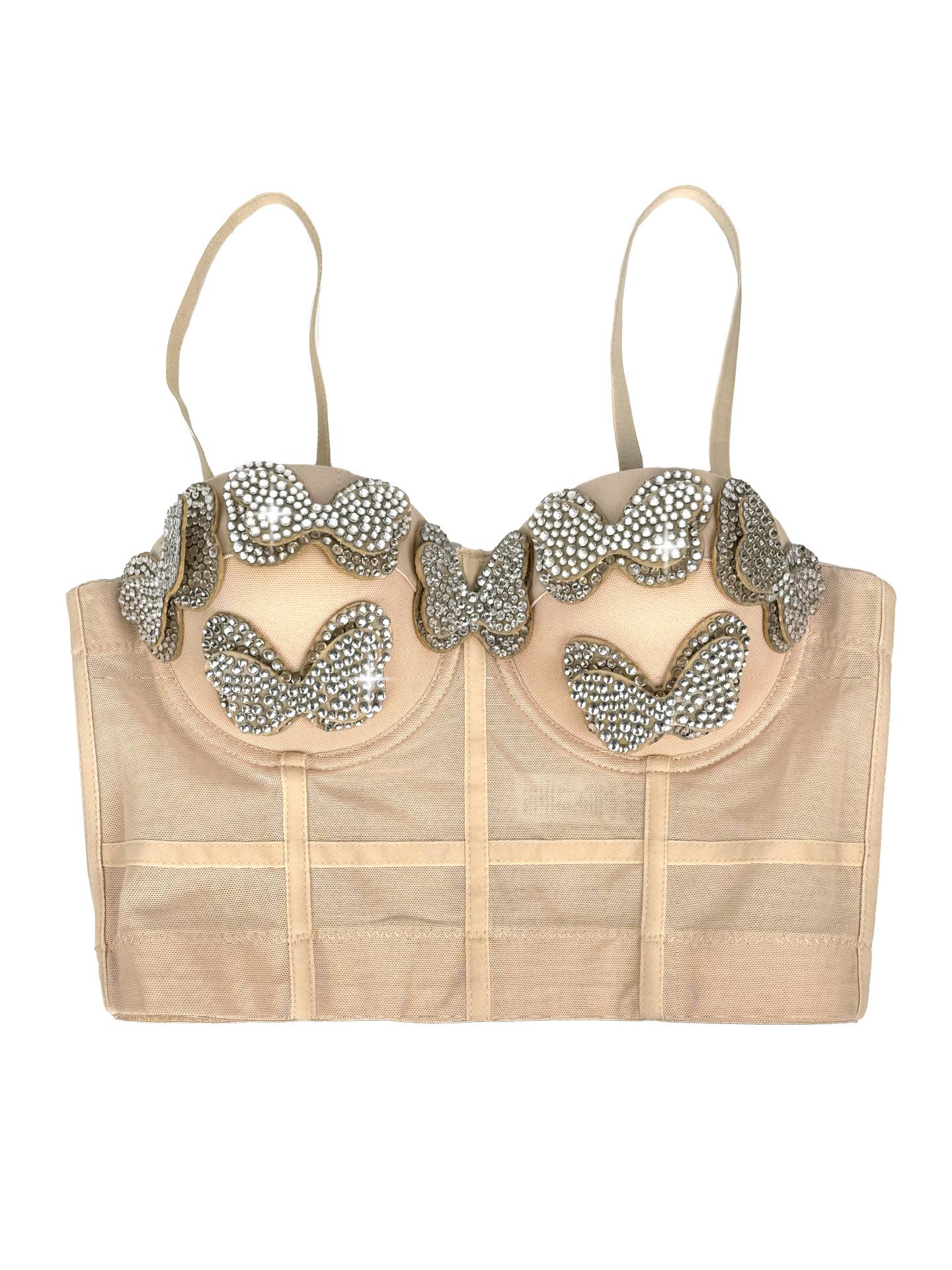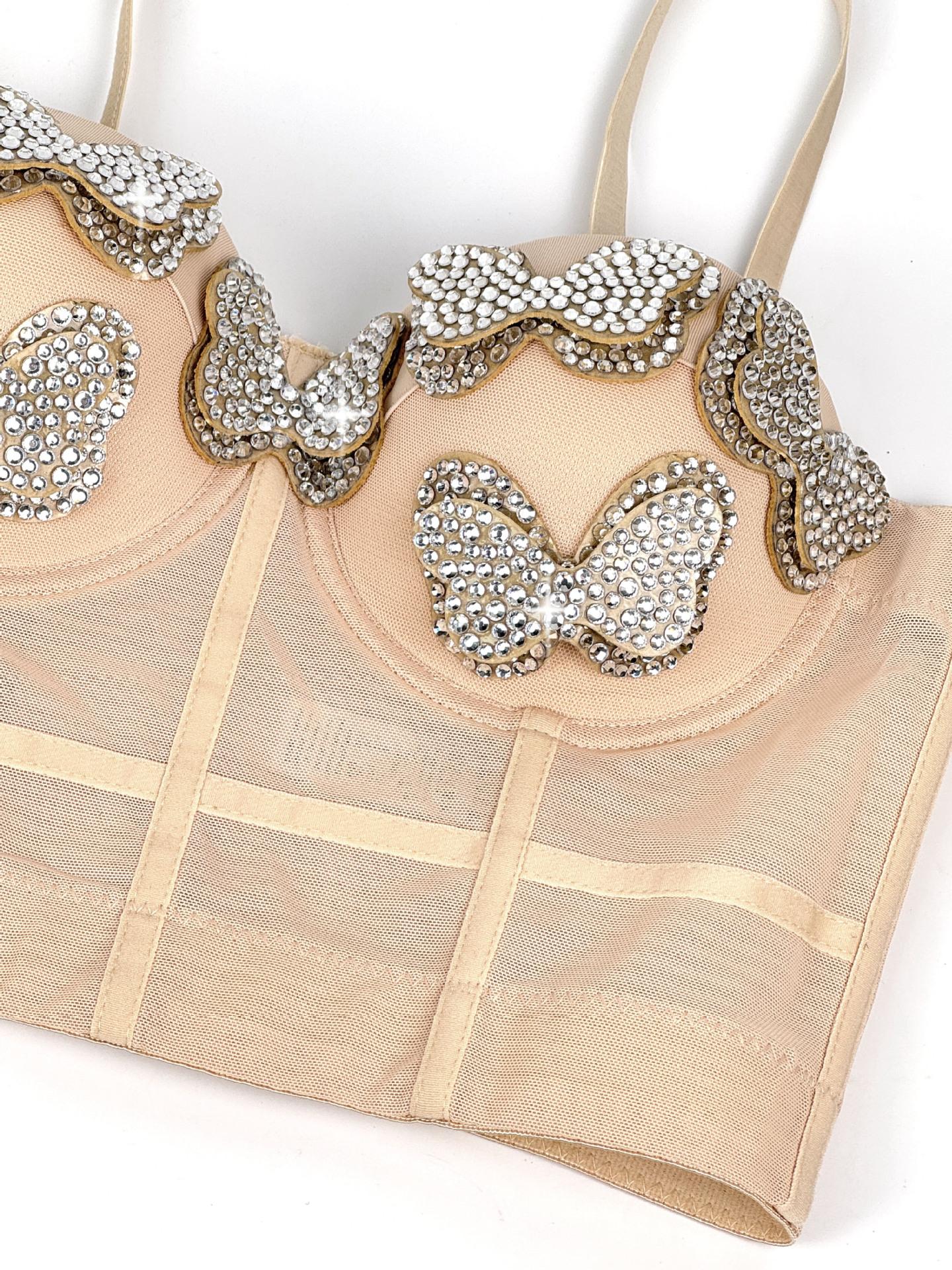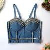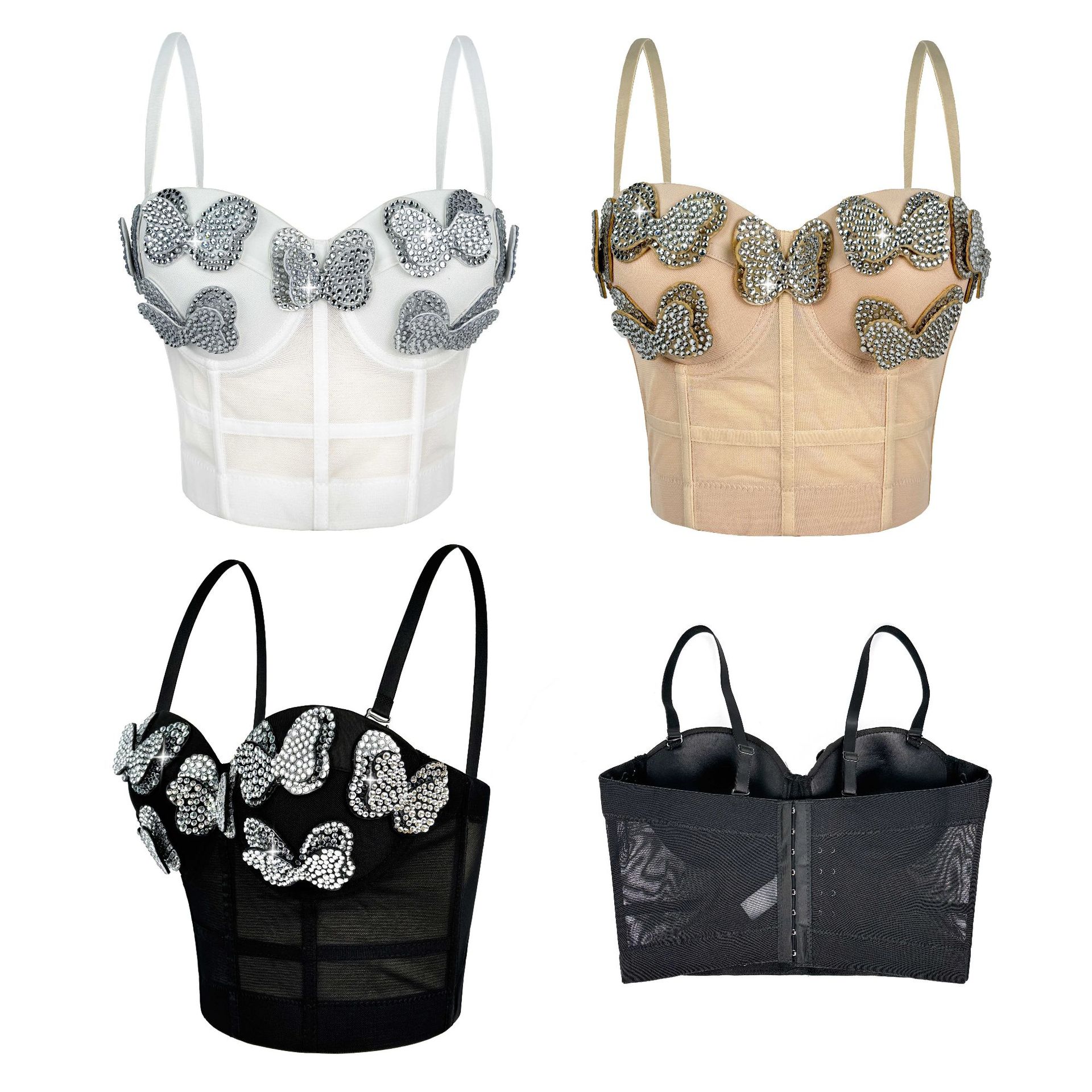 Popular Transfronterizo Pedrería Lazo Tridimensional Sujetador Espina de Pescado Camisola Delgada Brillante Moda Top de Tubo Chica Sexy