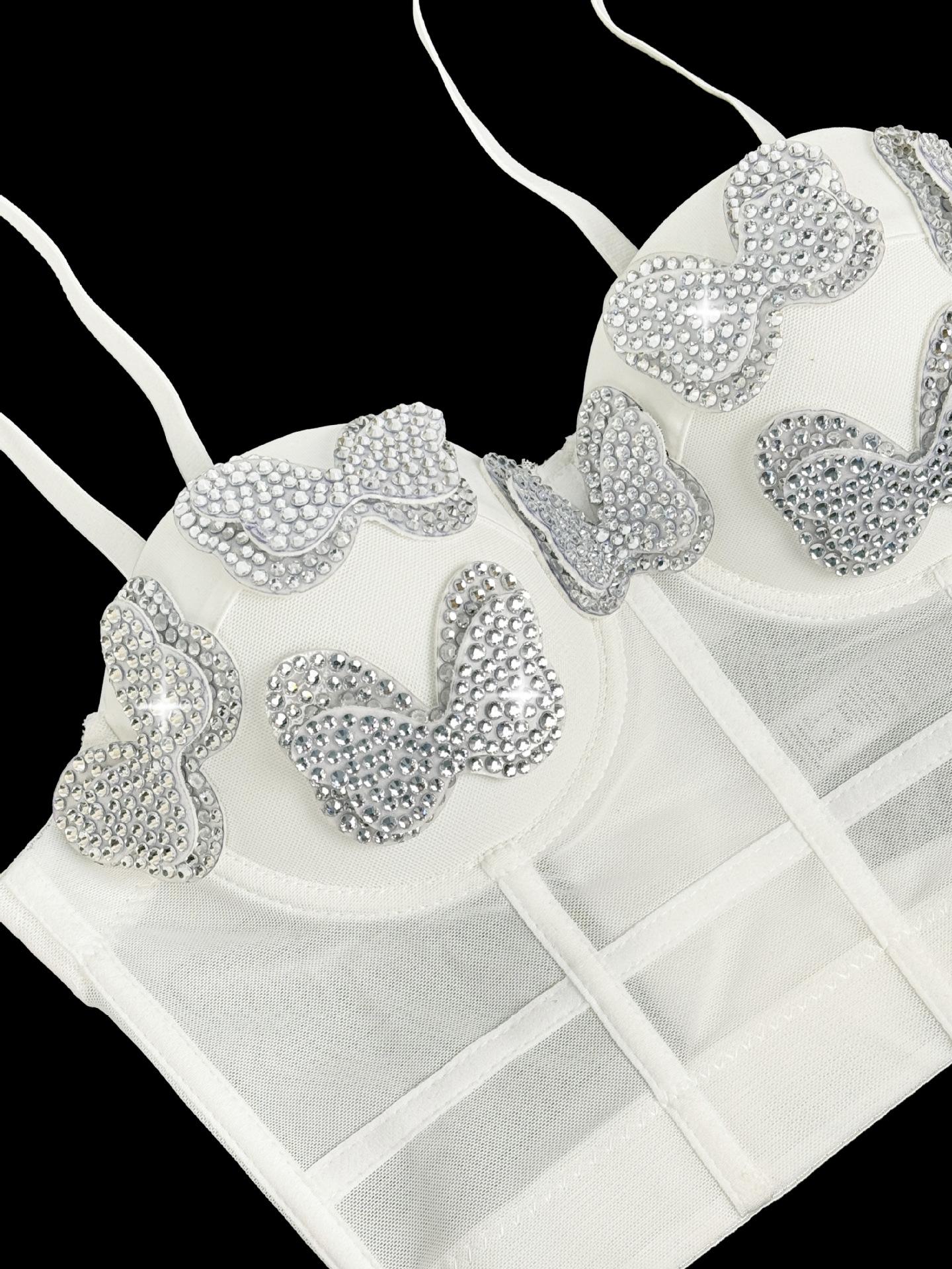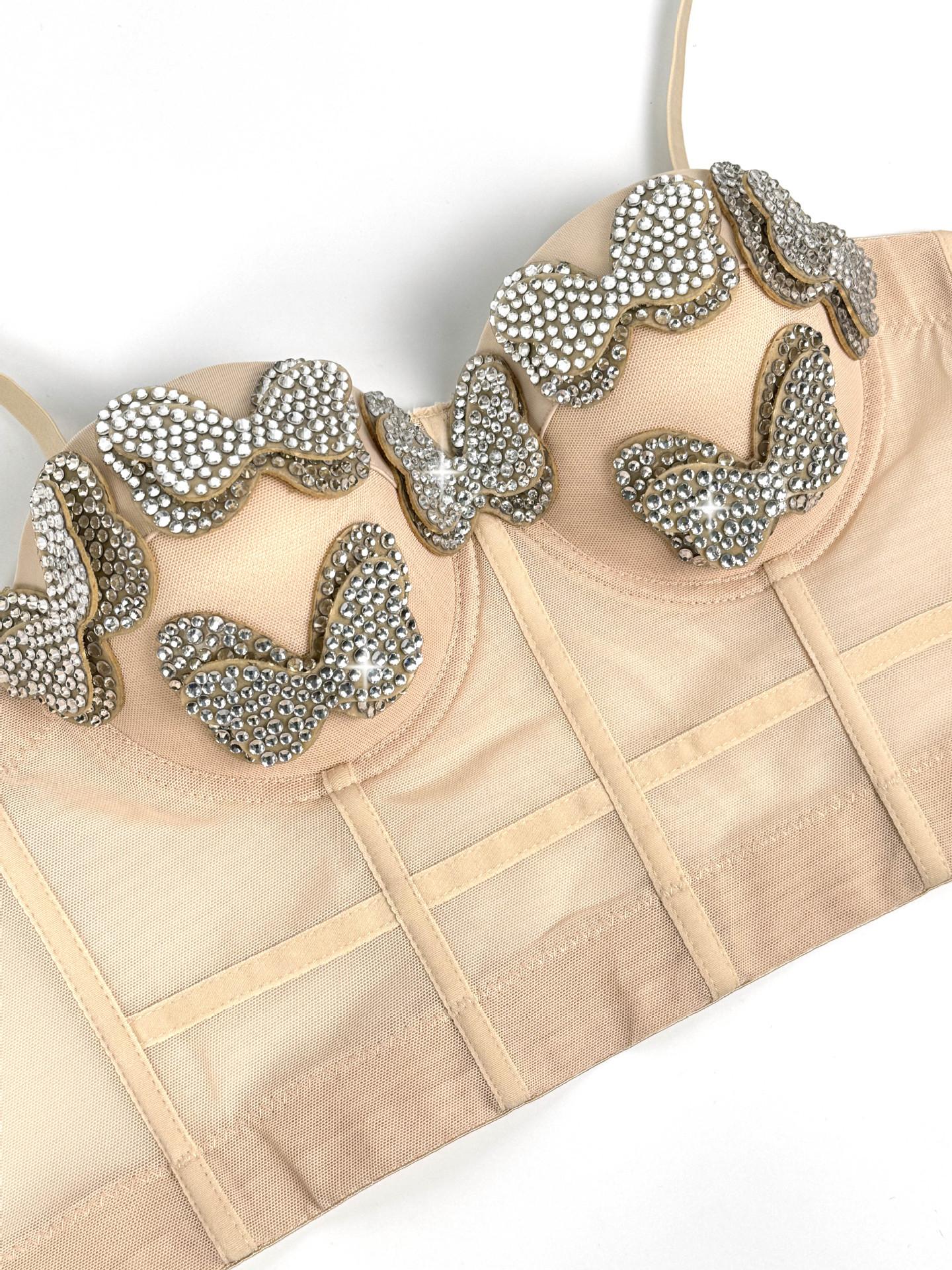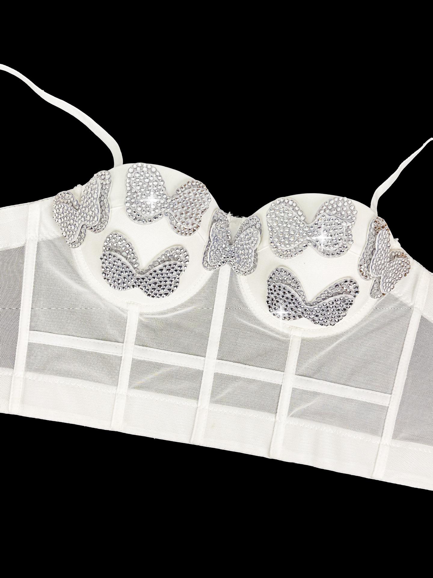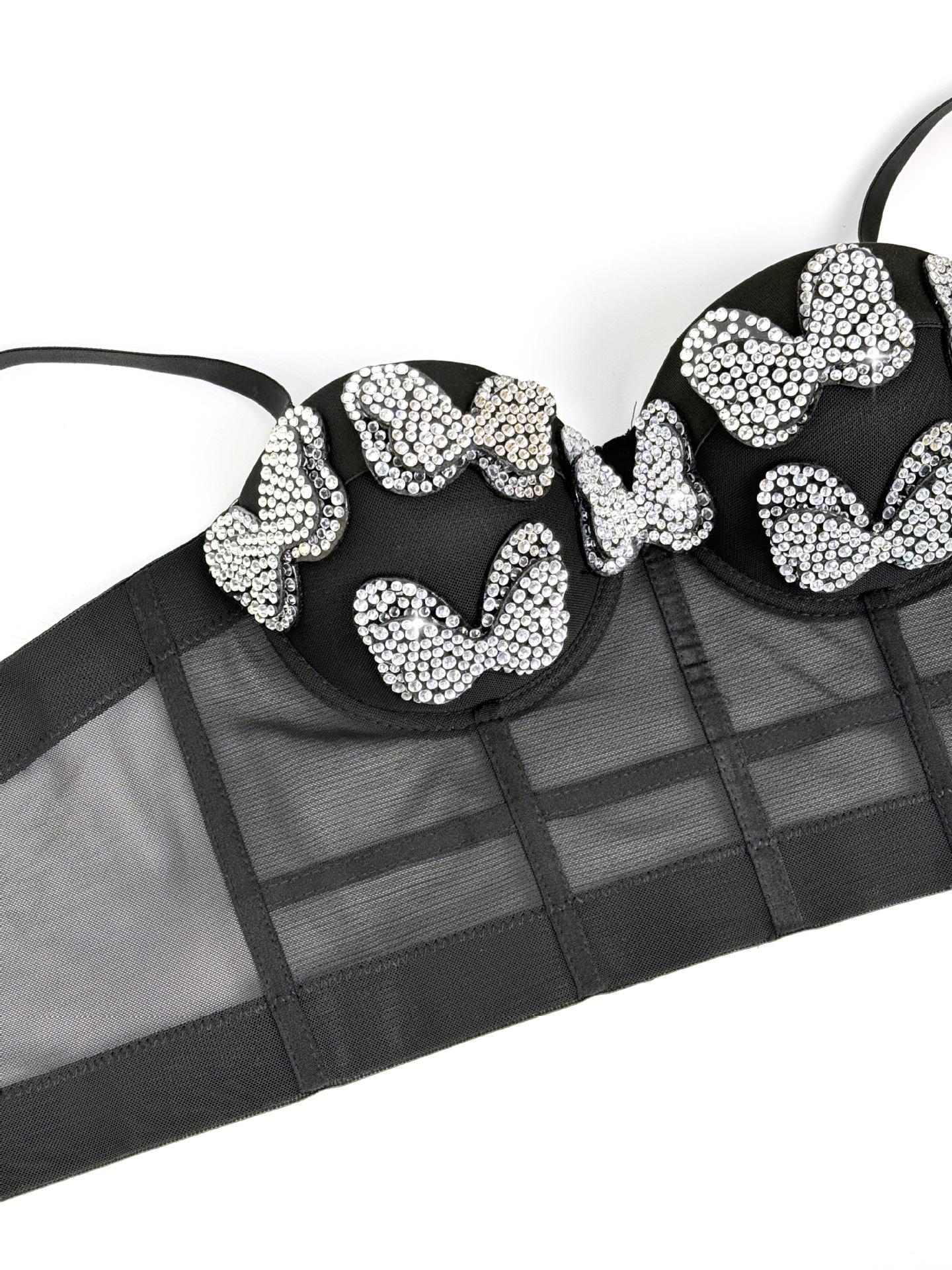 Popular Transfronterizo Pedrería Lazo Tridimensional Sujetador Espina de Pescado Camisola Delgada Brillante Moda Top de Tubo Chica Sexy