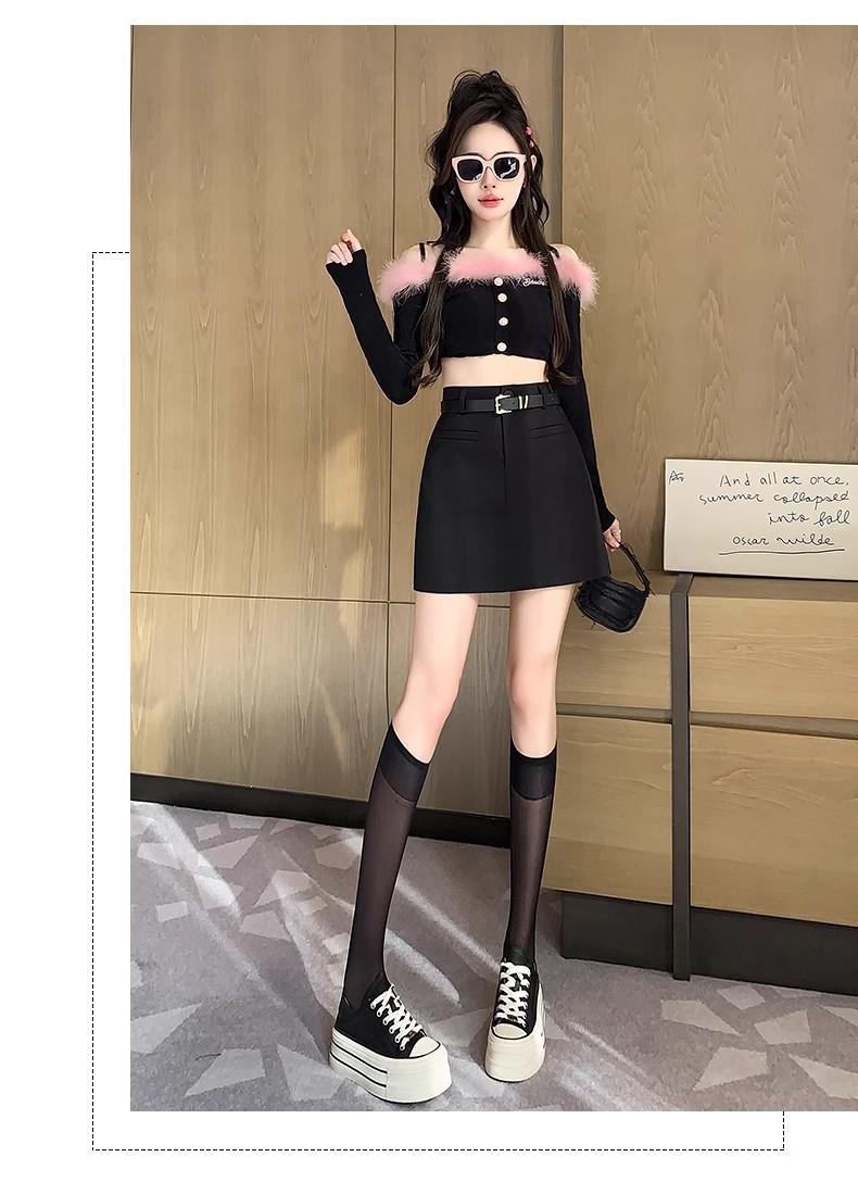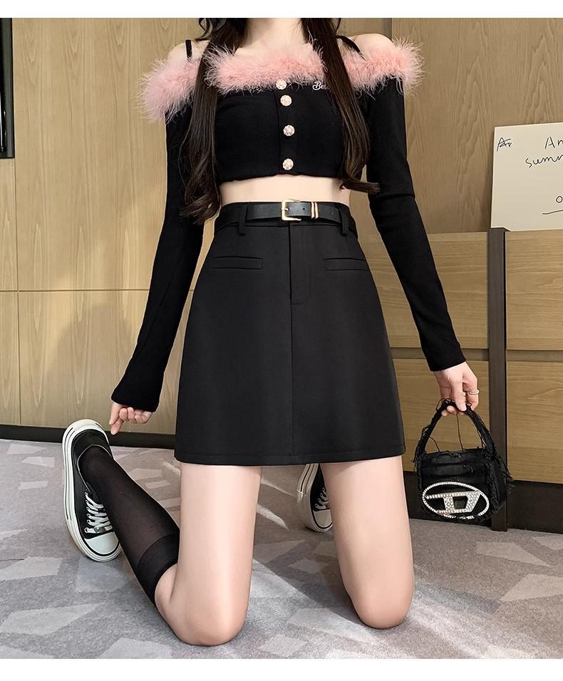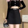 Falda Negra Media Primavera Verano Ropa de Mujer 2025 Nueva Cintura Alta Bodycon A-line Falda Petite Adelgazante Traje Mini Falda