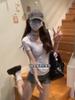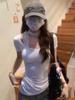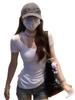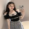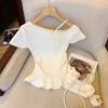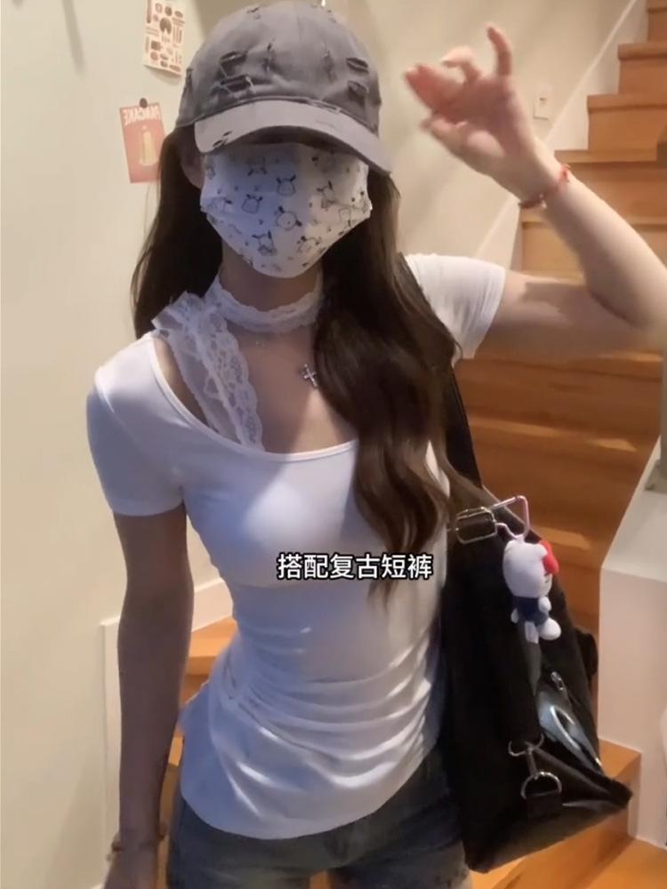 Camiseta Blanca de Manga Corta con Diseño Halter de Encaje Puro y Sexy para Mujer Verano Cuello Irregular Chic Adelgazante
