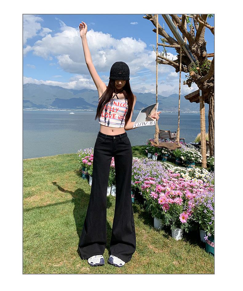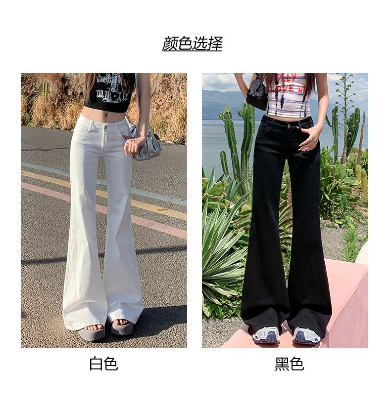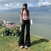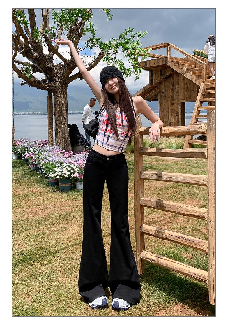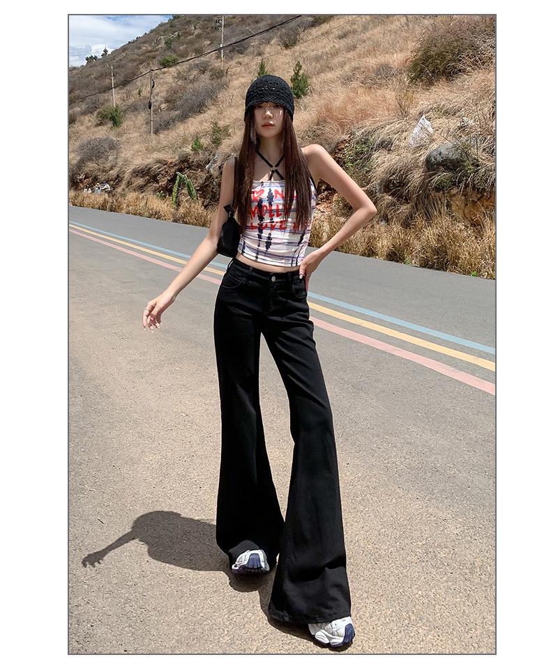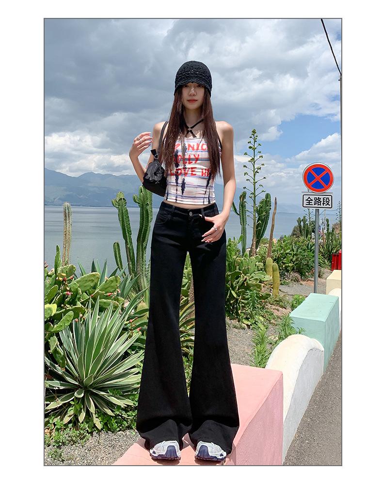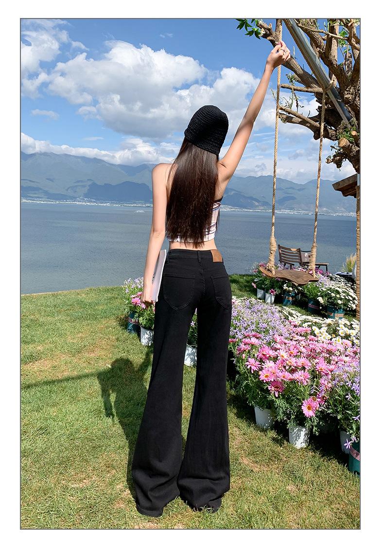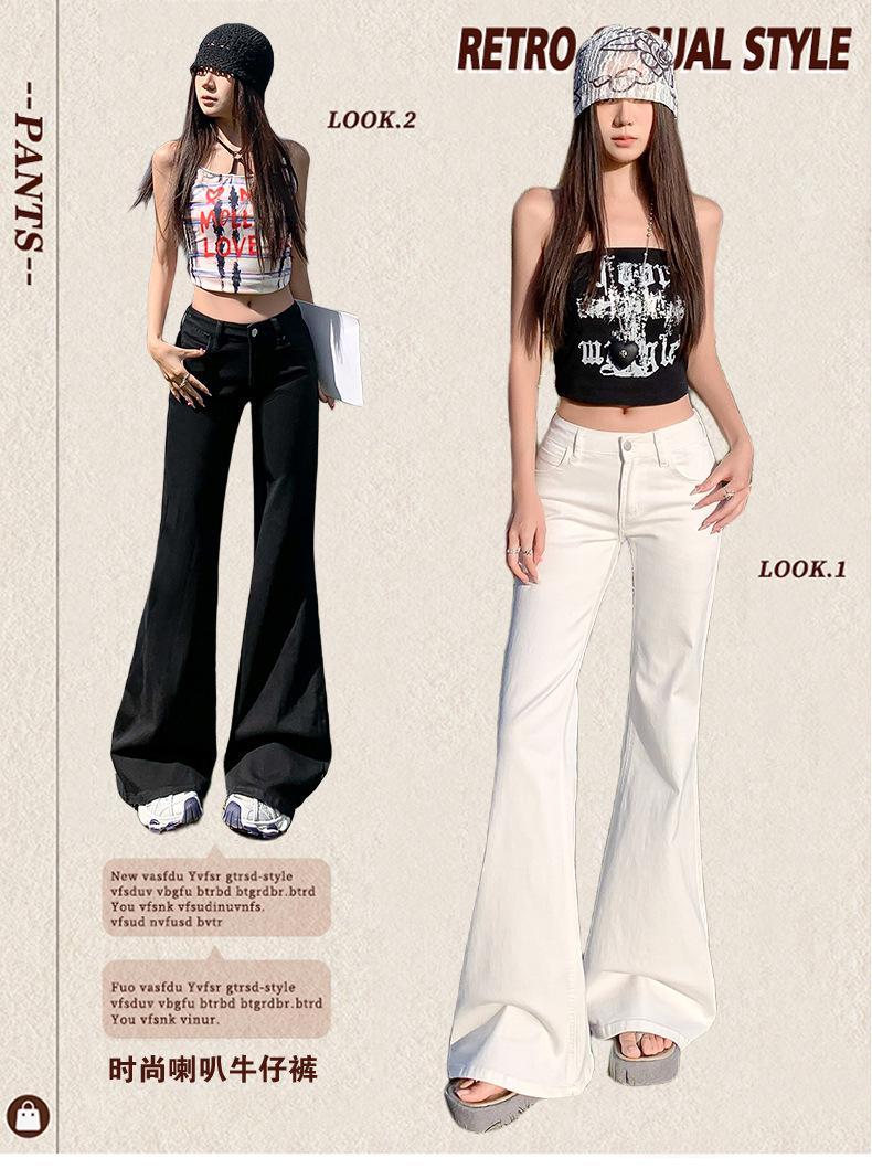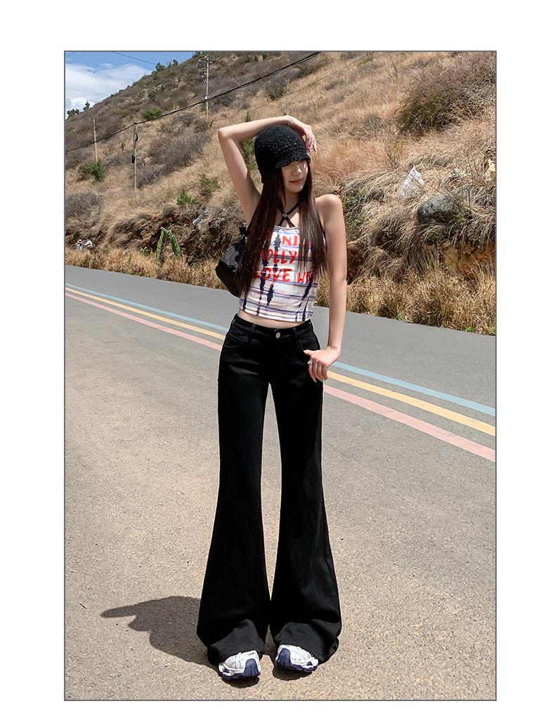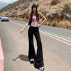 Jeans negros de tiro bajo microacampanados para mujer 2025 Verano Nuevo Estilo Americano Elásticos Look Adelgazante Versátiles Pantalones Acampanados