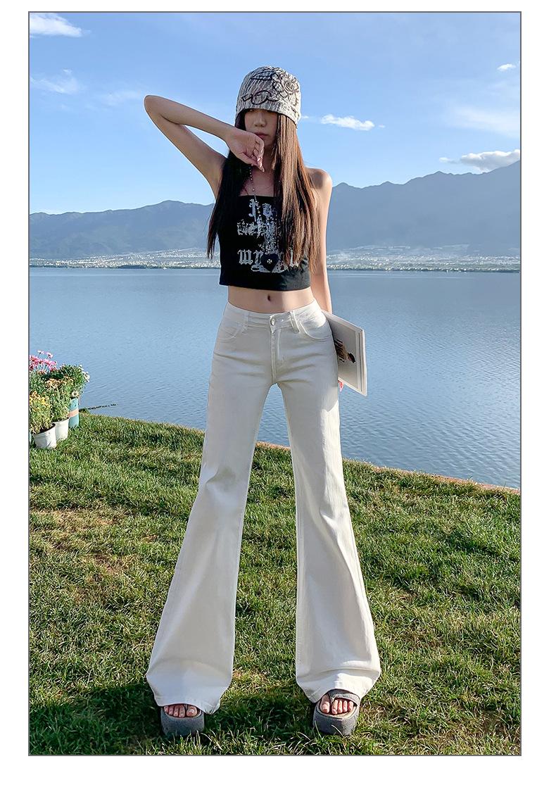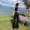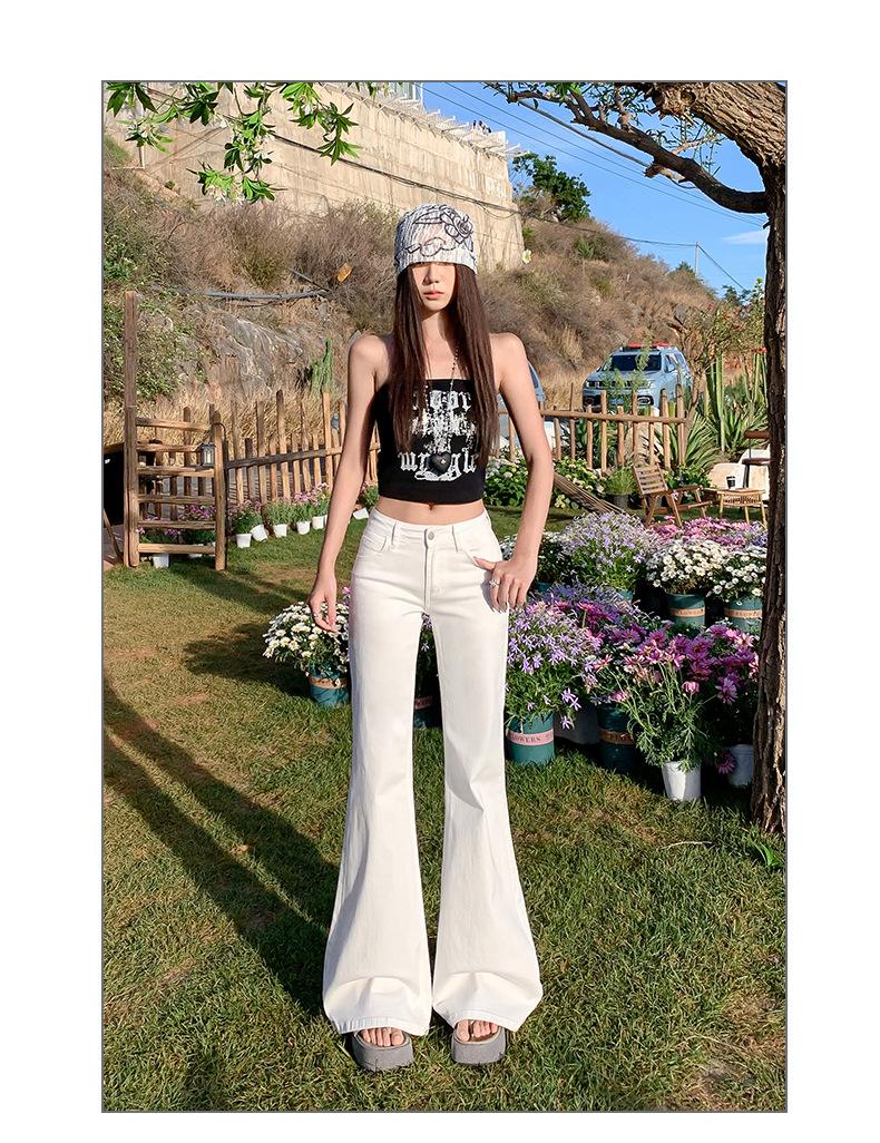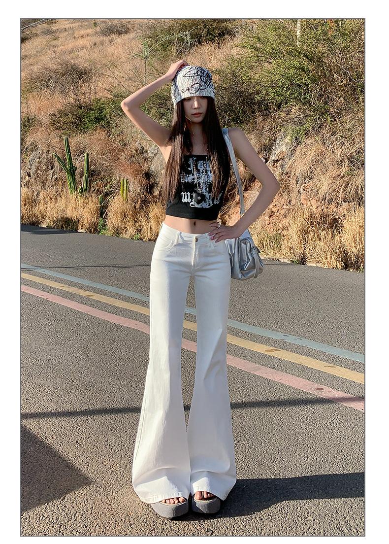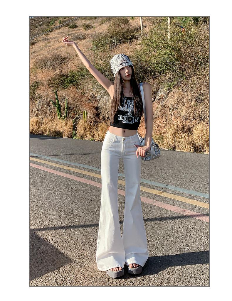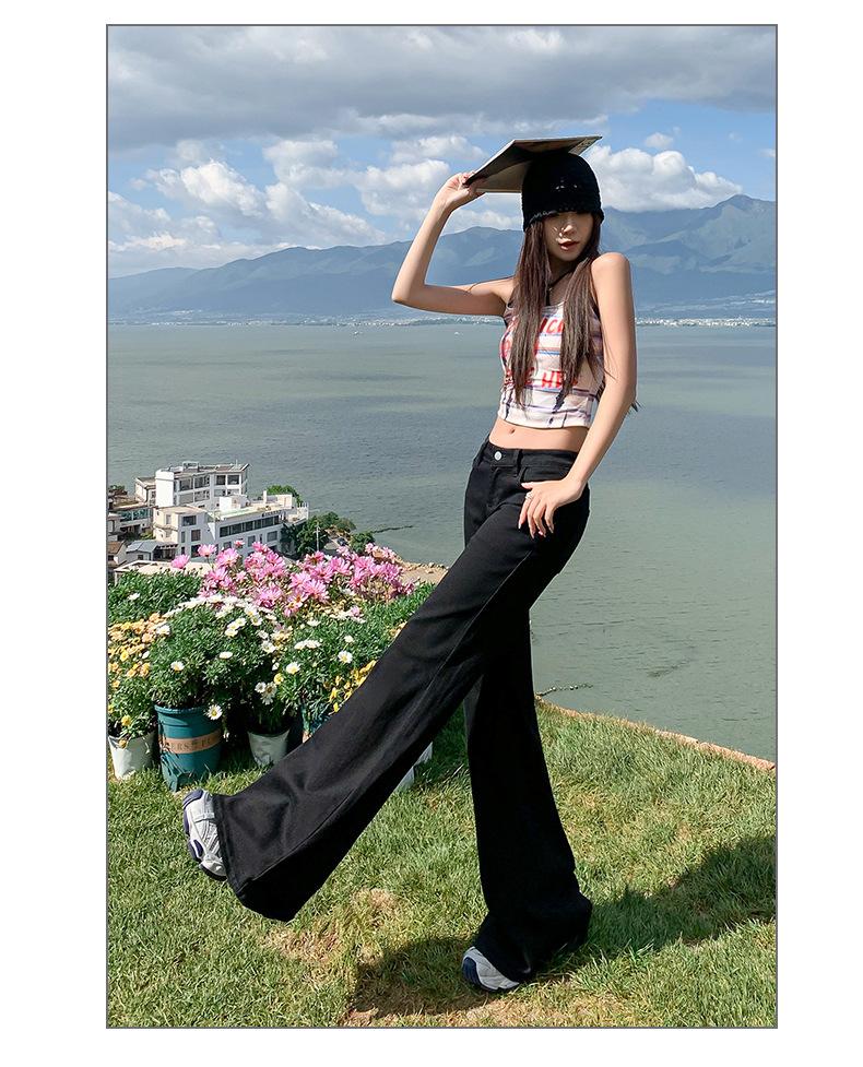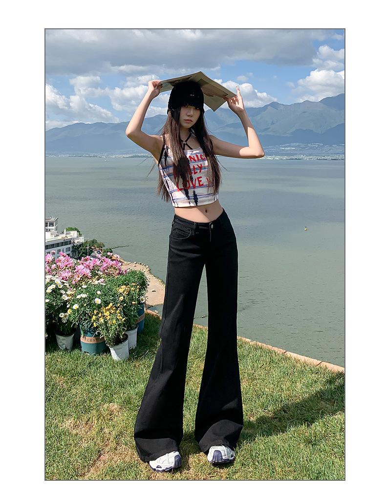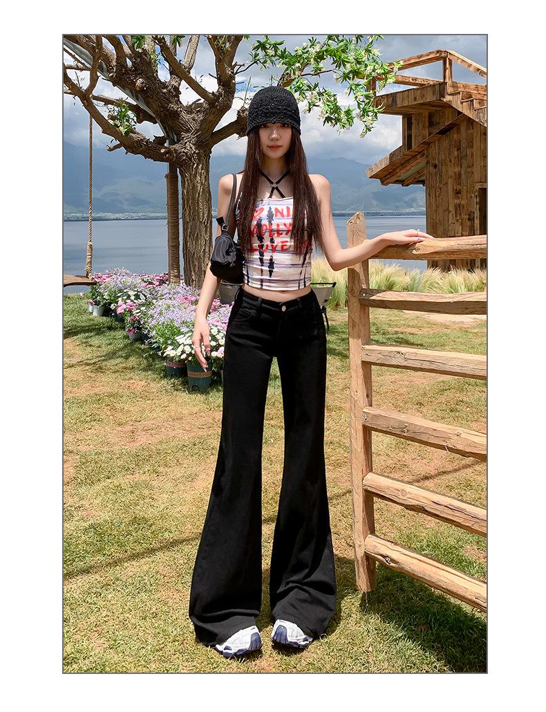 Jeans negros de tiro bajo microacampanados para mujer 2025 Verano Nuevo Estilo Americano Elásticos Look Adelgazante Versátiles Pantalones Acampanados