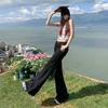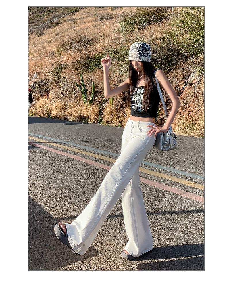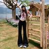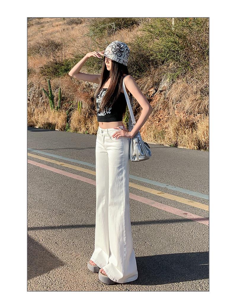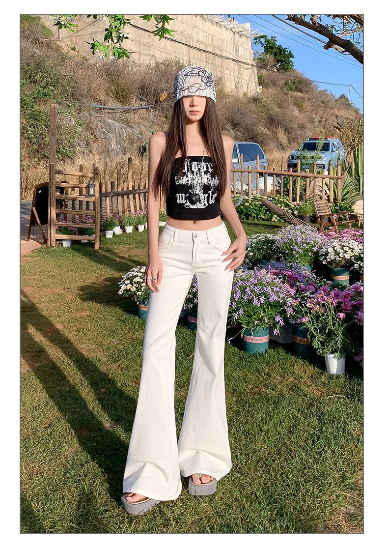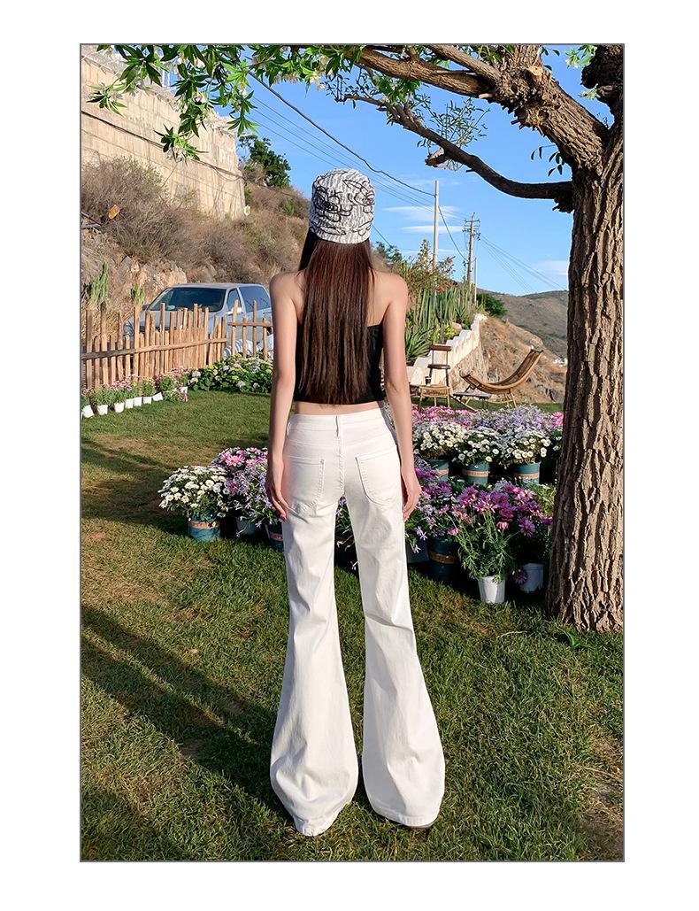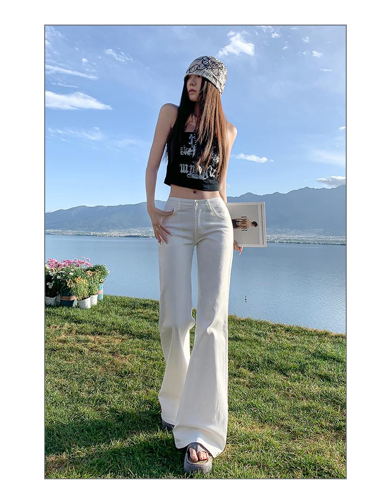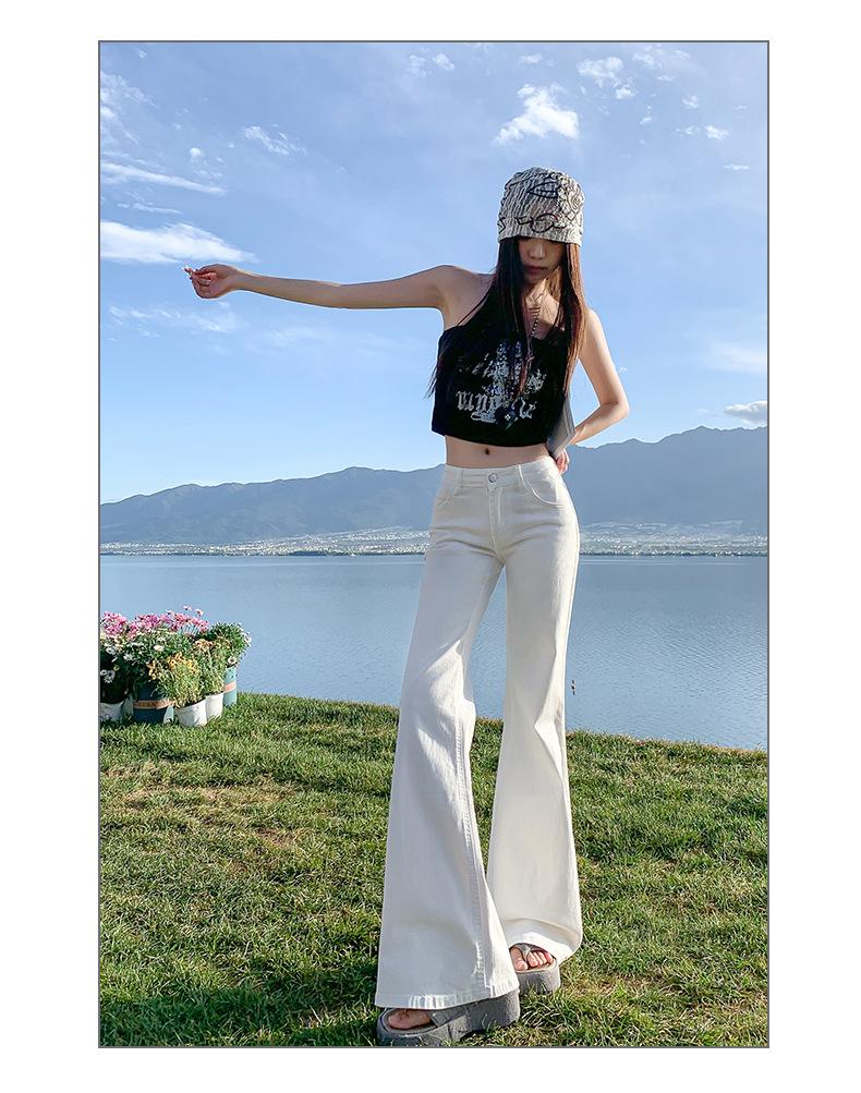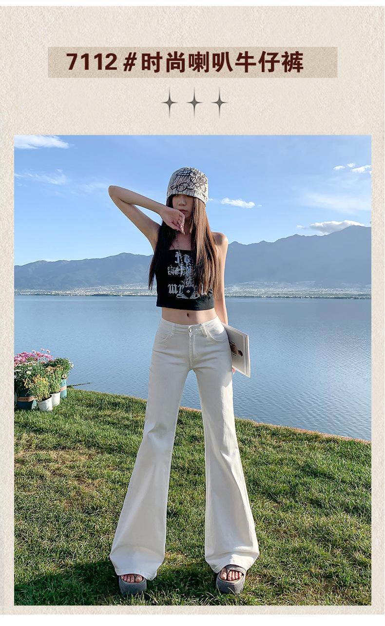 Jeans negros de tiro bajo microacampanados para mujer 2025 Verano Nuevo Estilo Americano Elásticos Look Adelgazante Versátiles Pantalones Acampanados