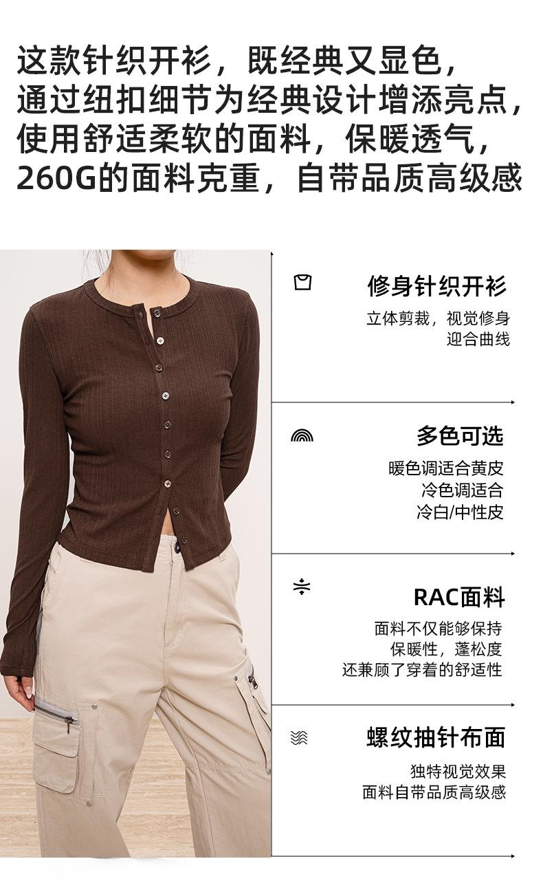 round neck, solid color, knitting, cardigan, irregular, button, Thread, Pit Strip
