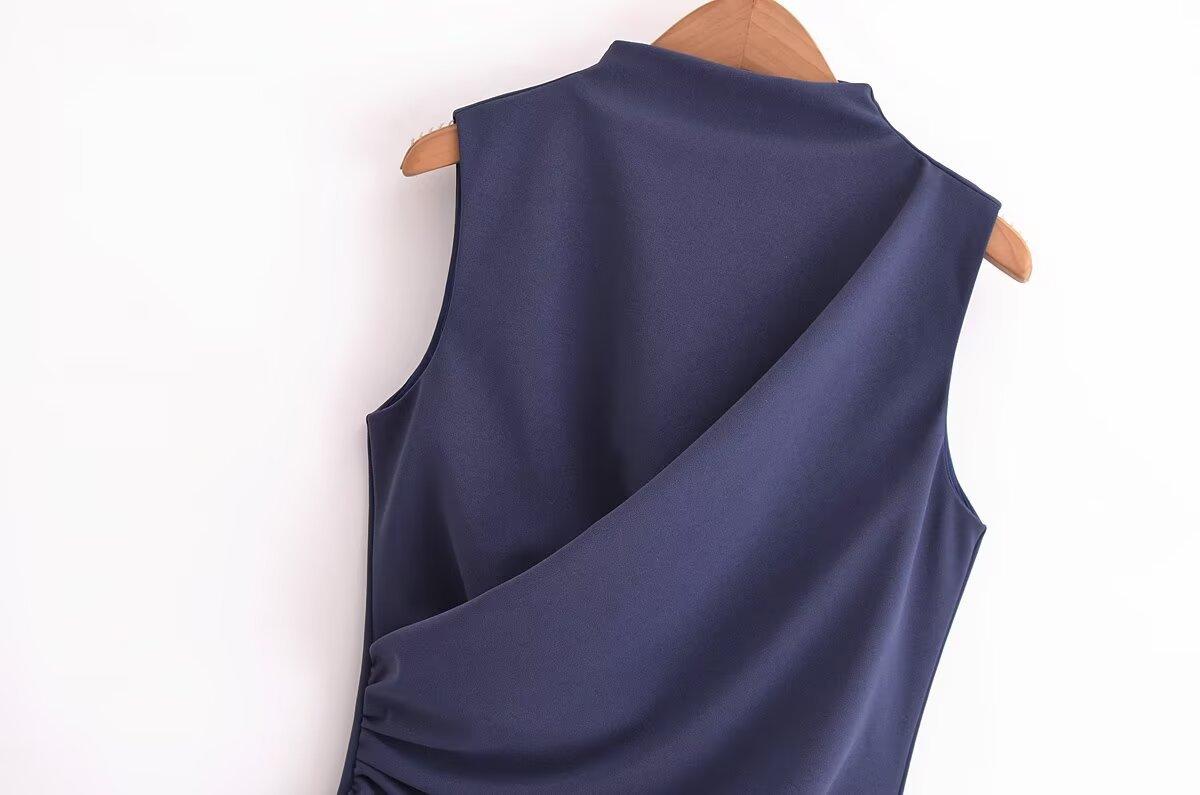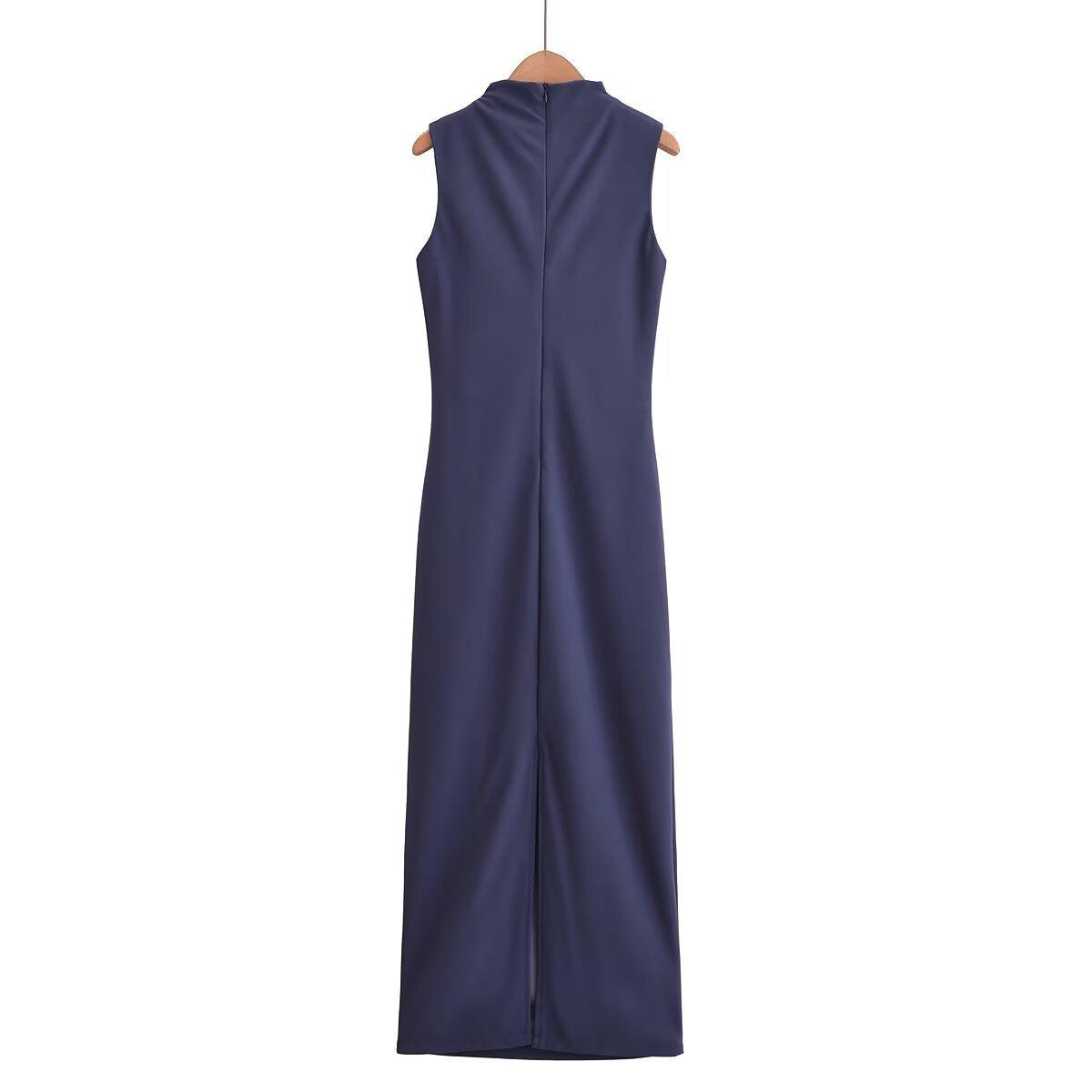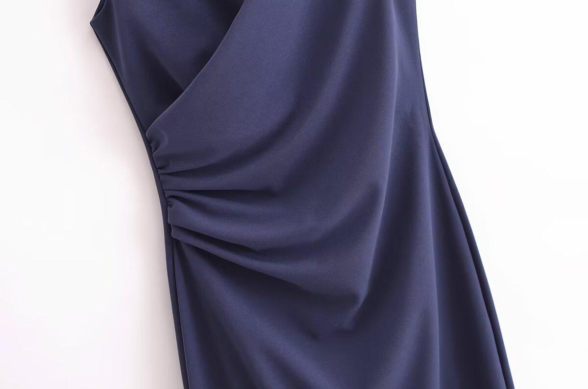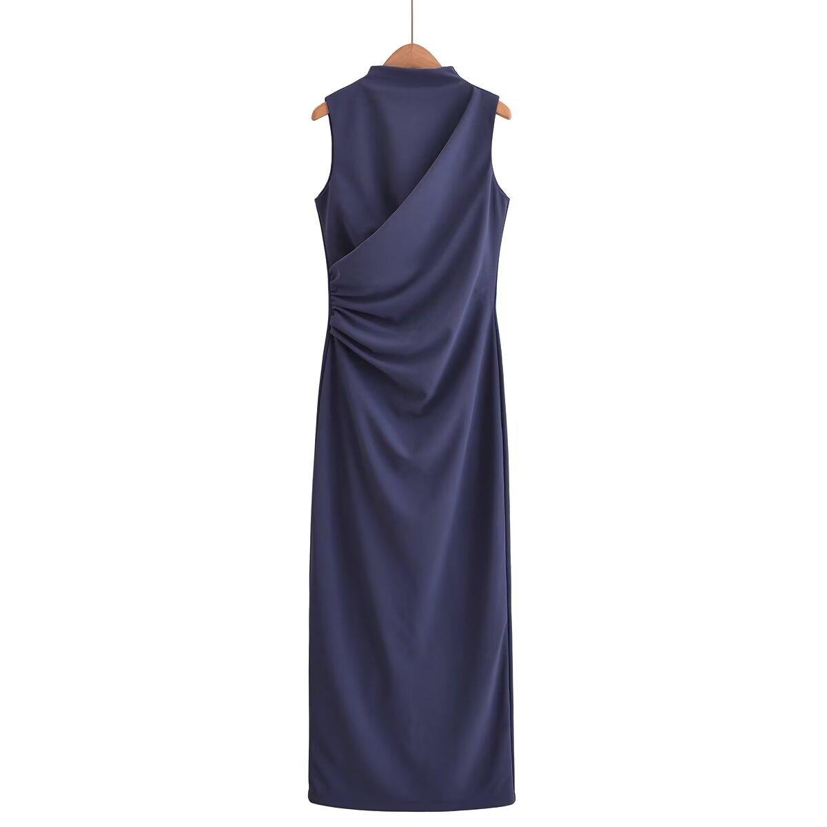 Ropa de Mujer Transfronteriza Europea y Americana 2025 Nuevo Verano Moda Elegante Slim Plisado Decorativo Vestido Midi