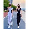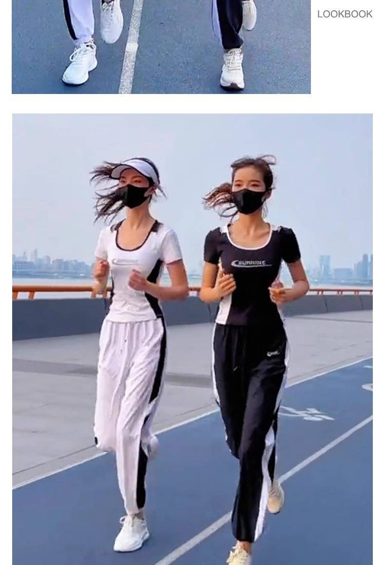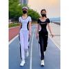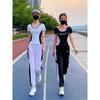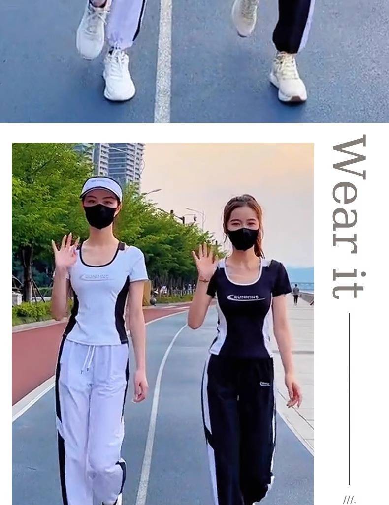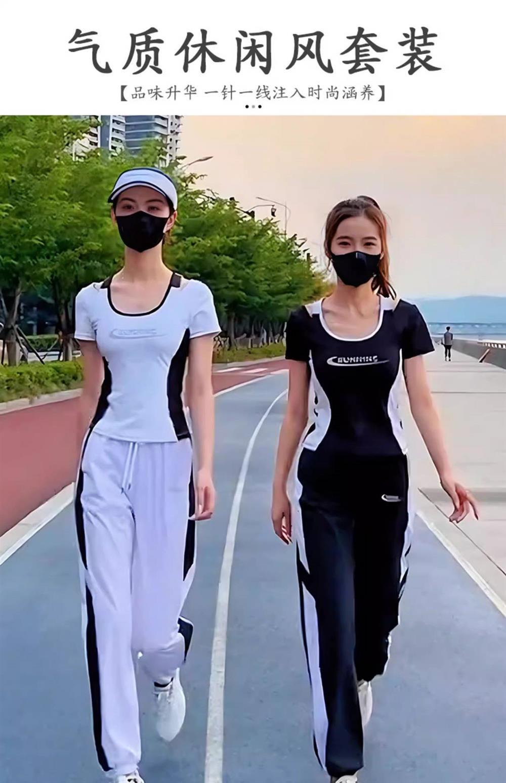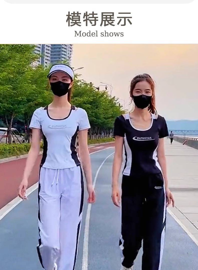 Traje deportivo para correr para mujer 2025 Nuevo Verano Negro Manga Corta Moda Casual Traje deportivo para mujer Verano