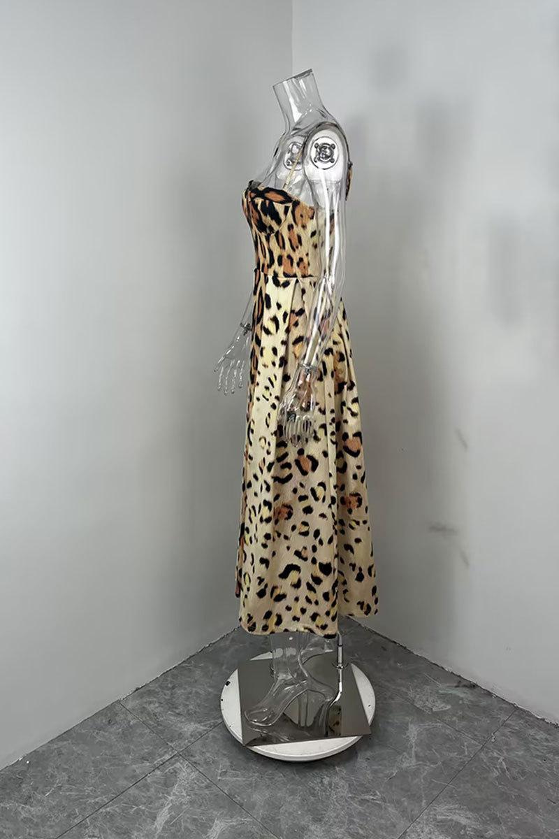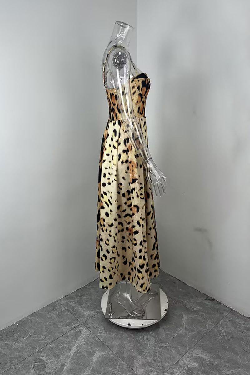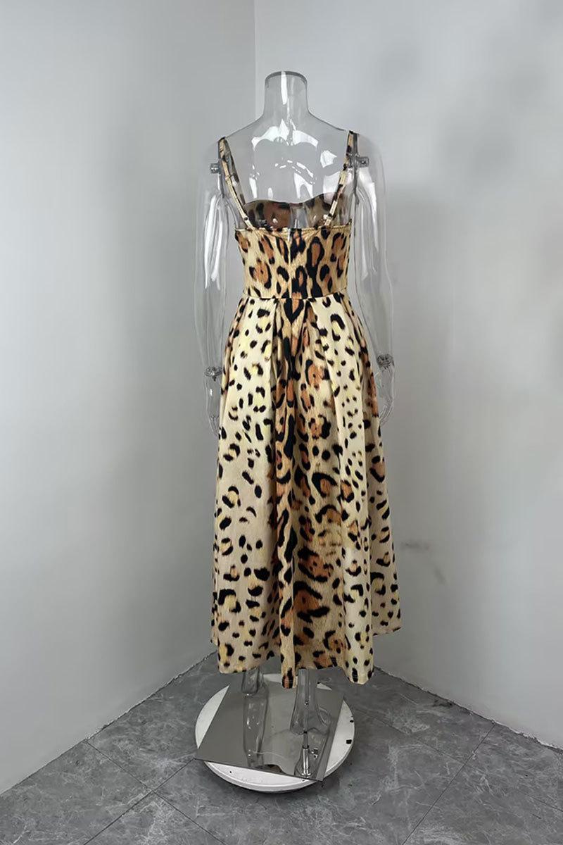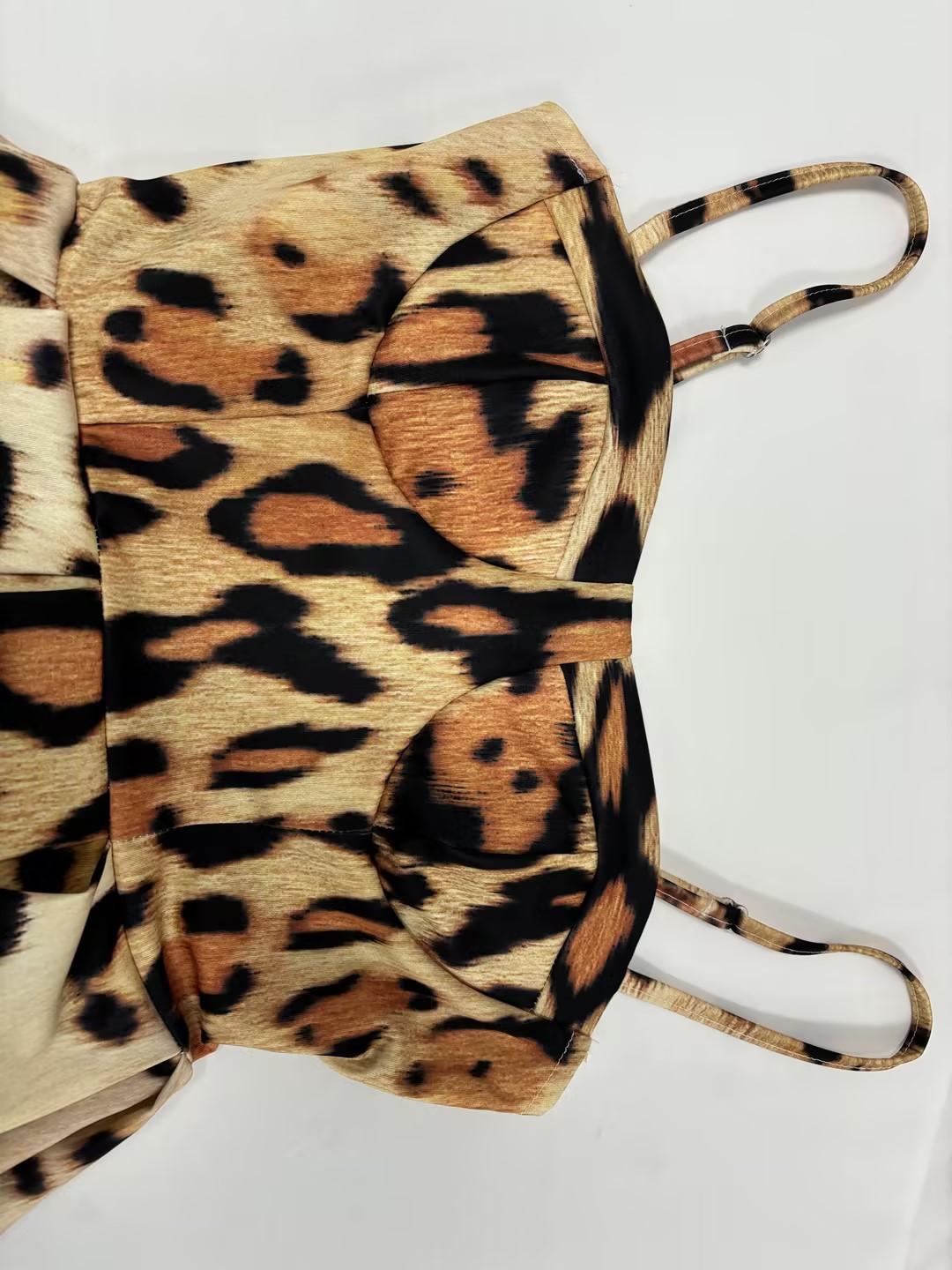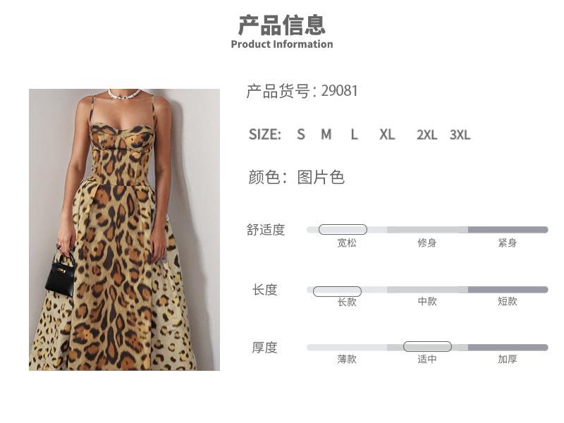 Ropa para mujer europea y americana 2025 Transfronteriza Sin mangas Tirantes Estampado de leopardo Moda Sexy Cintura Sexy Vestido europeo y americano para mujer