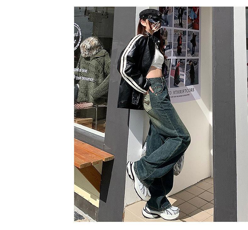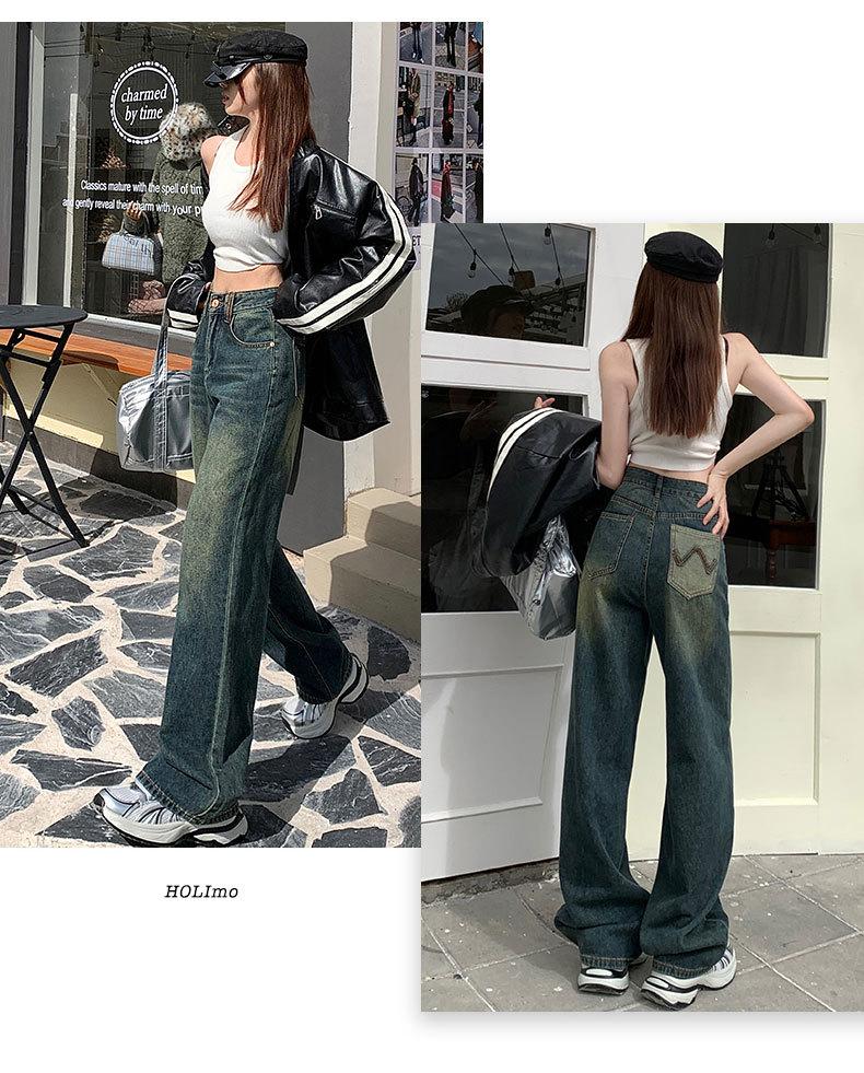 Jeans Americanos de Verano Delgados de Pierna Ancha para Mujer 2025 Nuevo Diseño Cintura Alta Slim Hasta el Piso Rectos