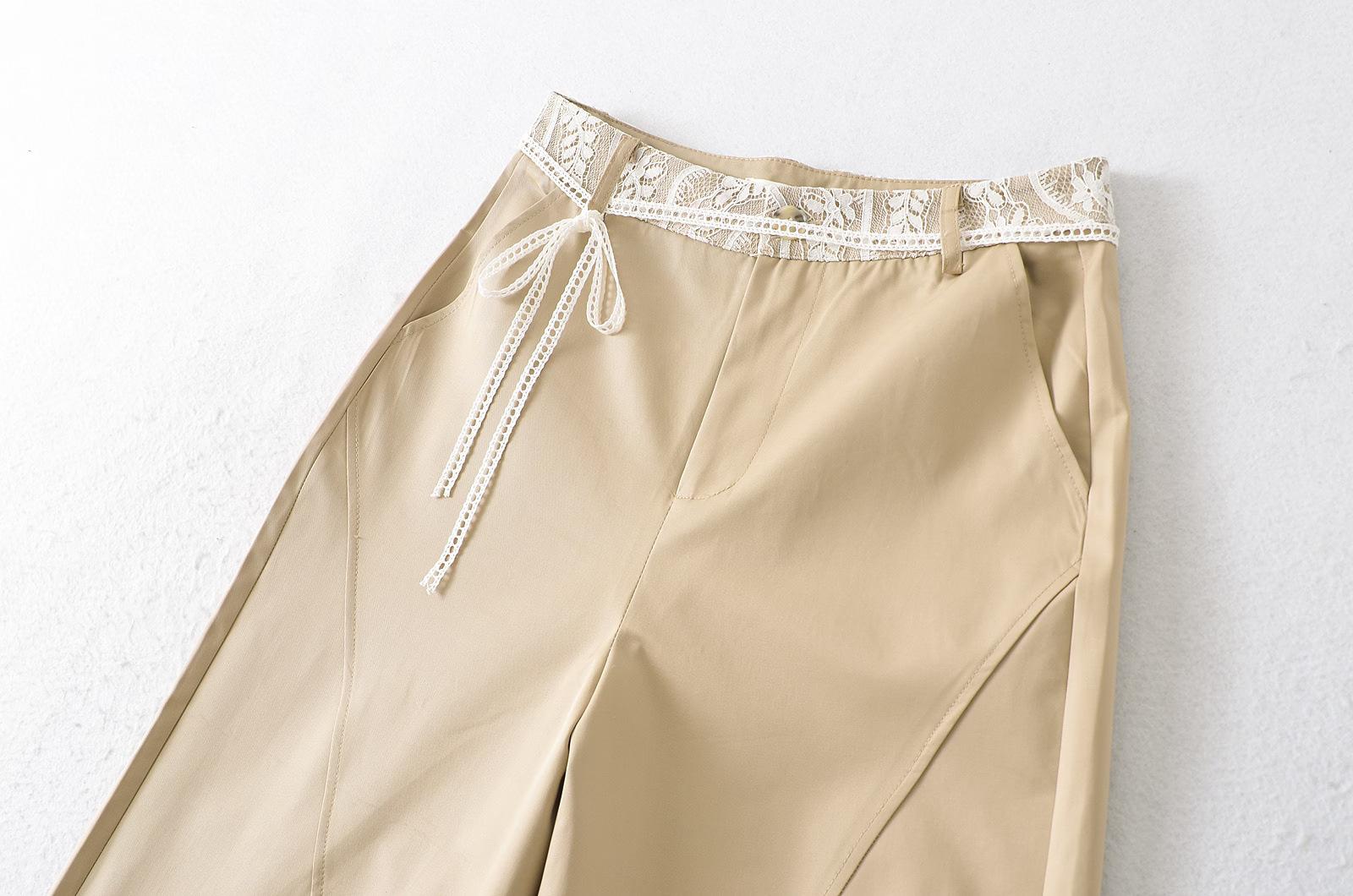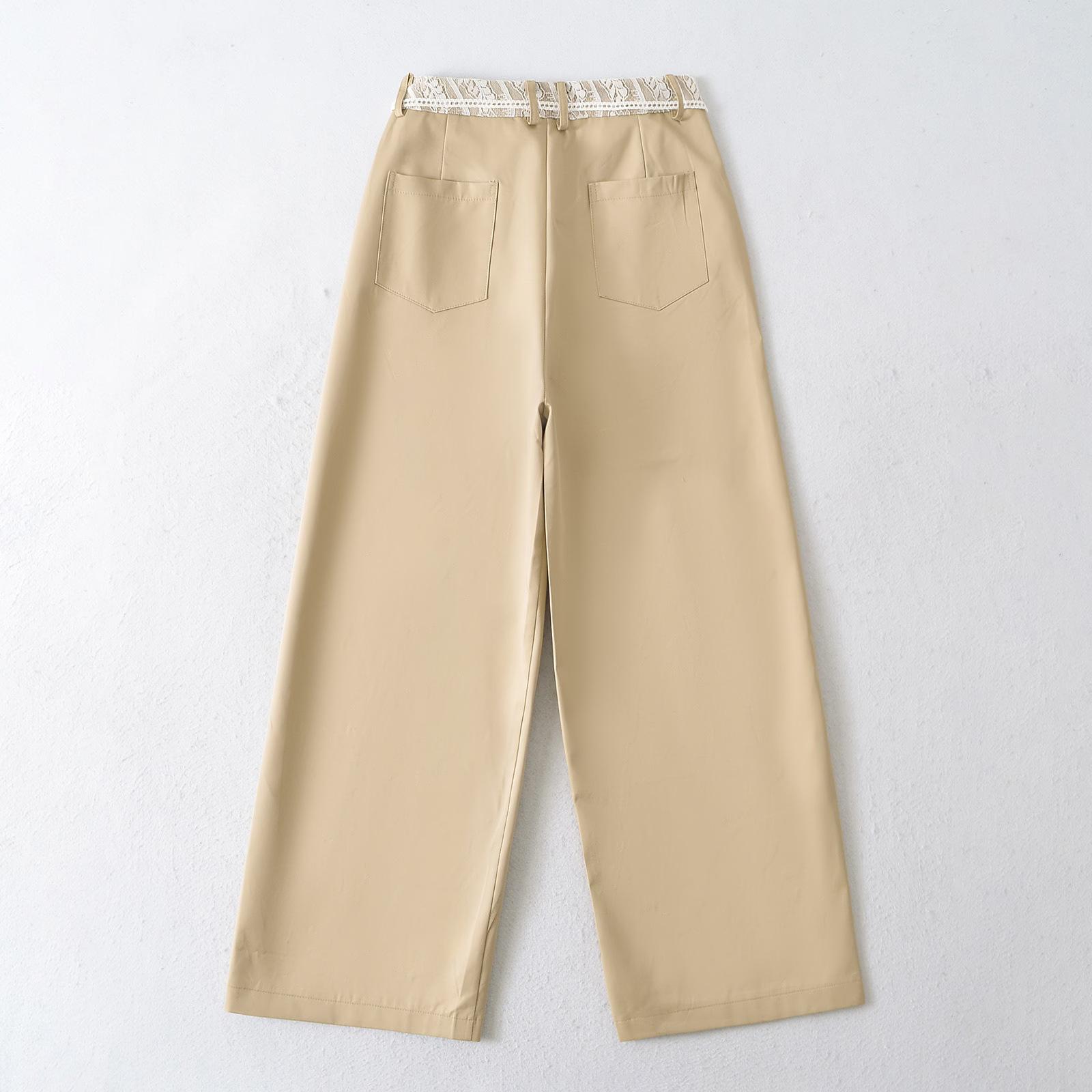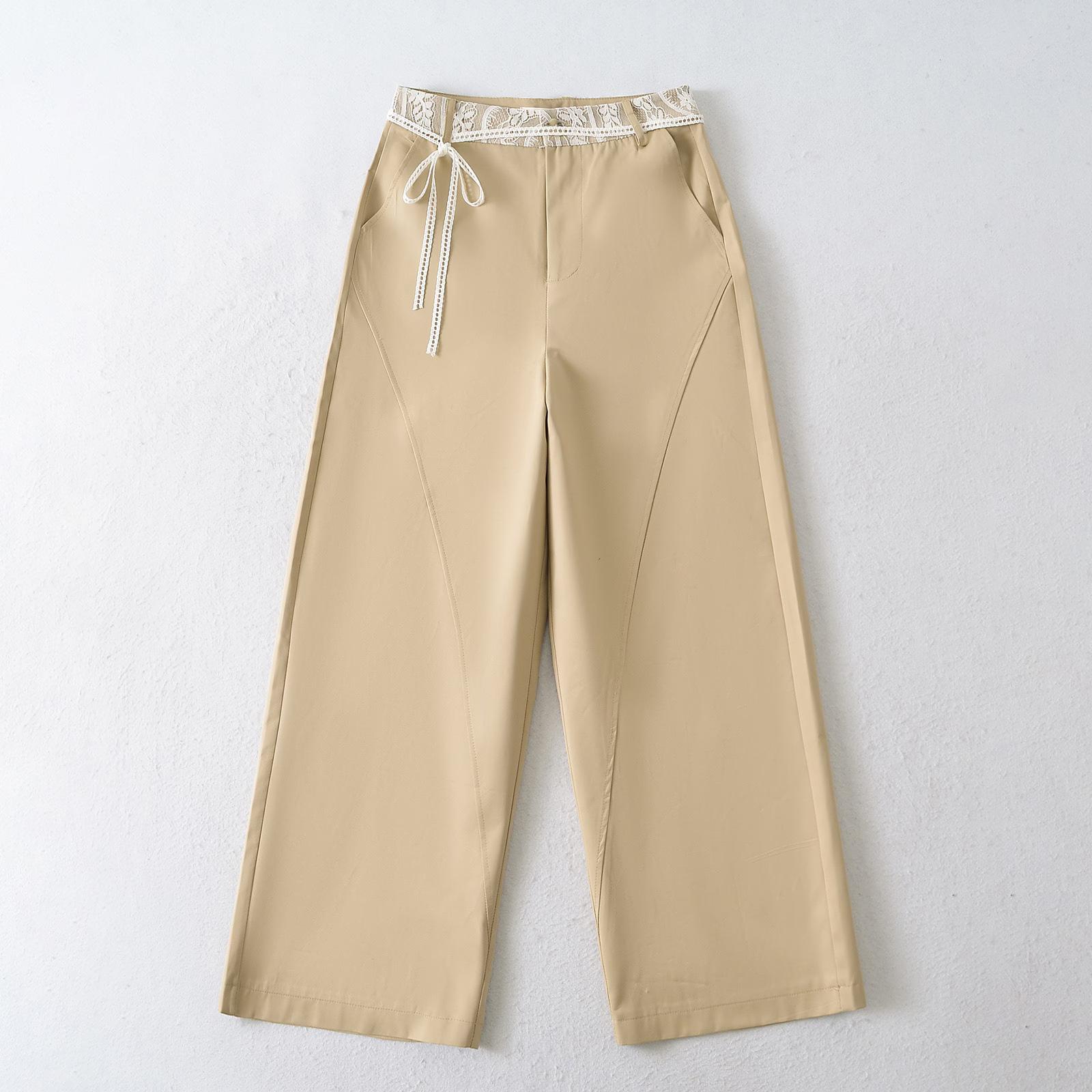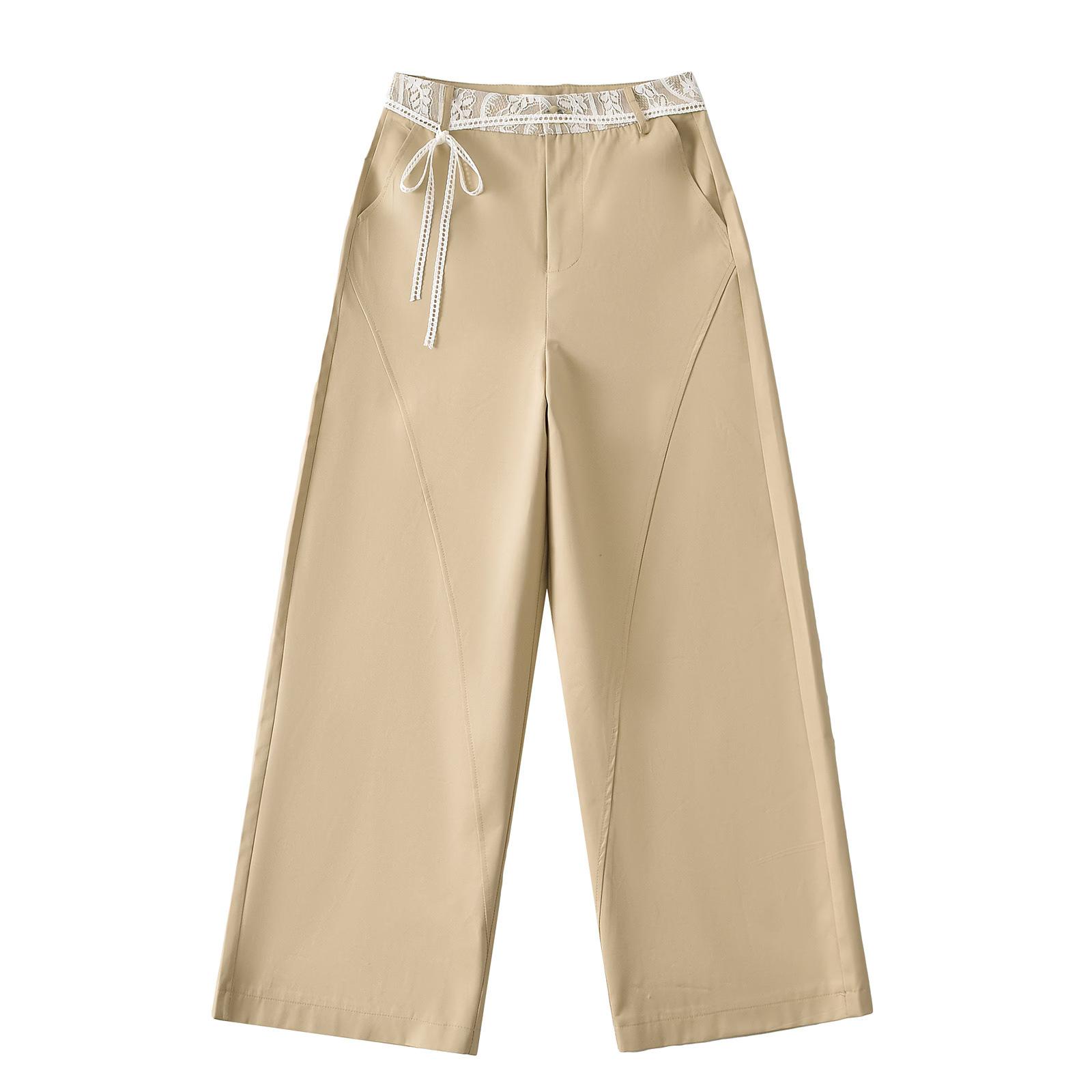 9016-2025 Nuevo Estilo Europeo y Americano Chica Caliente Pantalones Rectos de Cintura Alta y Pierna Ancha Sexy Encaje Pantalones Casuales