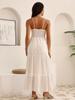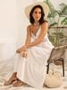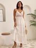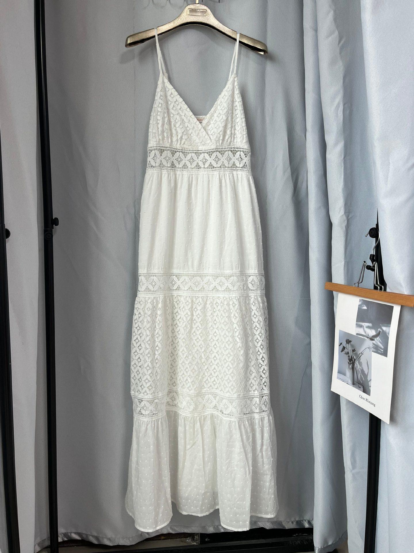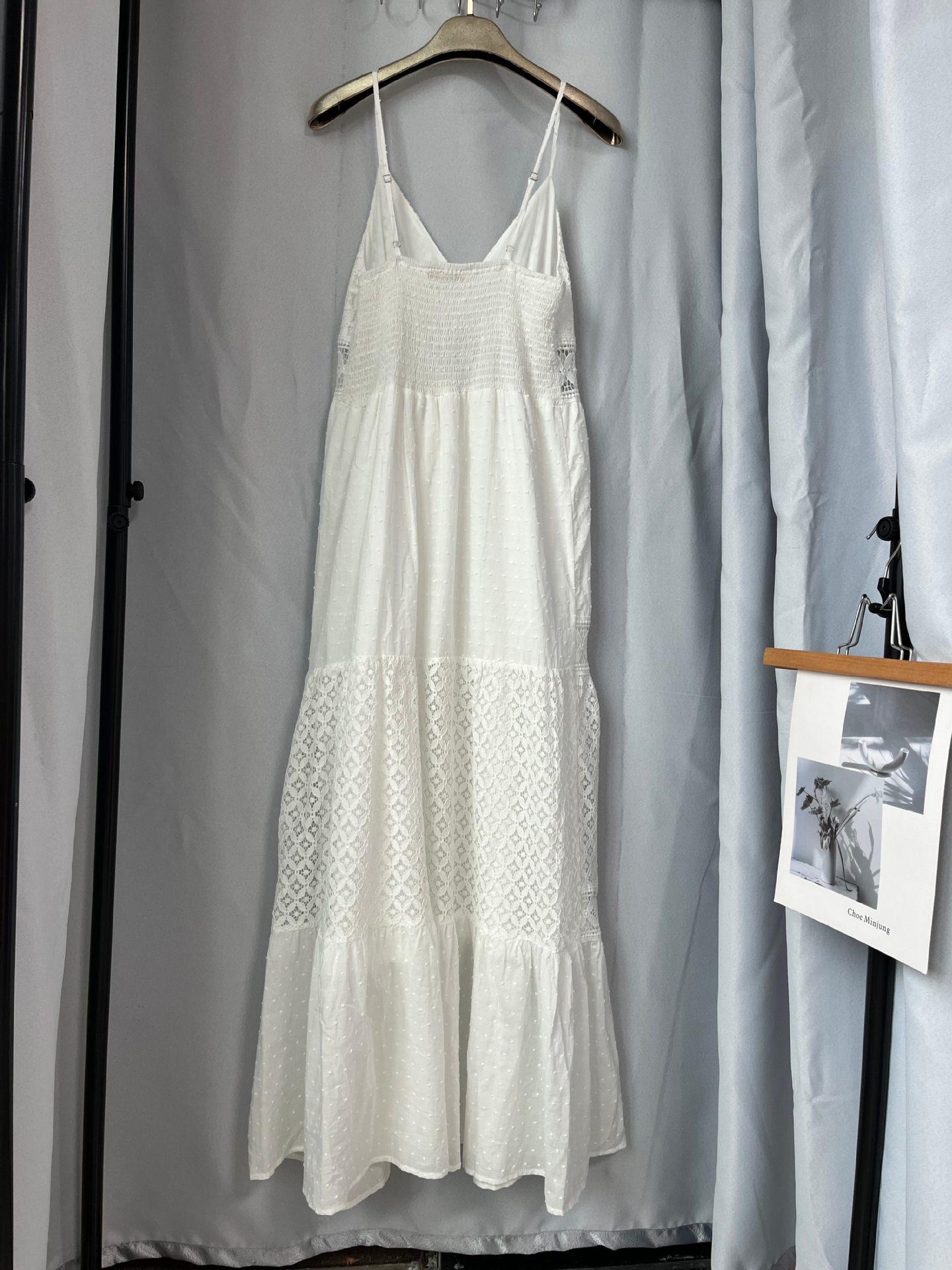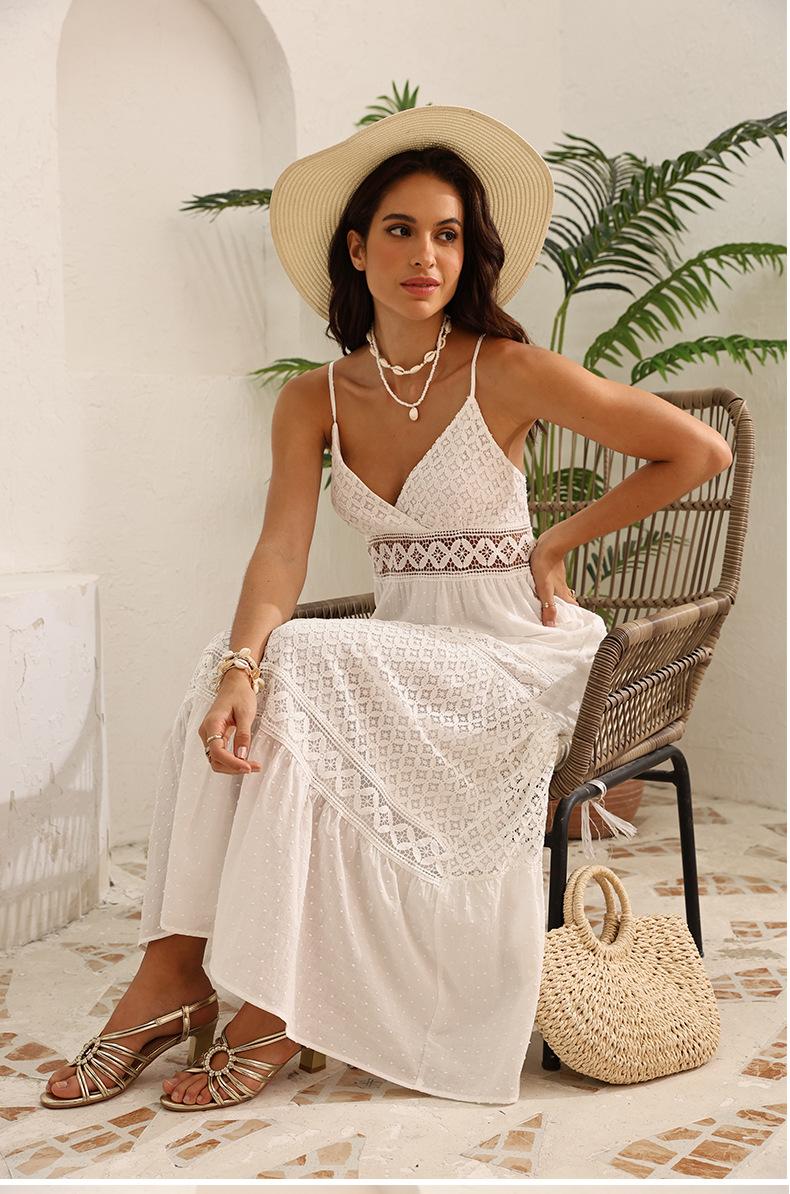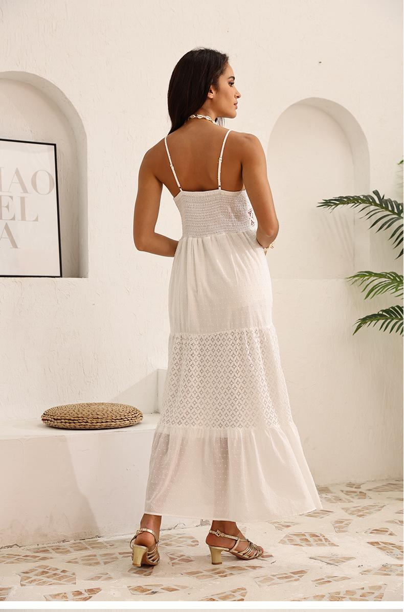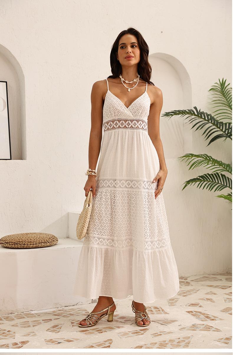 25 Nuevo Verano Francés Tirantes Cuello en V Cintura Alta Vestido Largo Vacaciones Europeas y Americanas Vestido de Playa Entallado Hueco Vestido Largo