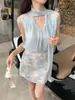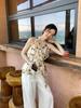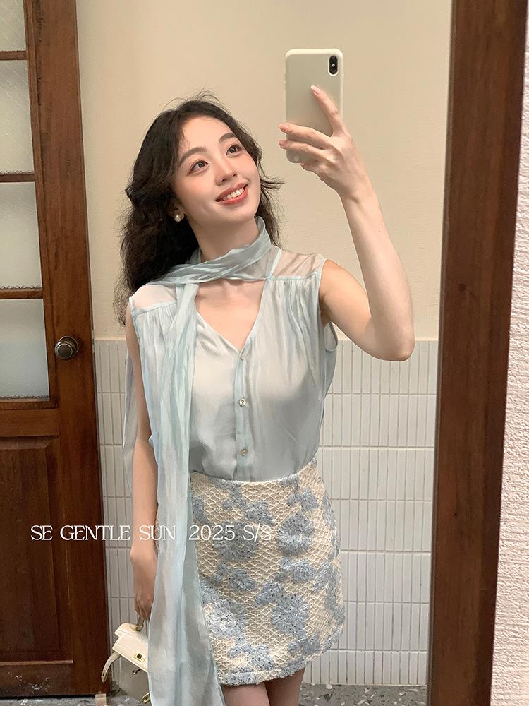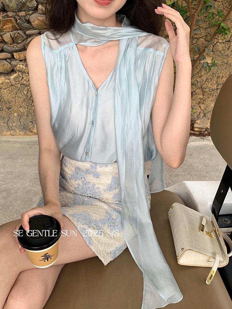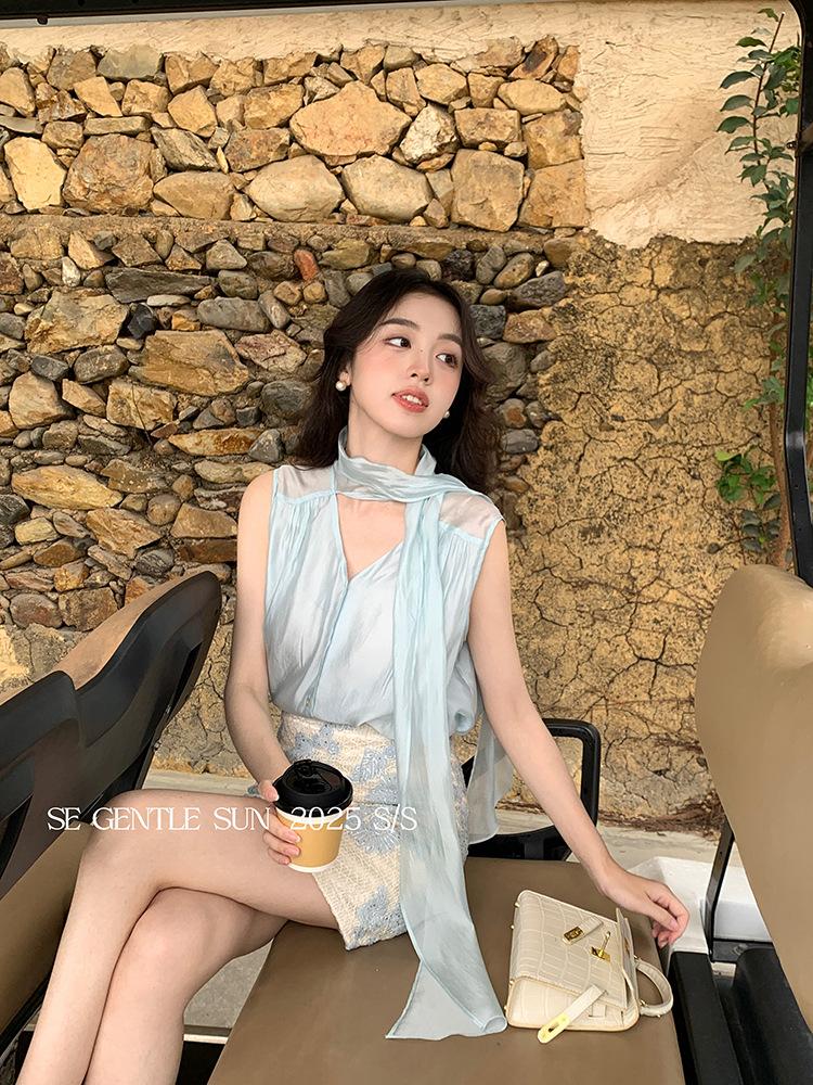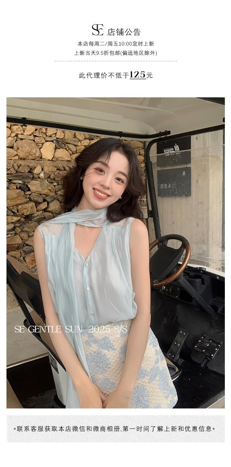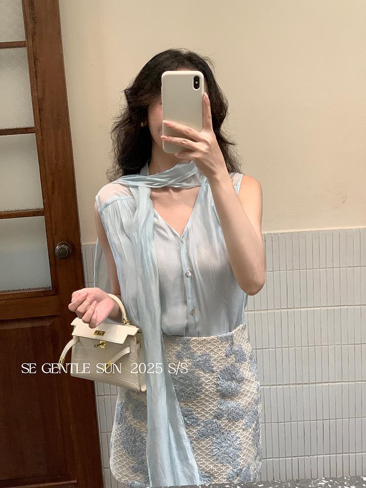 Xiuxixi 2025 Nuevo Estilo de Verano Look Adelgazante Elegante Versátil Color Puro Top de Tirantes con Cuello en V Camisa de Gasa para Mujer 89401