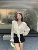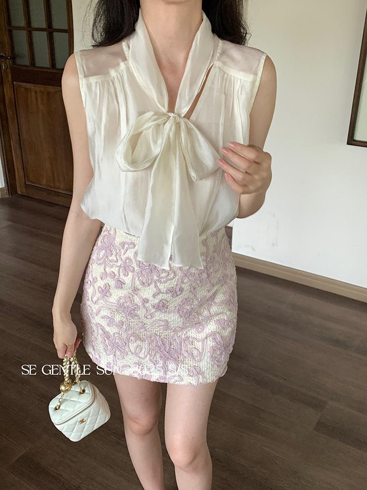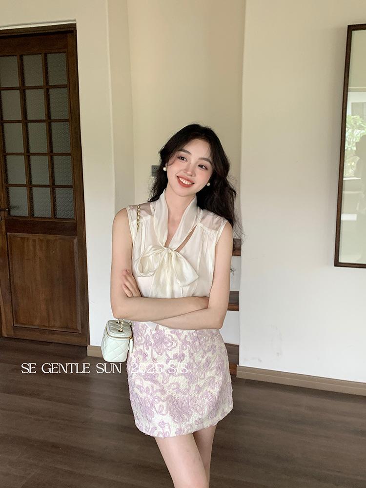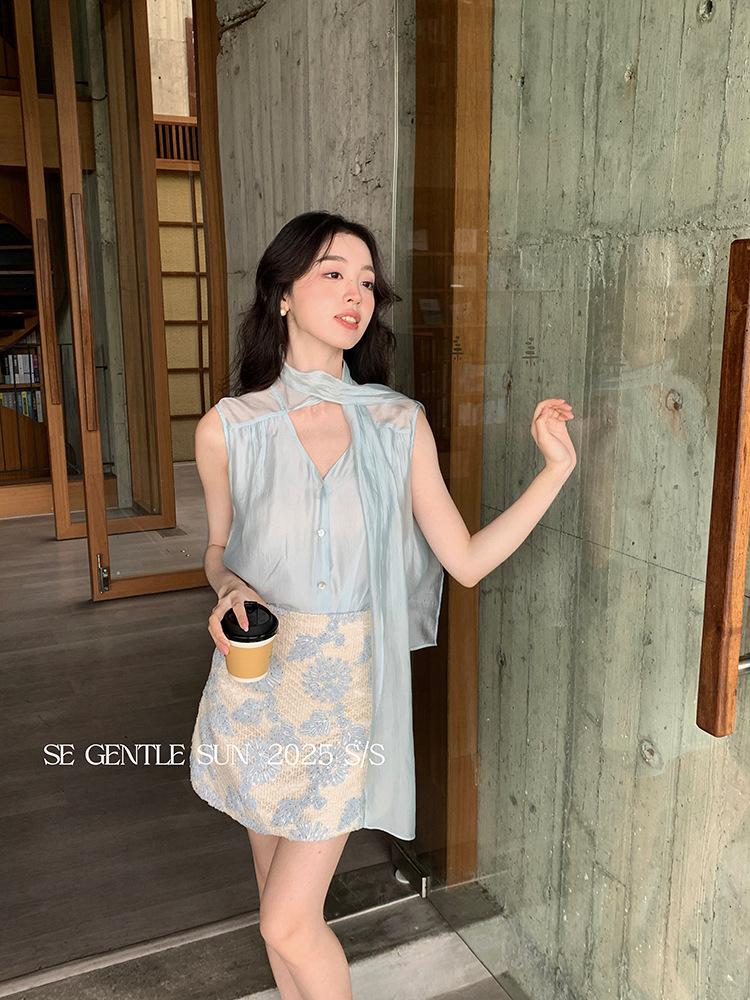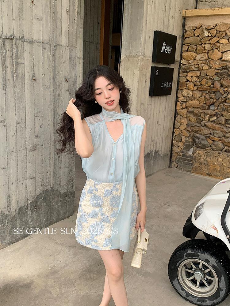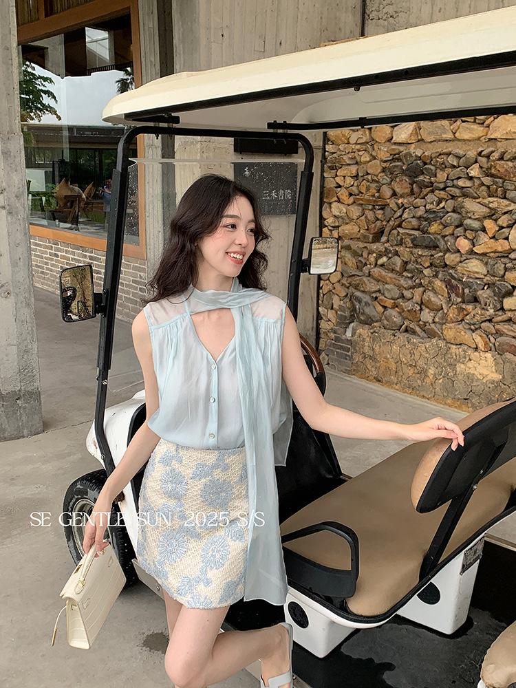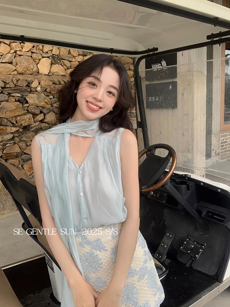 Xiuxixi 2025 Nuevo Estilo de Verano Look Adelgazante Elegante Versátil Color Puro Top de Tirantes con Cuello en V Camisa de Gasa para Mujer 89401