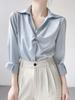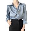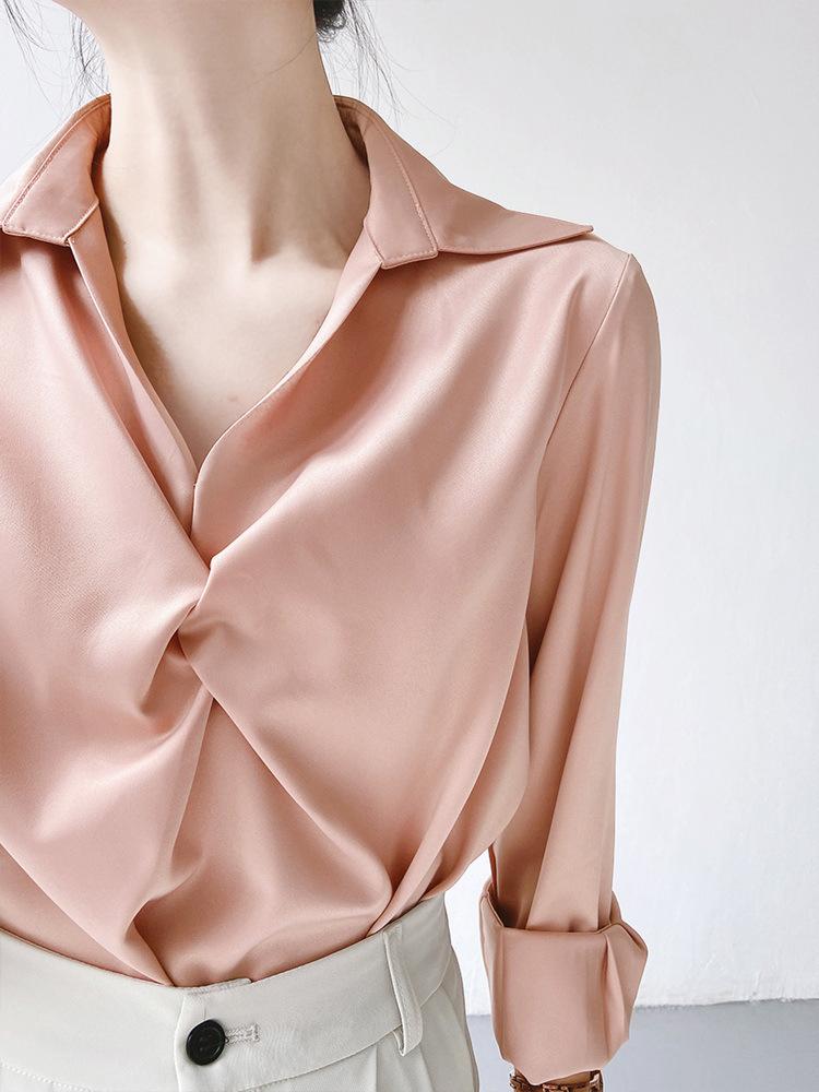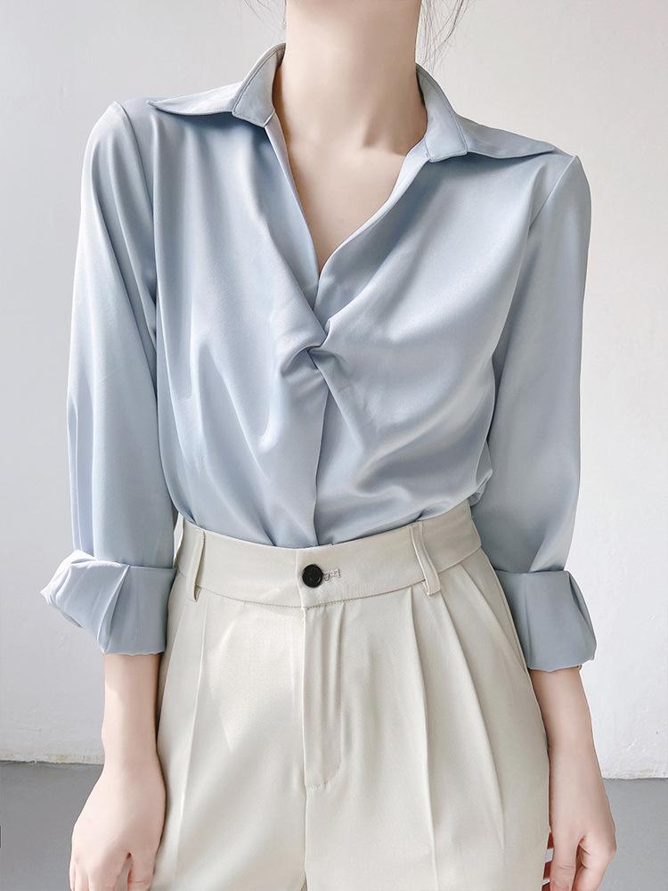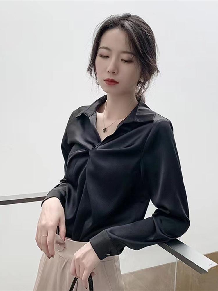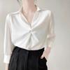 Camisa Profesional de Alta Gama para Mujer Verano 2025 Elegante Cuello en V Manga Larga Diseño de Camisa Delgada Top para Mujer A4434