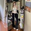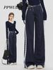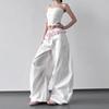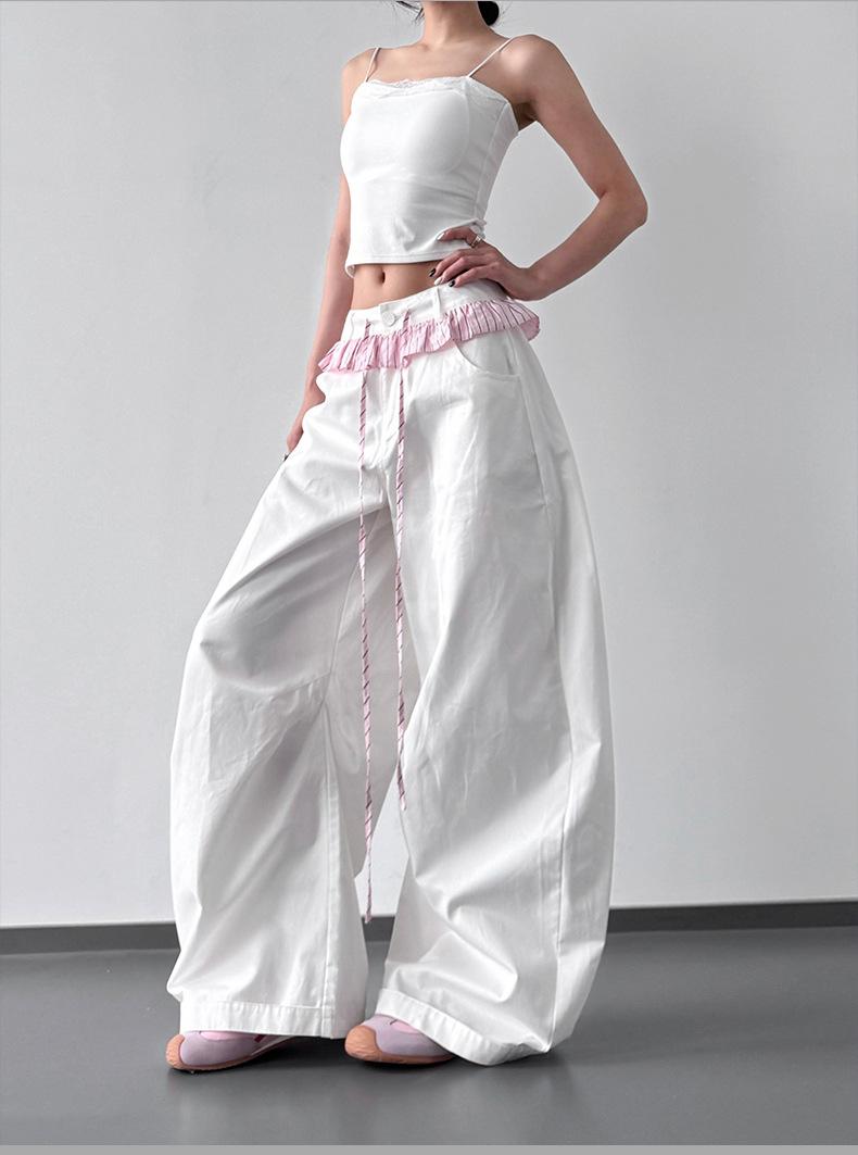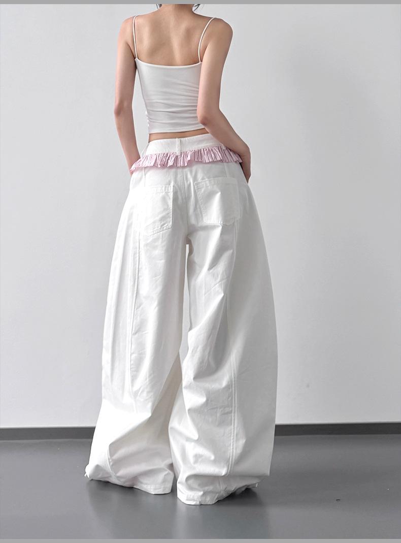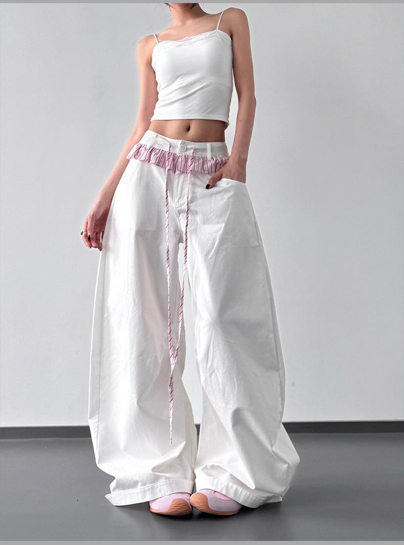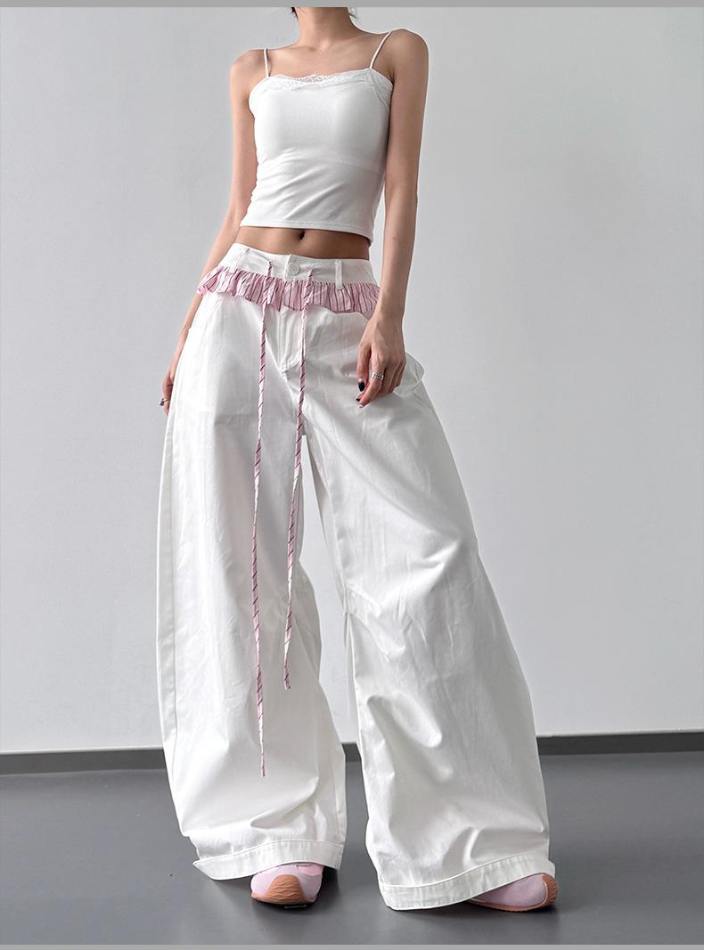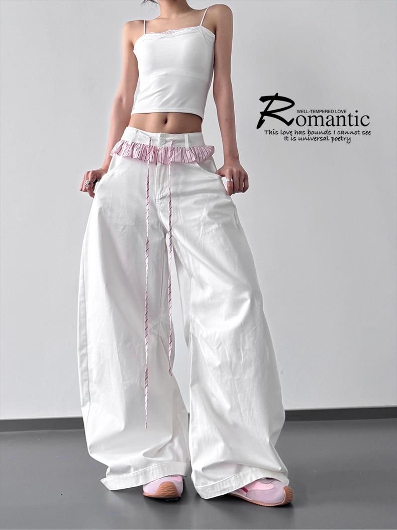 Pantalones Casuales de Encaje con Costuras Estilo Coreano Holgados para Mujer 2025 Verano Nuevo Cintura Alta Holgados Adelgazantes Pierna Ancha