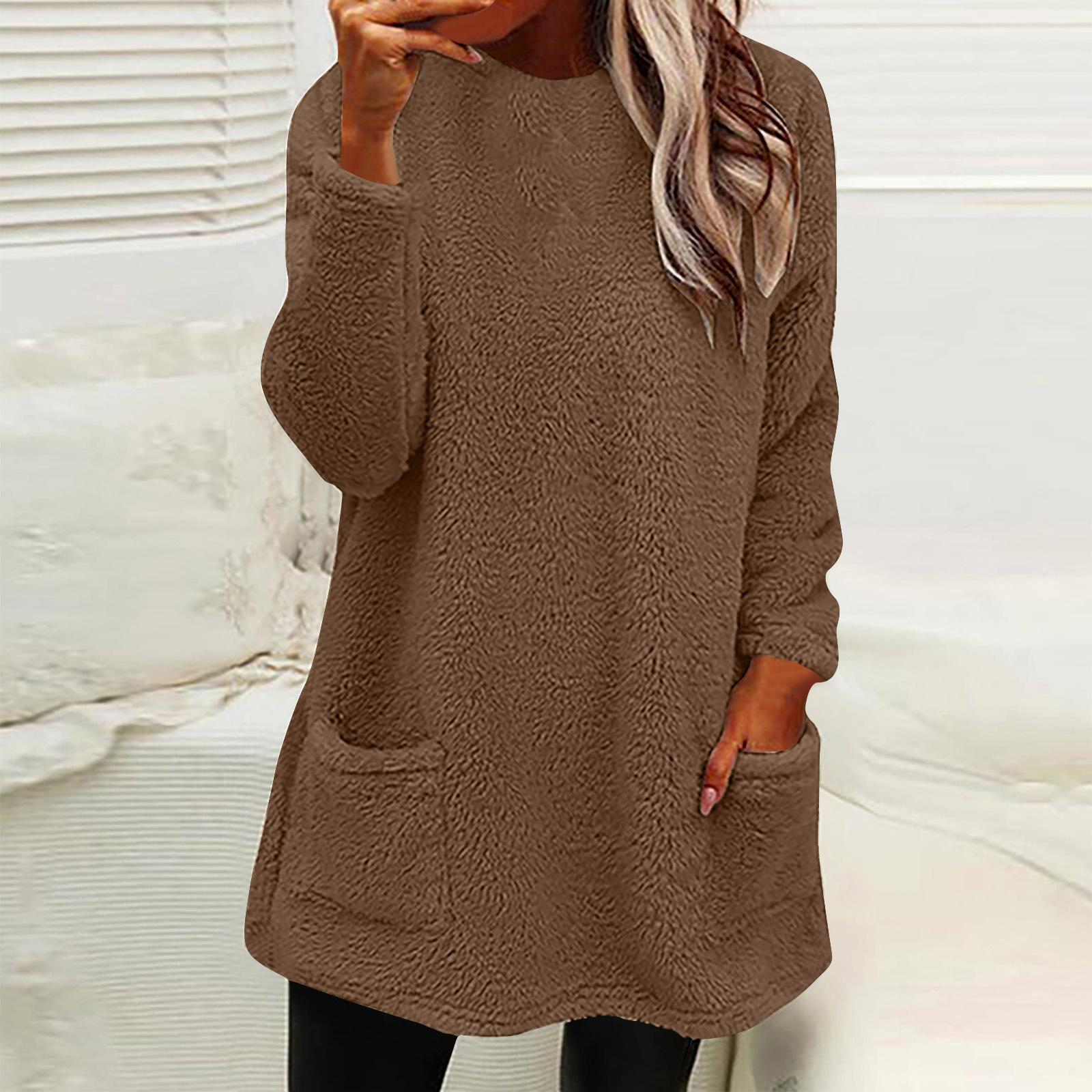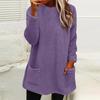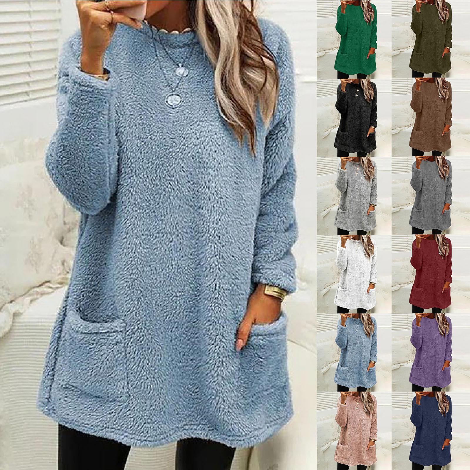 Otoño e Invierno Amazon Transfronterizo Europeo y Americano para Mujer Nuevo Color Sólido Cuello Redondo Casual Holgado Manga Larga Bolsillo Felpa Sudor Mujer