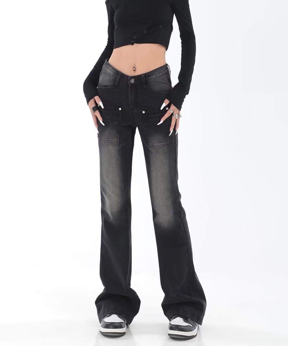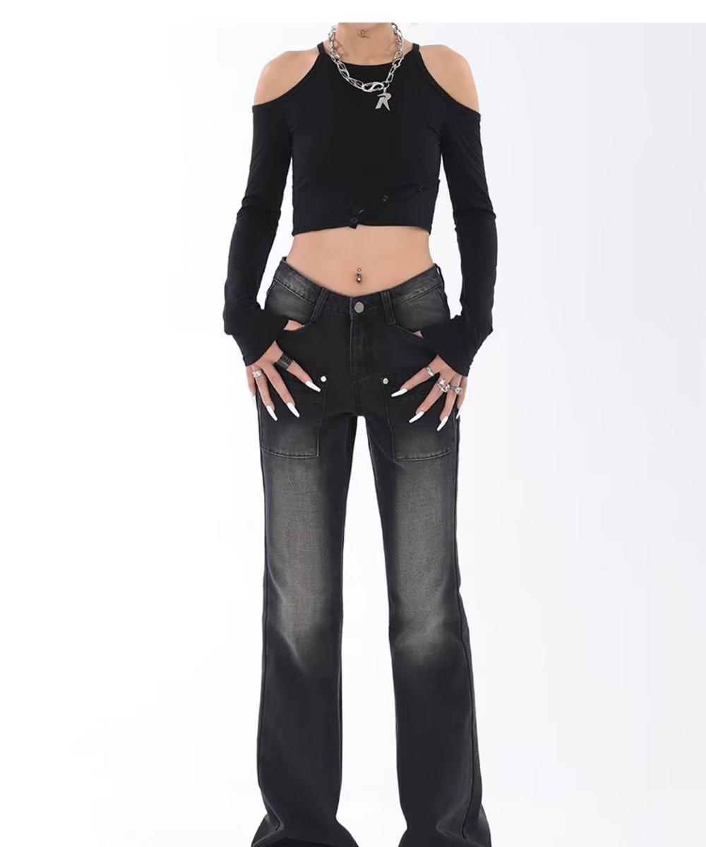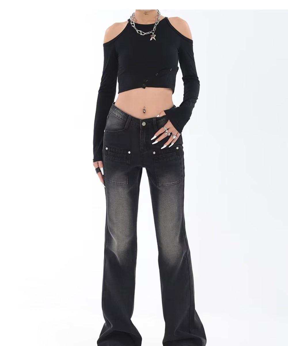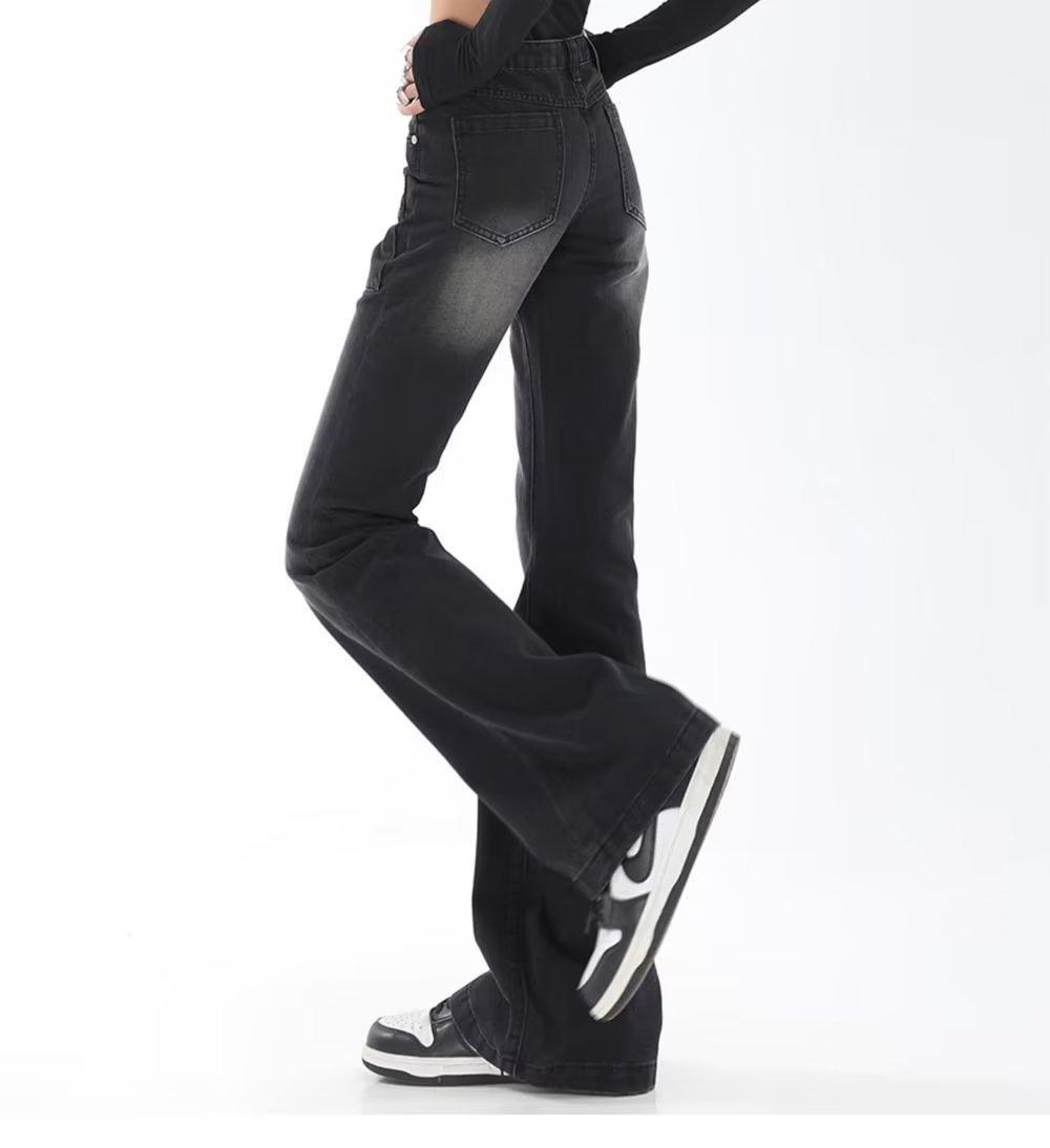 Jeans de Pierna Recta con Sentido del Diseño para Mujer, Holgados, Estilo Americano, Estilo Nuevo, Retro, Forma de Pera, Cintura Alta, Pantalones Sumergidos