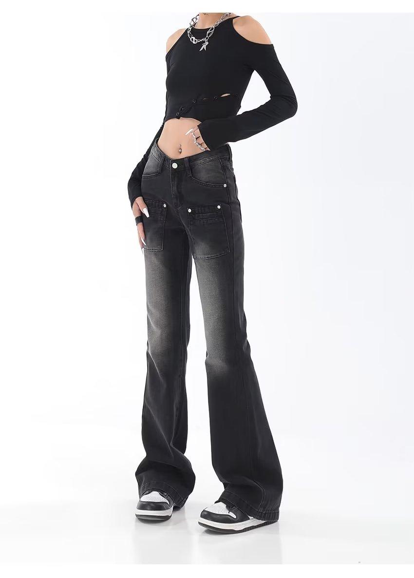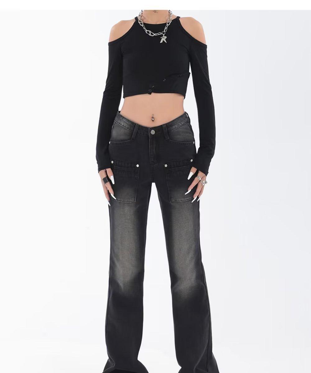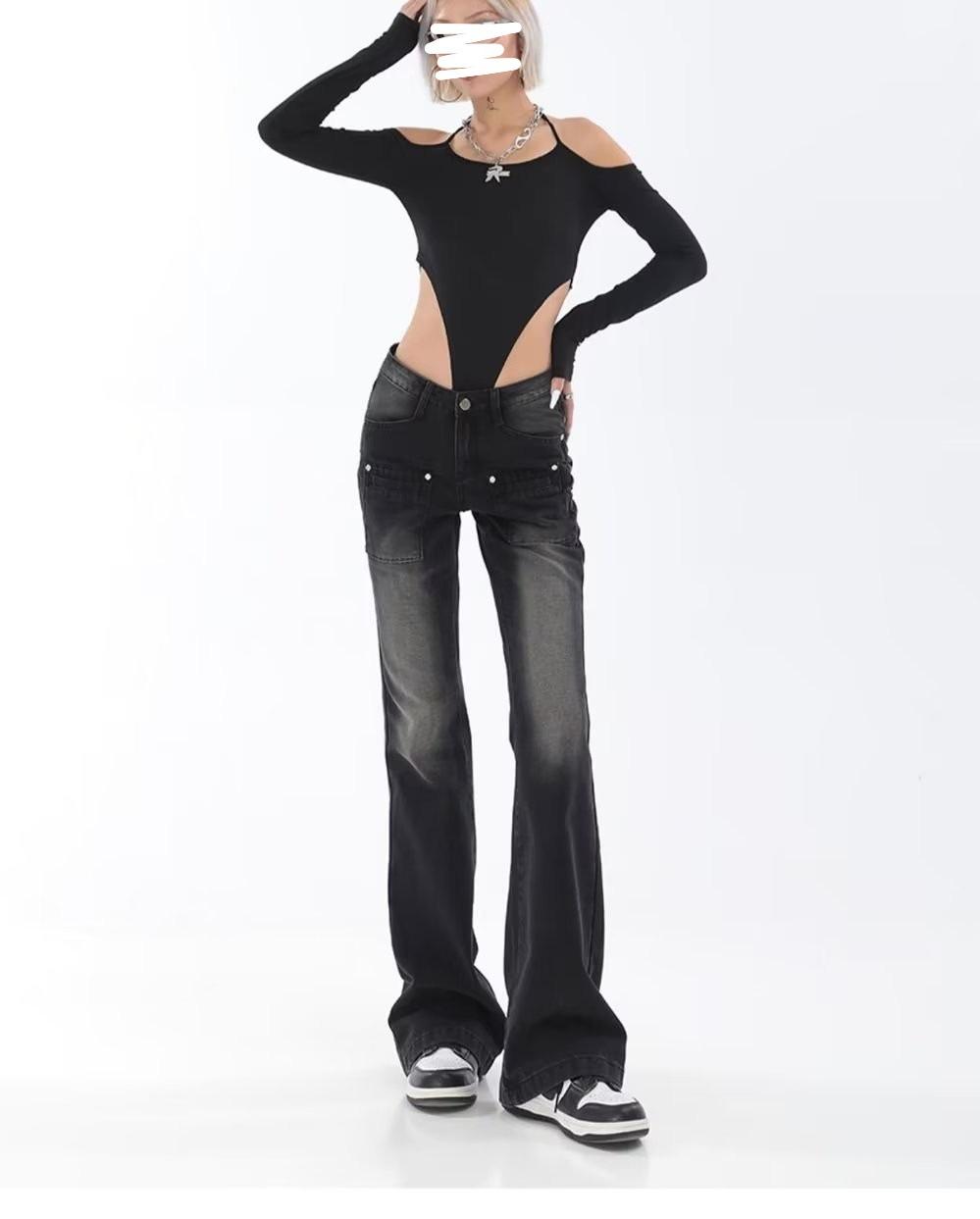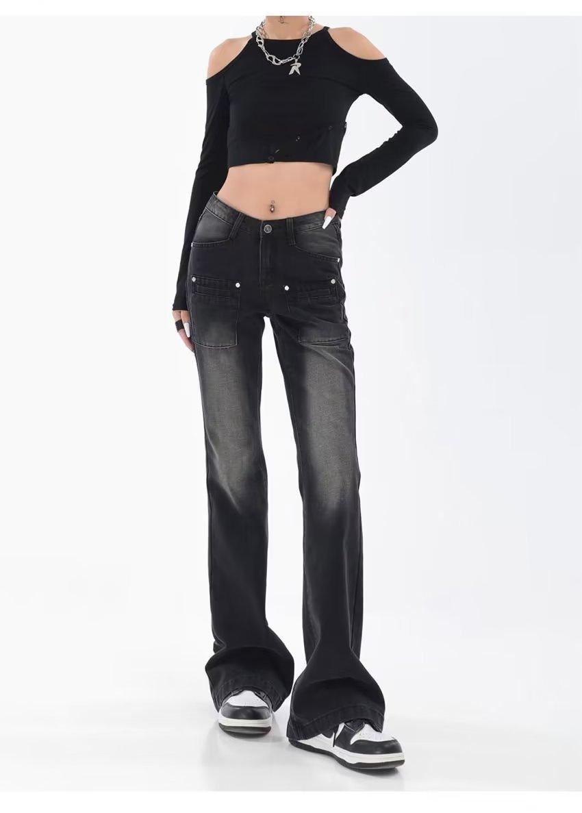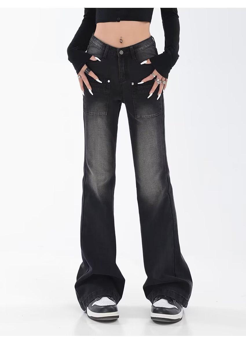 Jeans de Pierna Recta con Sentido del Diseño para Mujer, Holgados, Estilo Americano, Estilo Nuevo, Retro, Forma de Pera, Cintura Alta, Pantalones Sumergidos