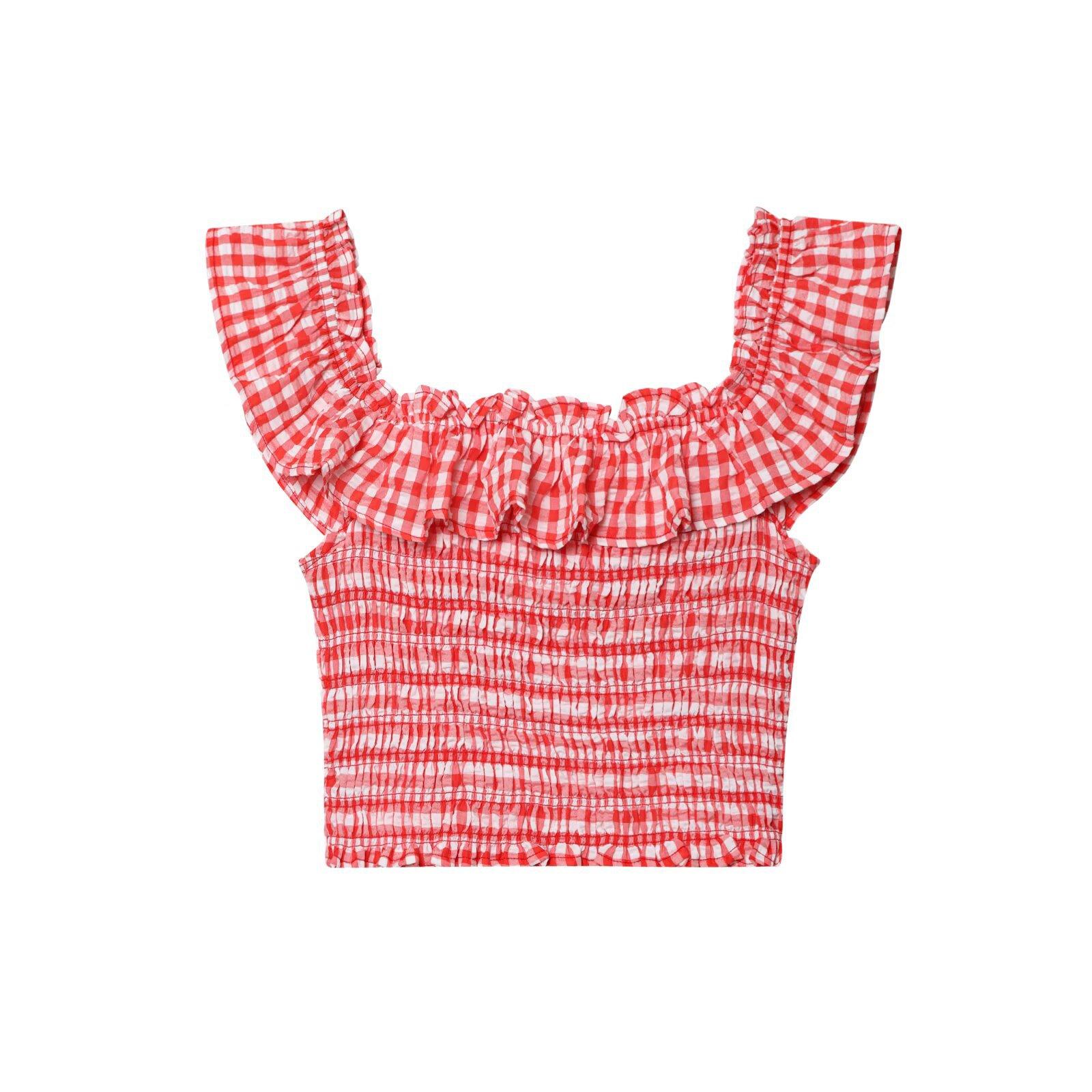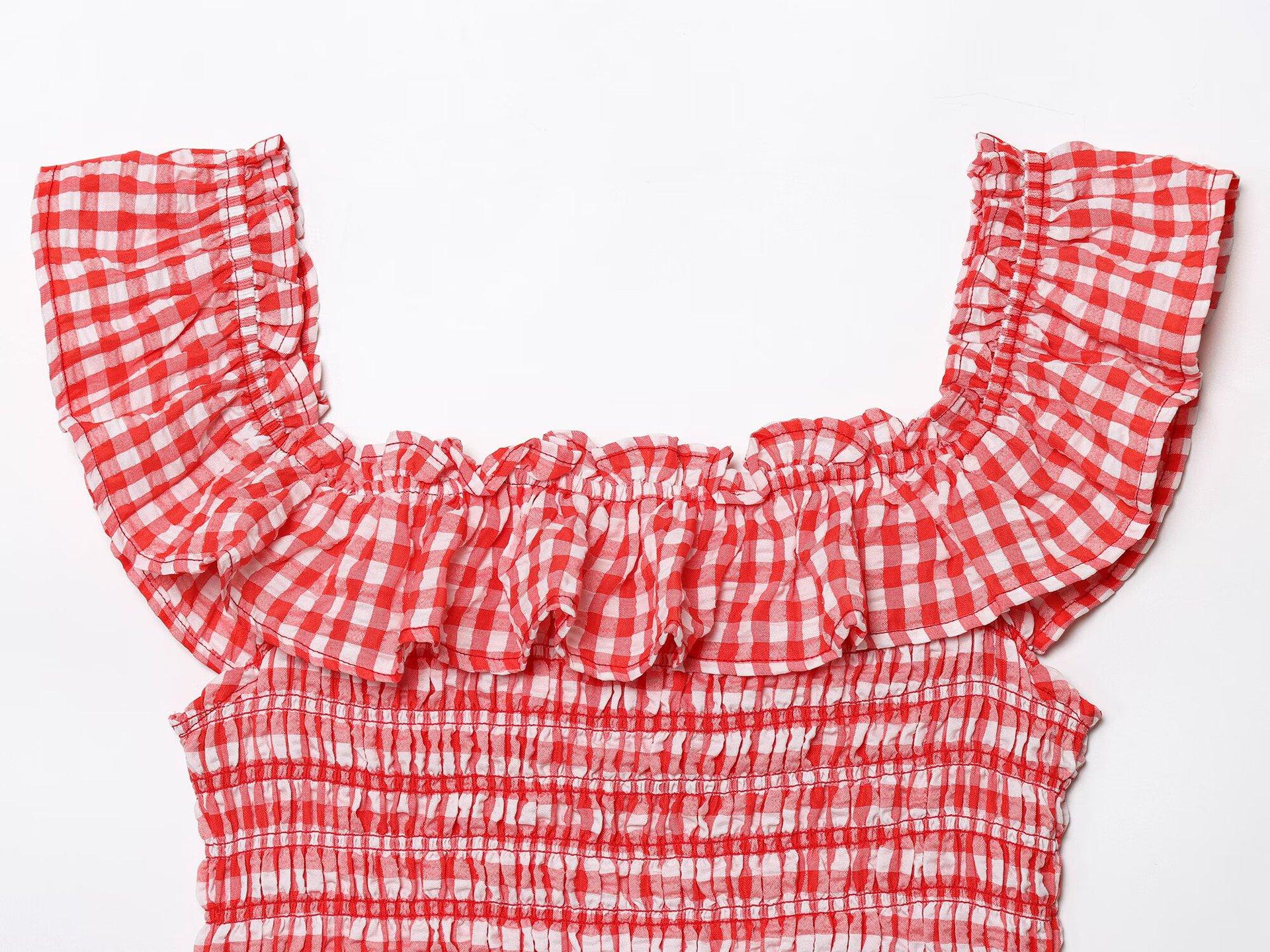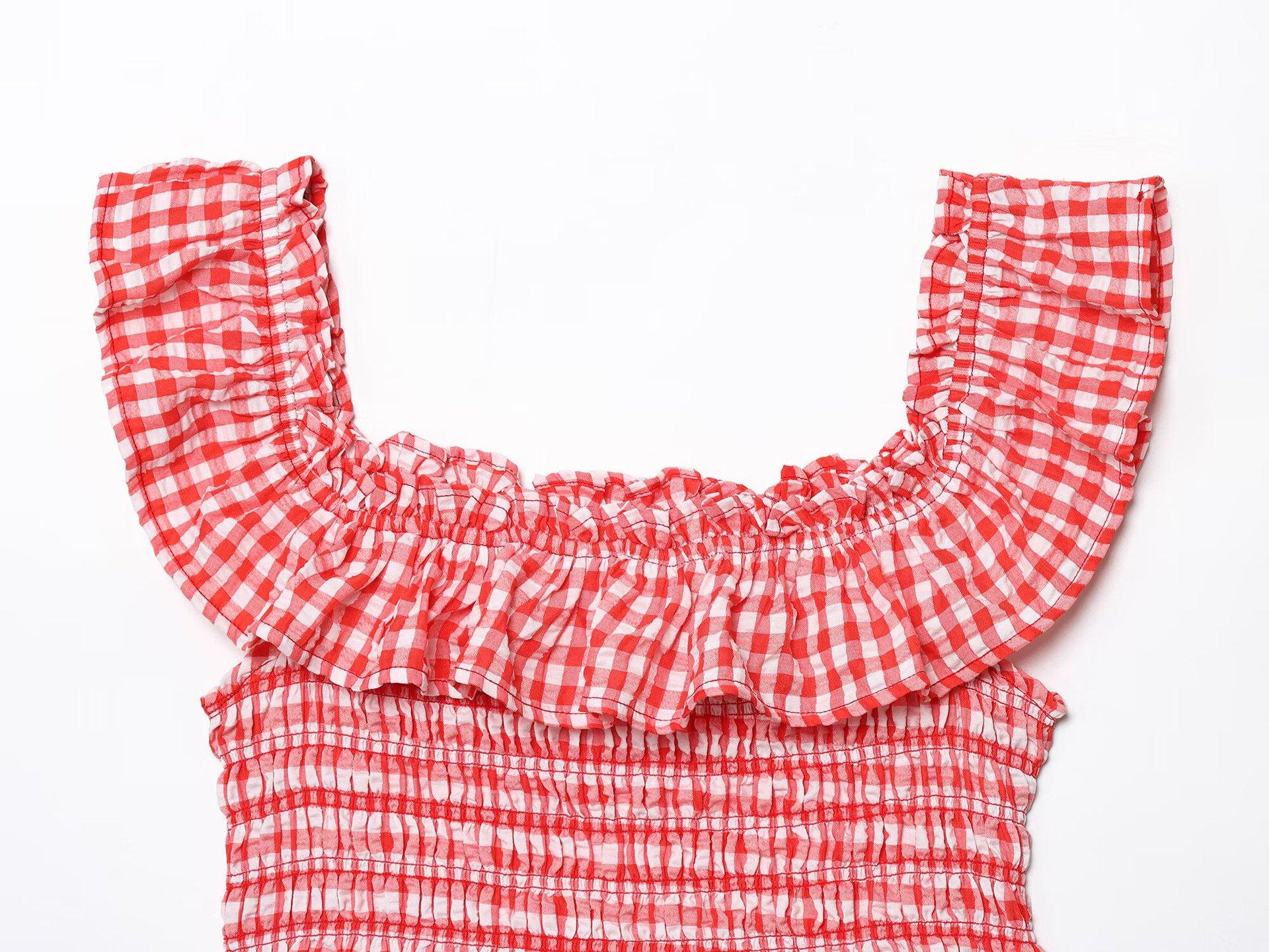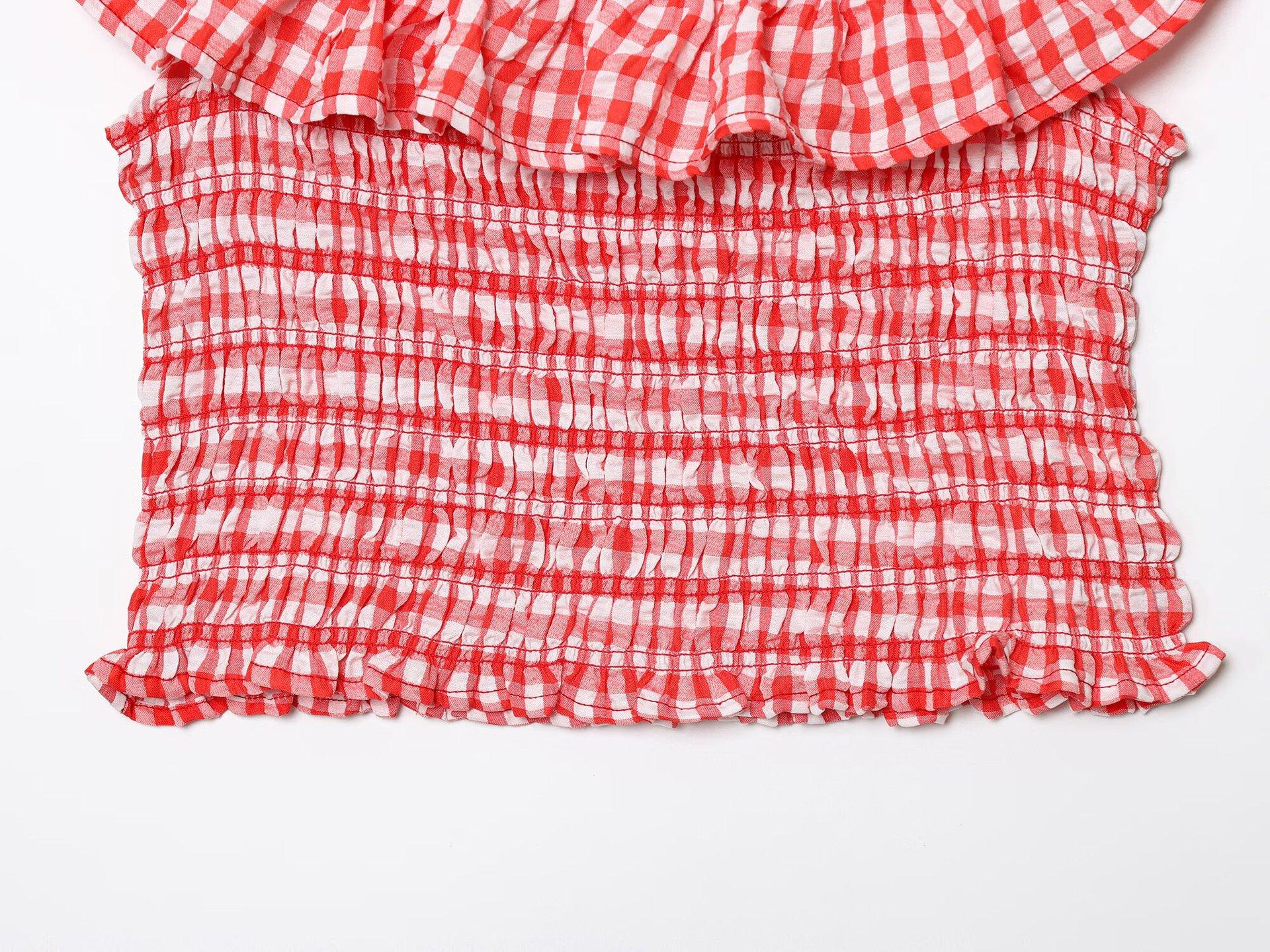 Exportación Transfronteriza Ropa de Mujer 2025 Verano Europeo y Americano Volantes Cuello U Sin Mangas Camisola a Cuadros para Mujer A4620