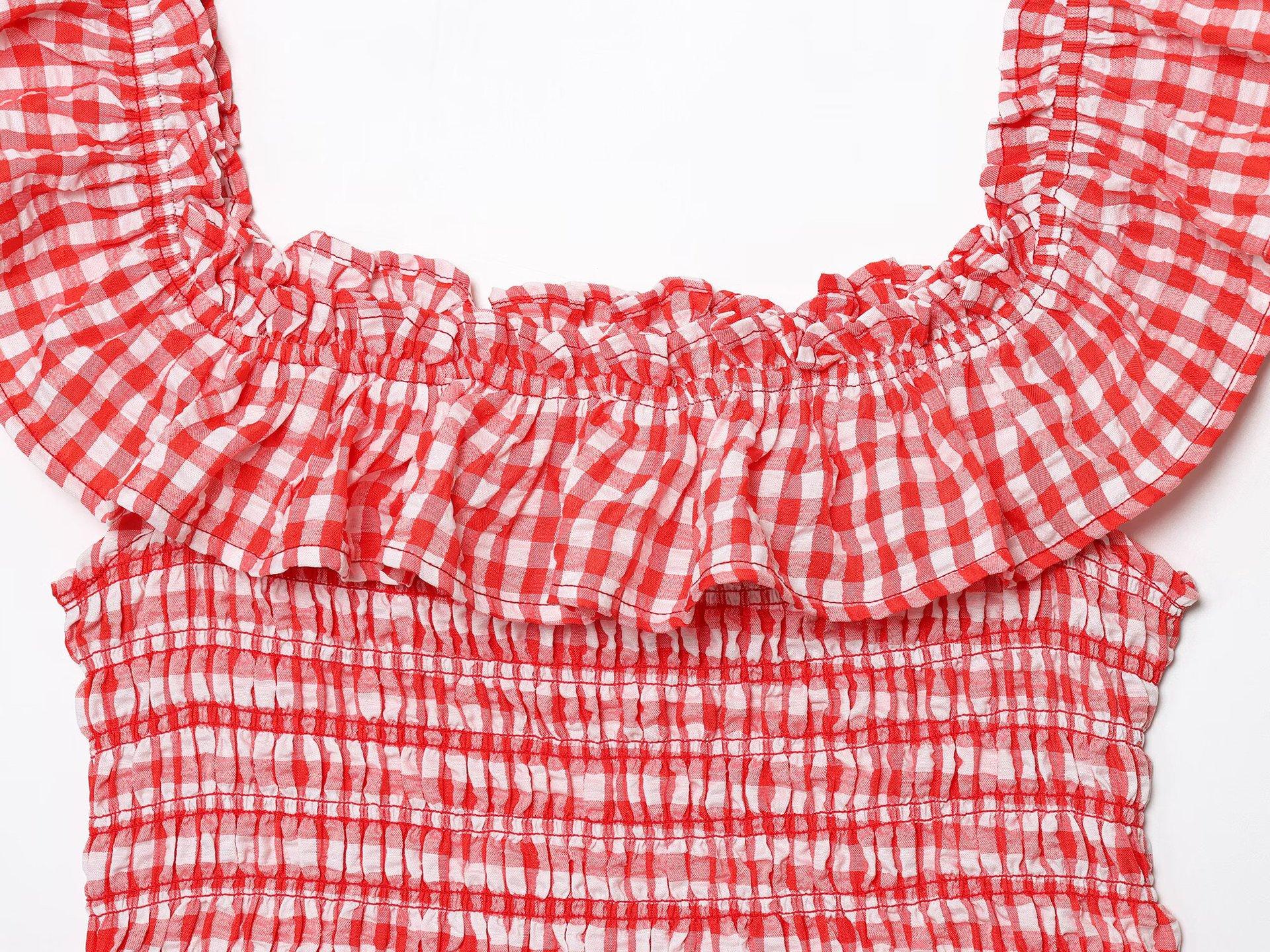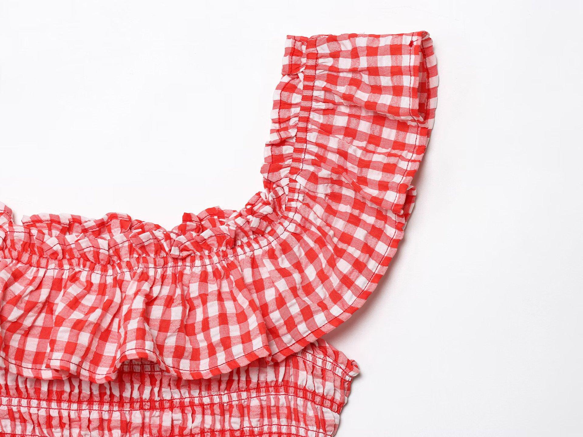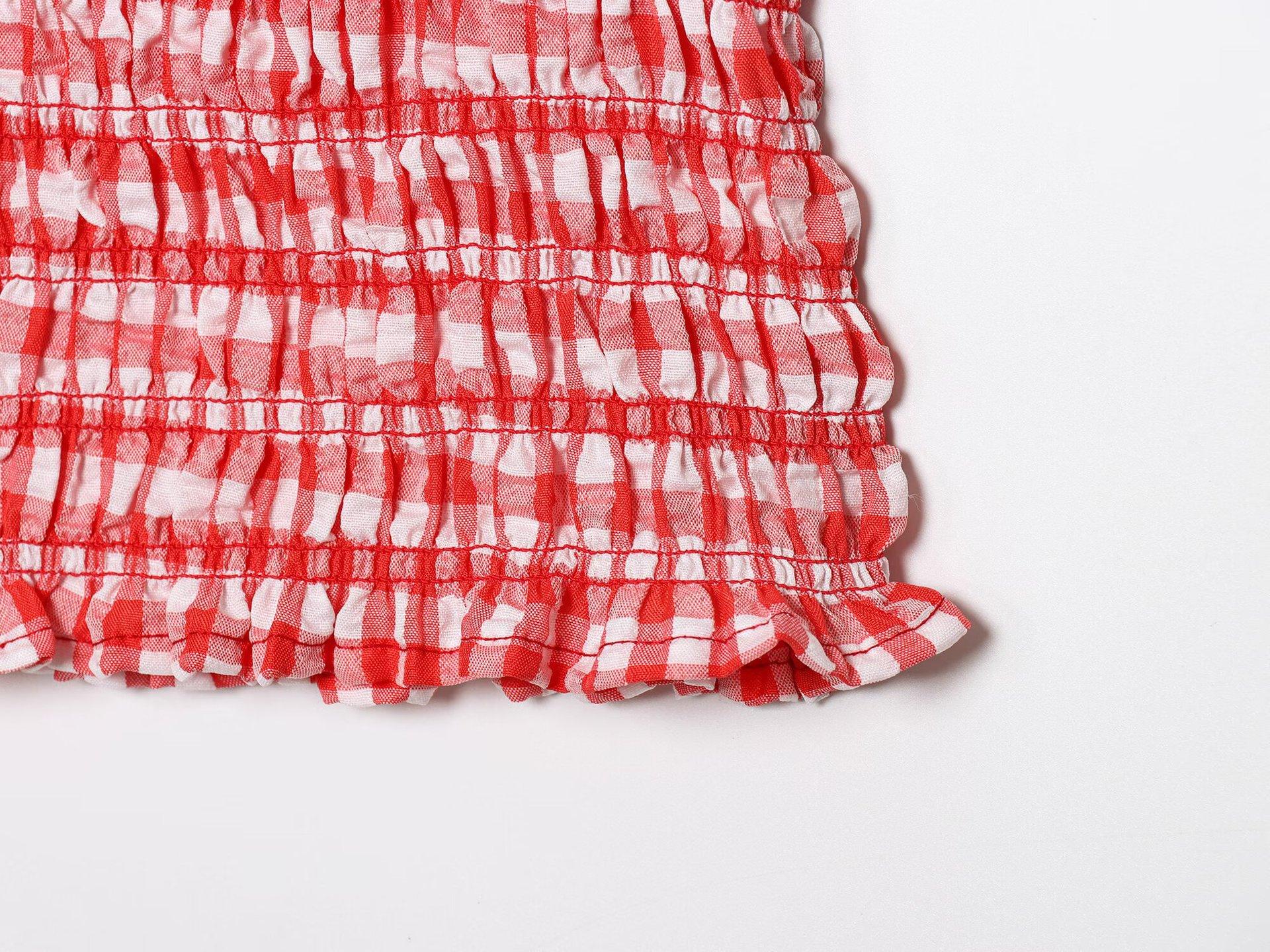 Exportación Transfronteriza Ropa de Mujer 2025 Verano Europeo y Americano Volantes Cuello U Sin Mangas Camisola a Cuadros para Mujer A4620