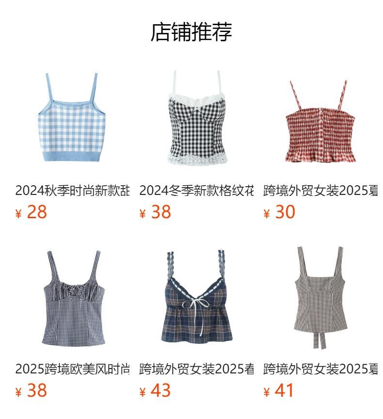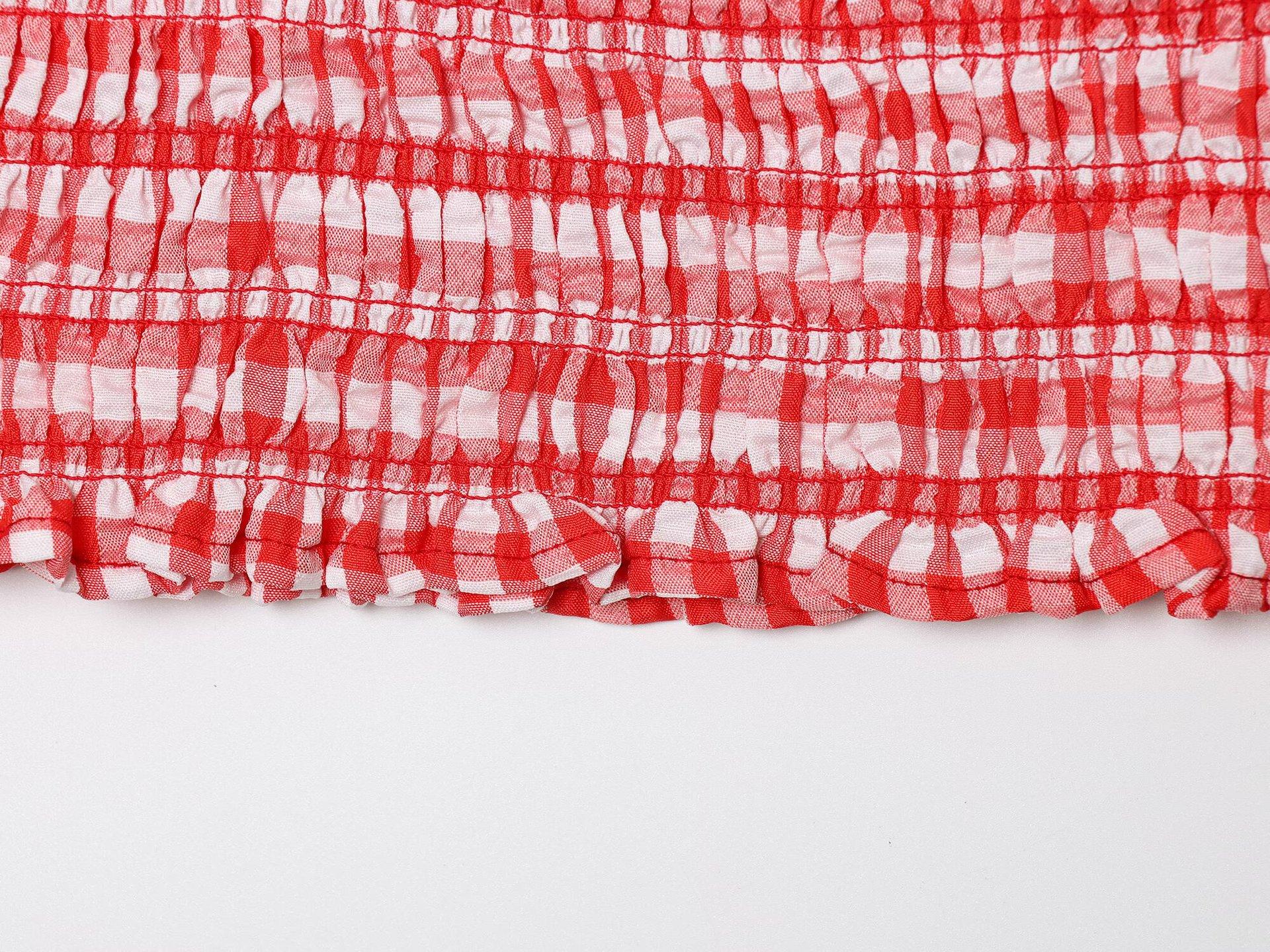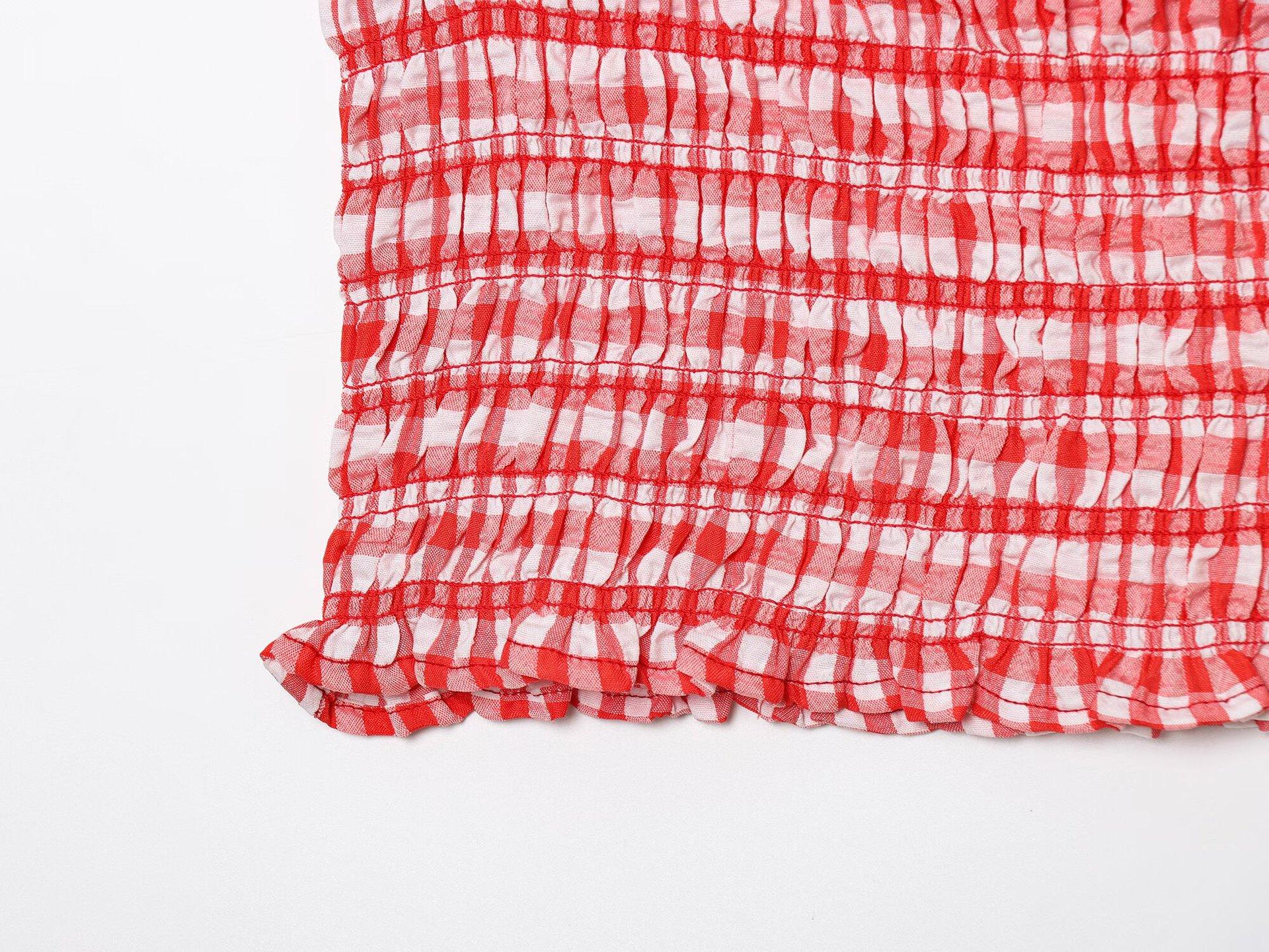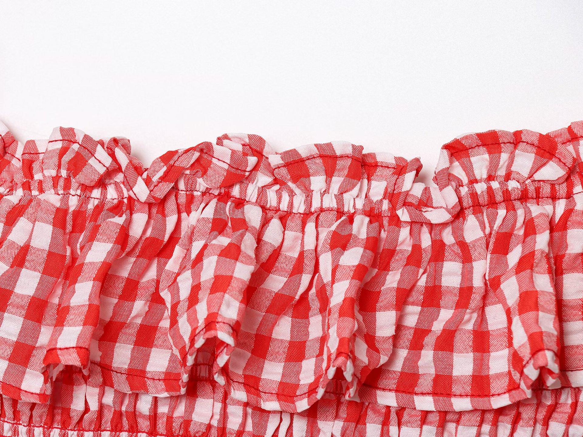 Exportación Transfronteriza Ropa de Mujer 2025 Verano Europeo y Americano Volantes Cuello U Sin Mangas Camisola a Cuadros para Mujer A4620