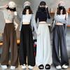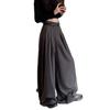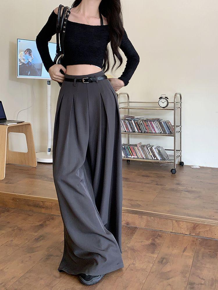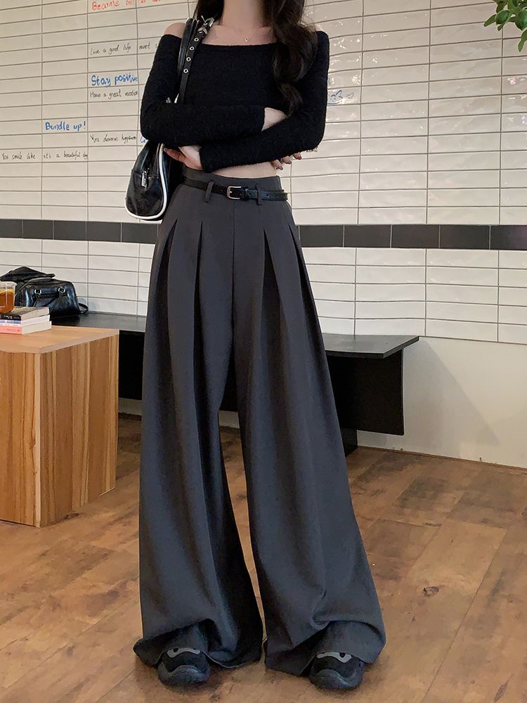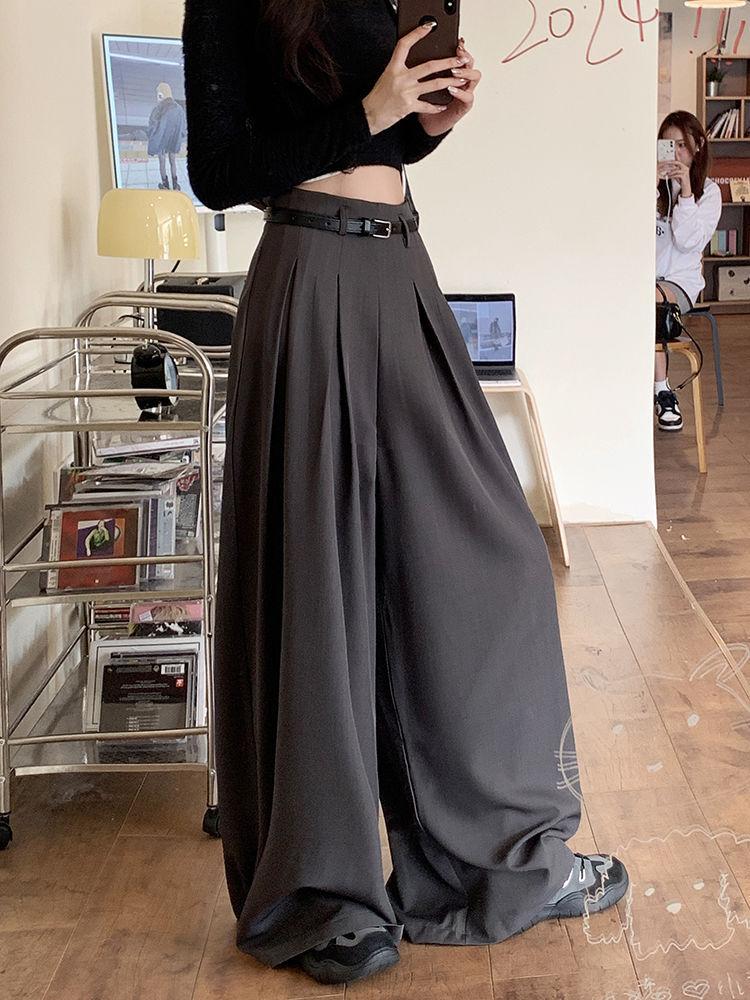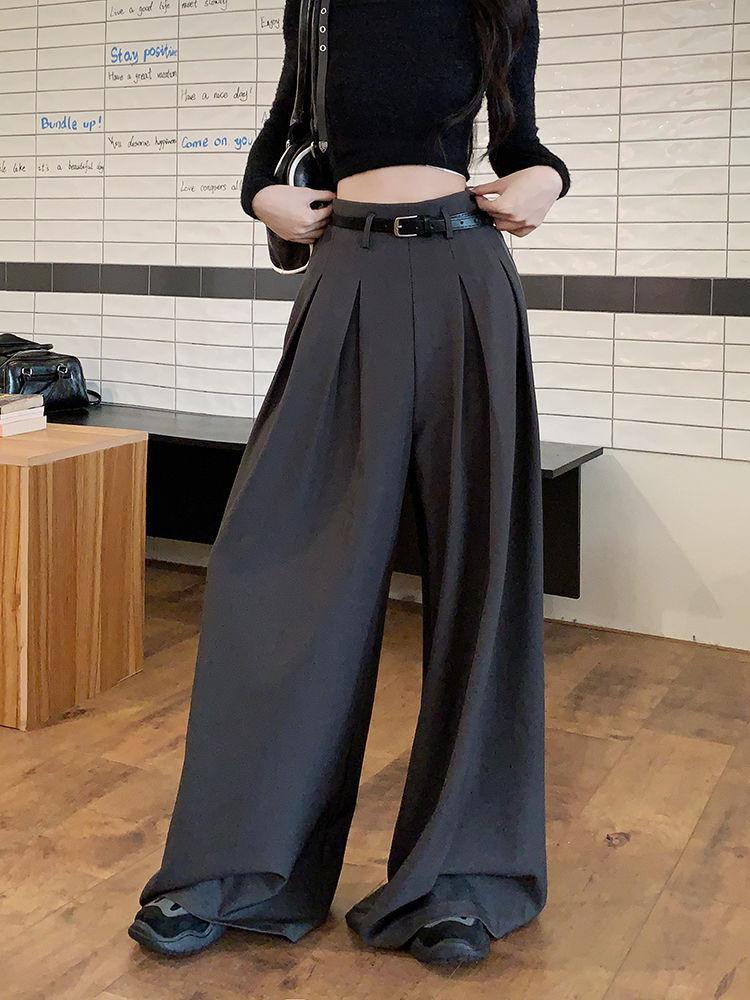Pantalones de Traje Grises Drapeados de Alta Gama para Mujer, Verano Nuevo Pantalones Rectos de Pierna Ancha de Cintura Alta, Pantalones Casuales, Pantalones hasta el Piso