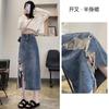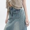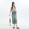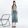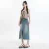 Falda de mezclilla retro con abertura para mujer Nueva suelta larga de talle alto con borlas Falda pequeña acampanada