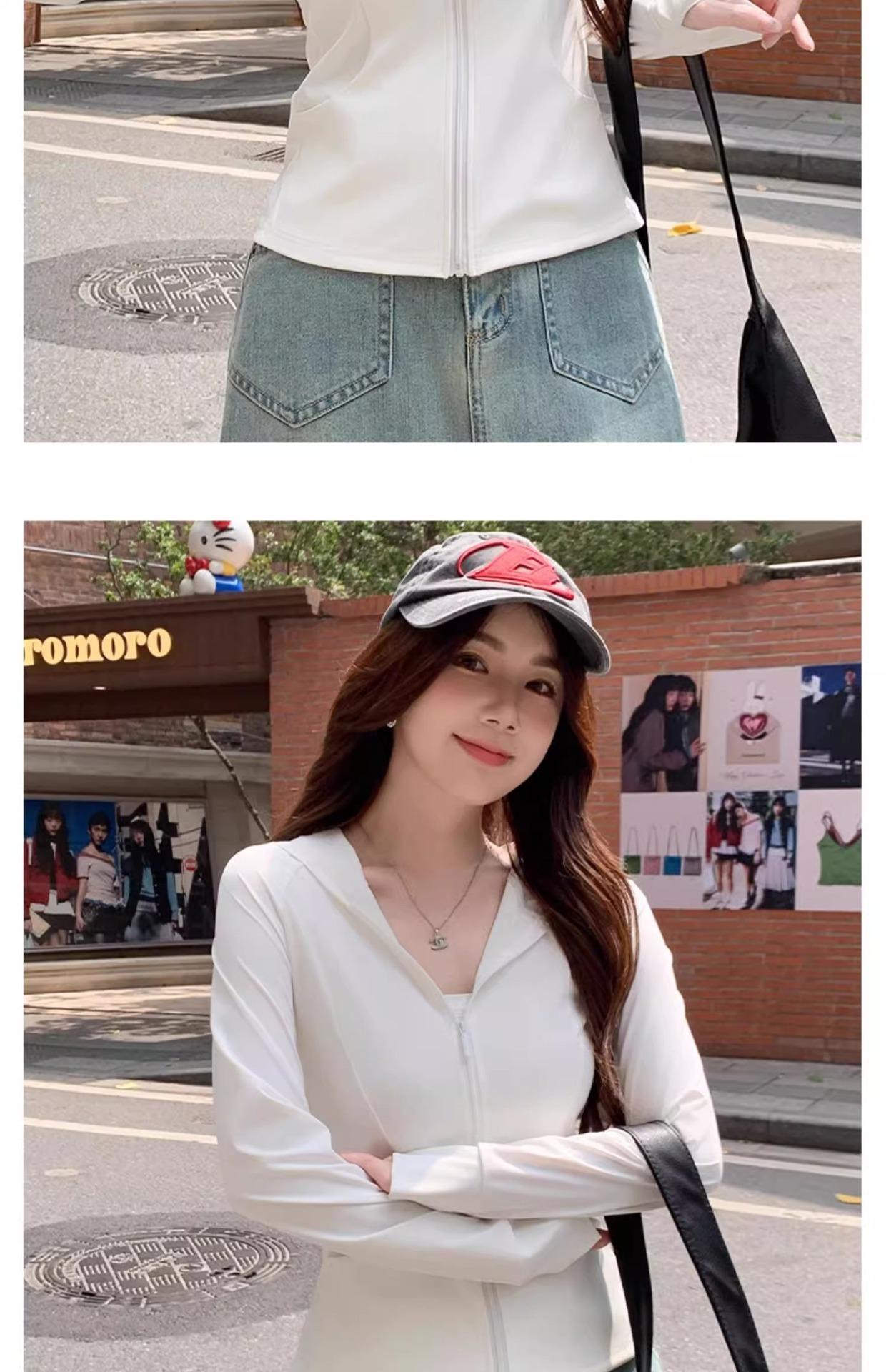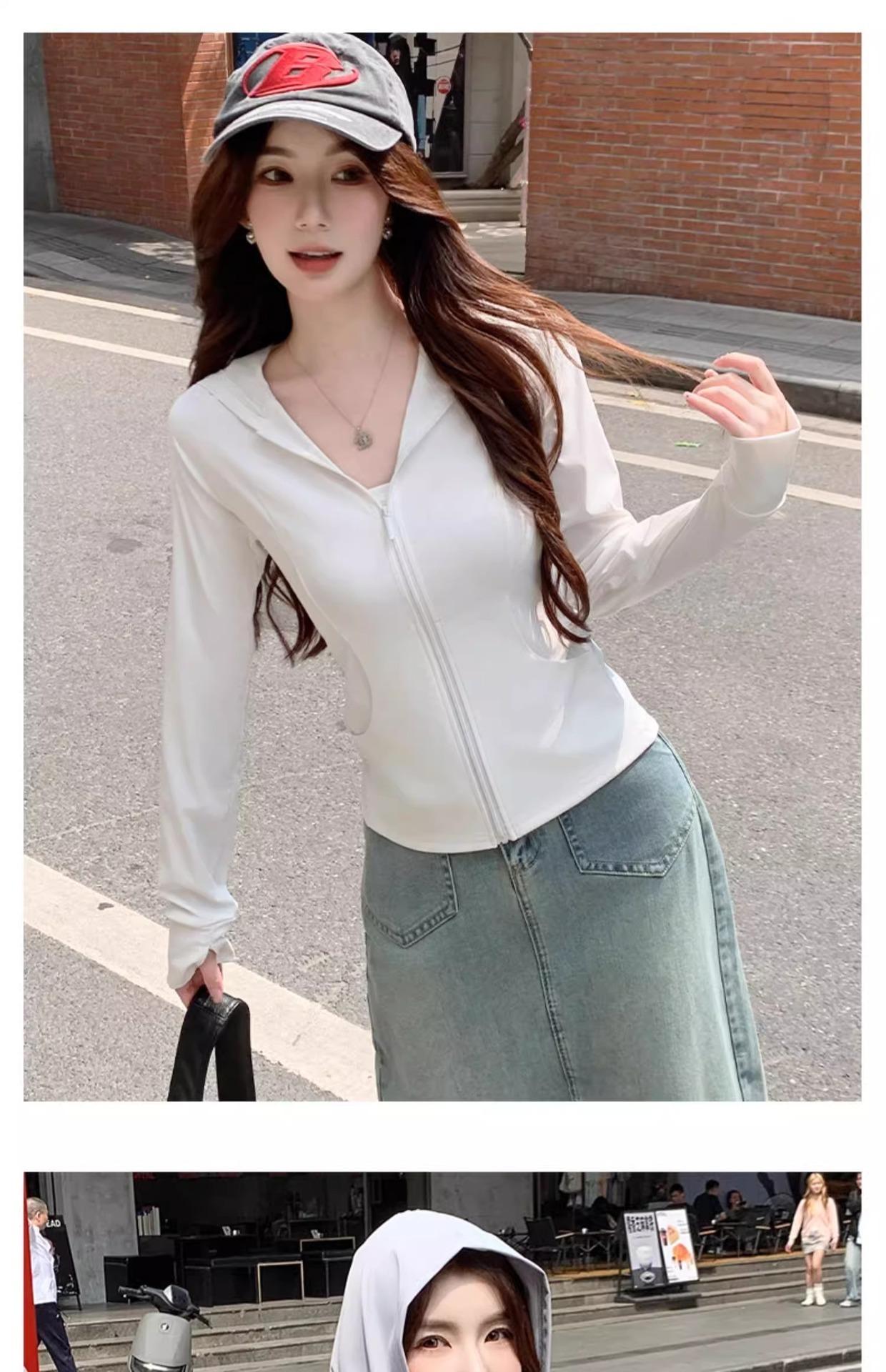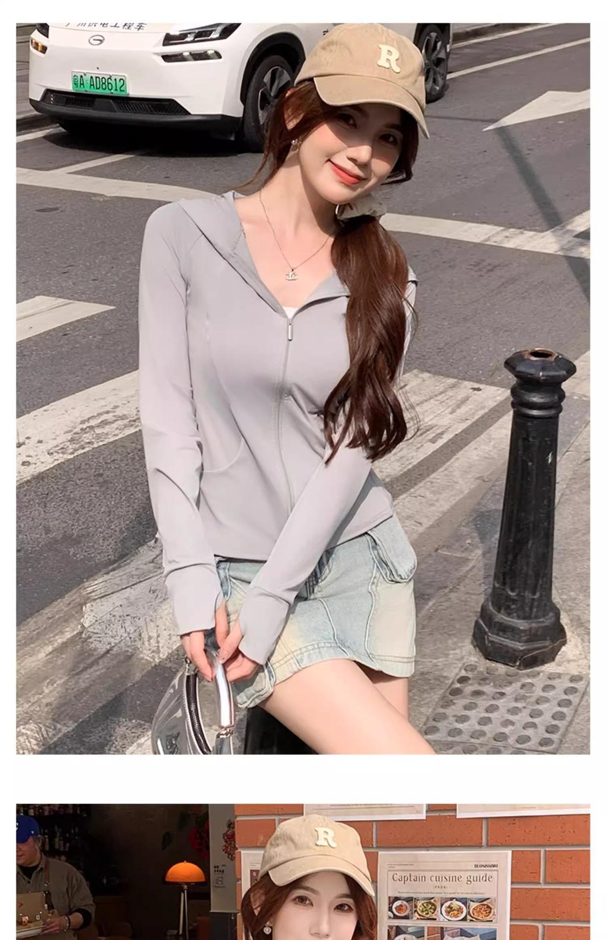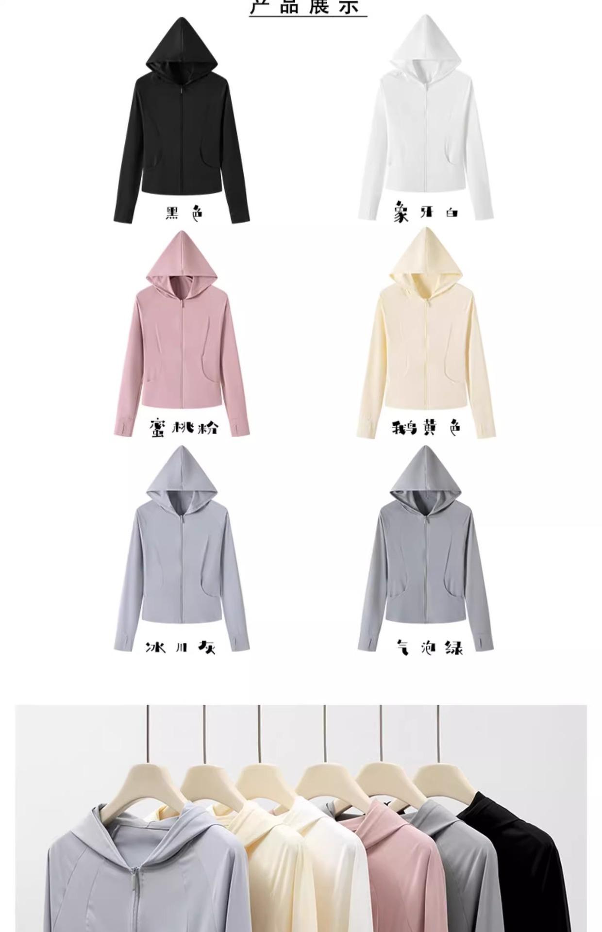 Ropa de Protección Solar de Seda de Hielo con Capucha para Mujer 2025 Nuevo Verano Fina para Exterior Anti-UV Ajustada Chaqueta Top