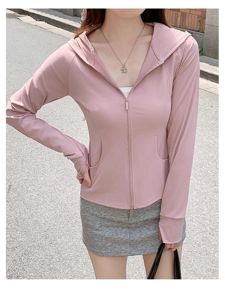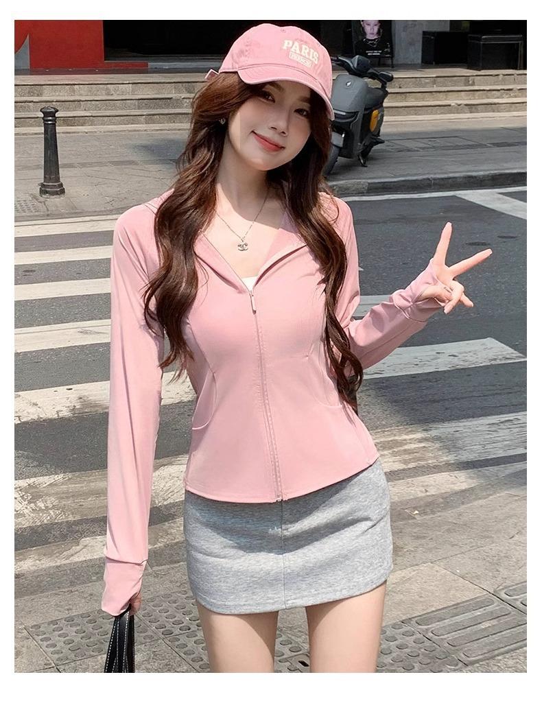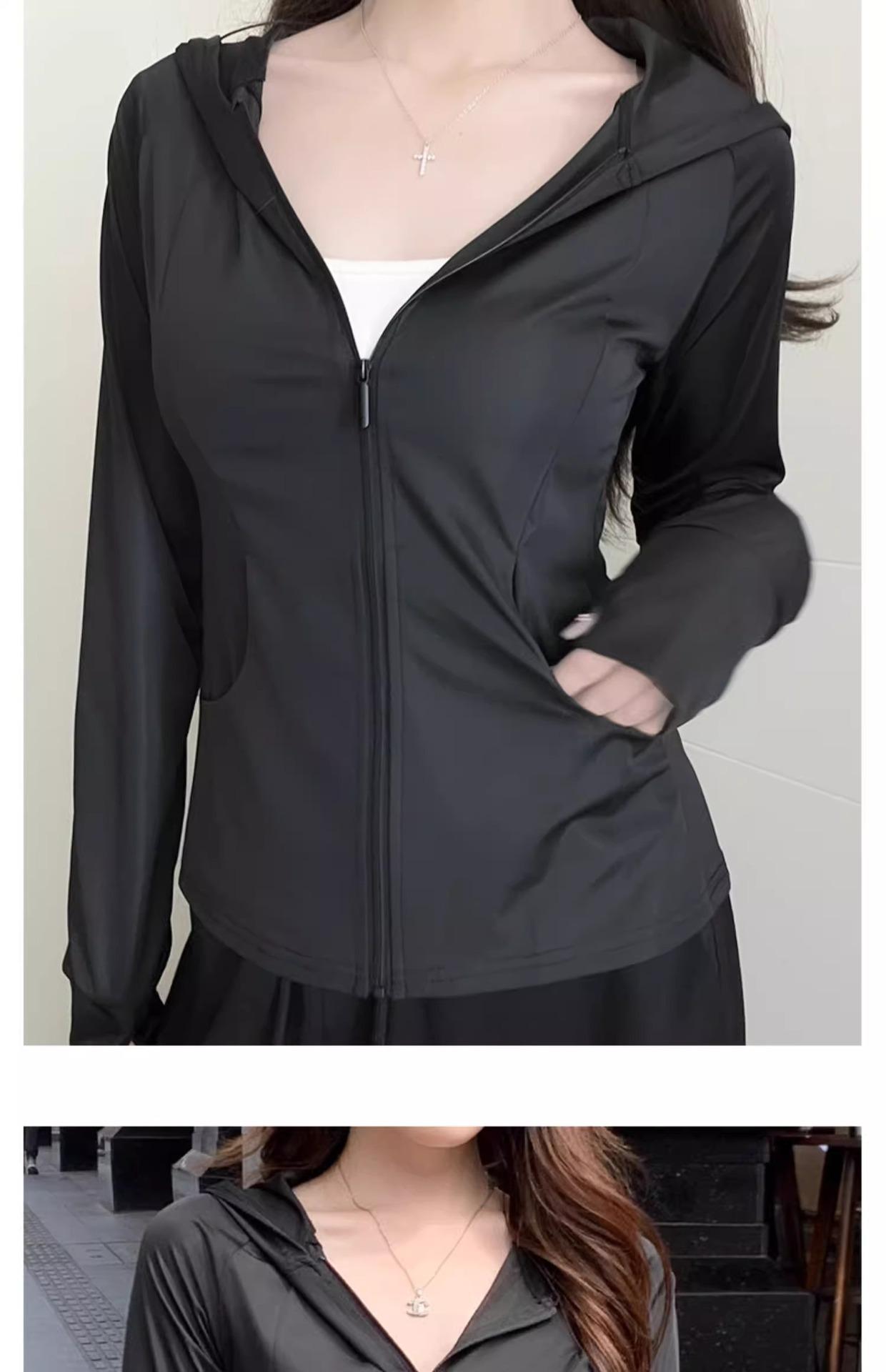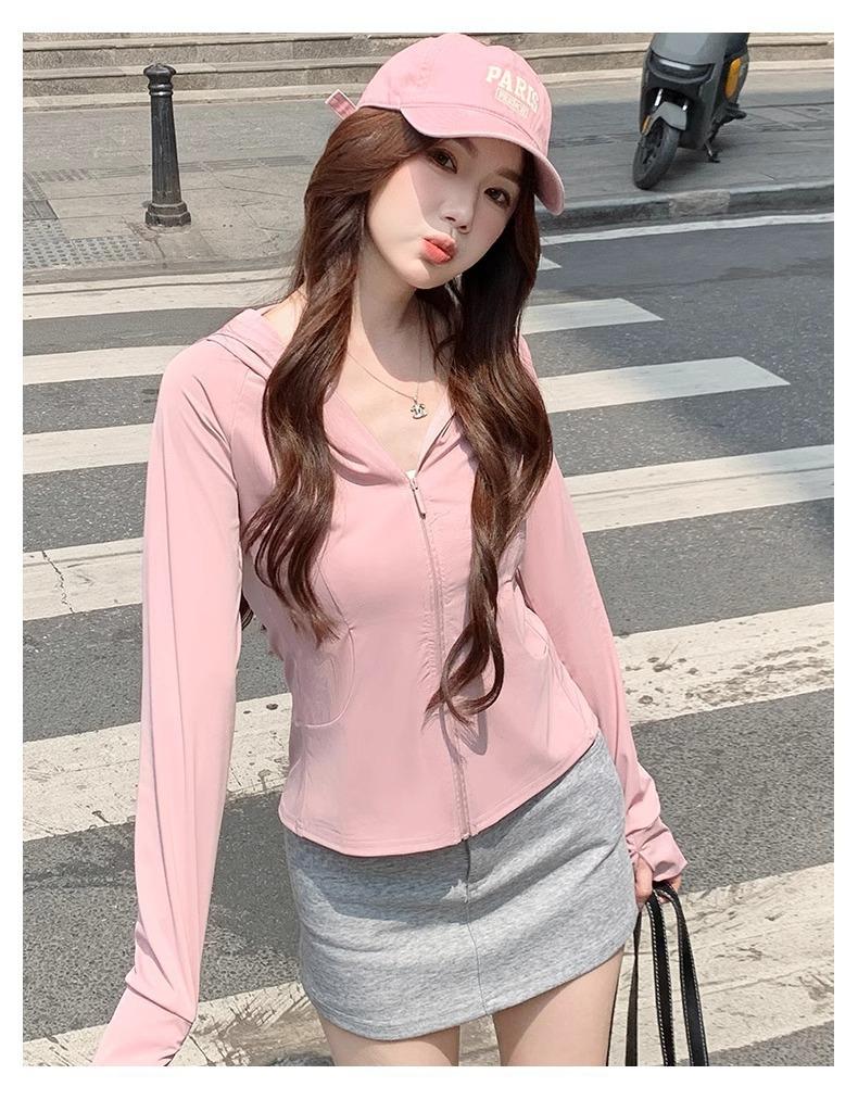 Ropa de Protección Solar de Seda de Hielo con Capucha para Mujer 2025 Nuevo Verano Fina para Exterior Anti-UV Ajustada Chaqueta Top