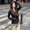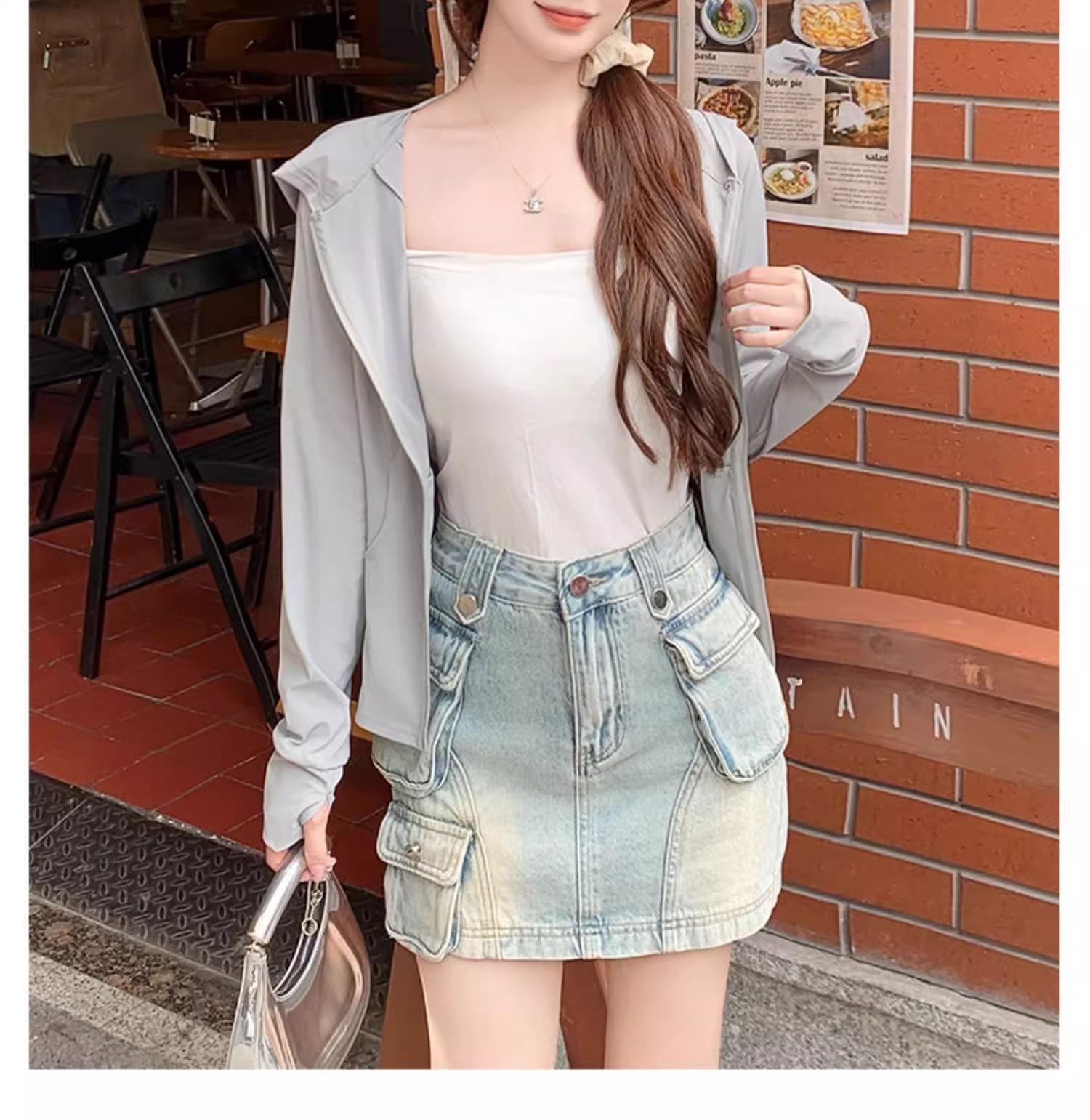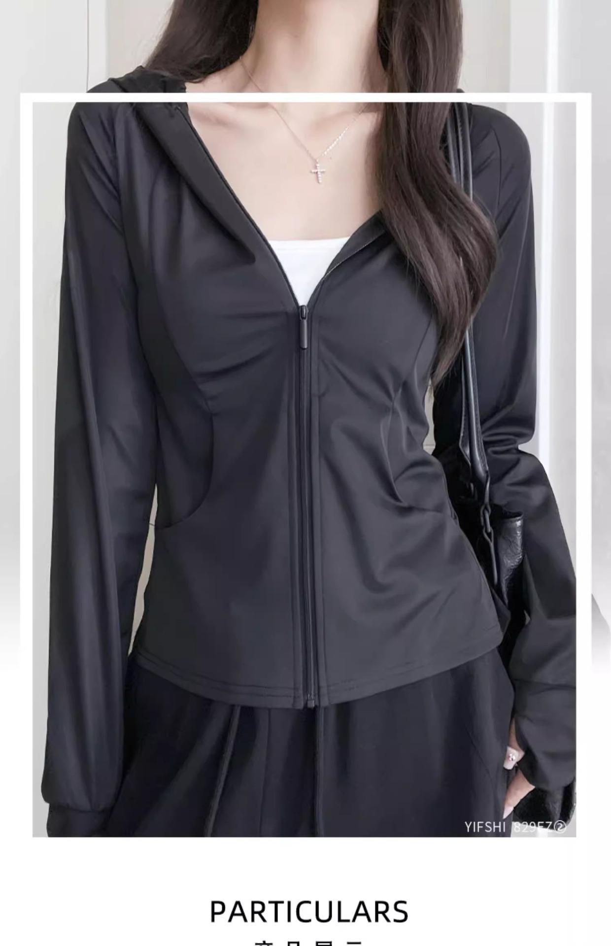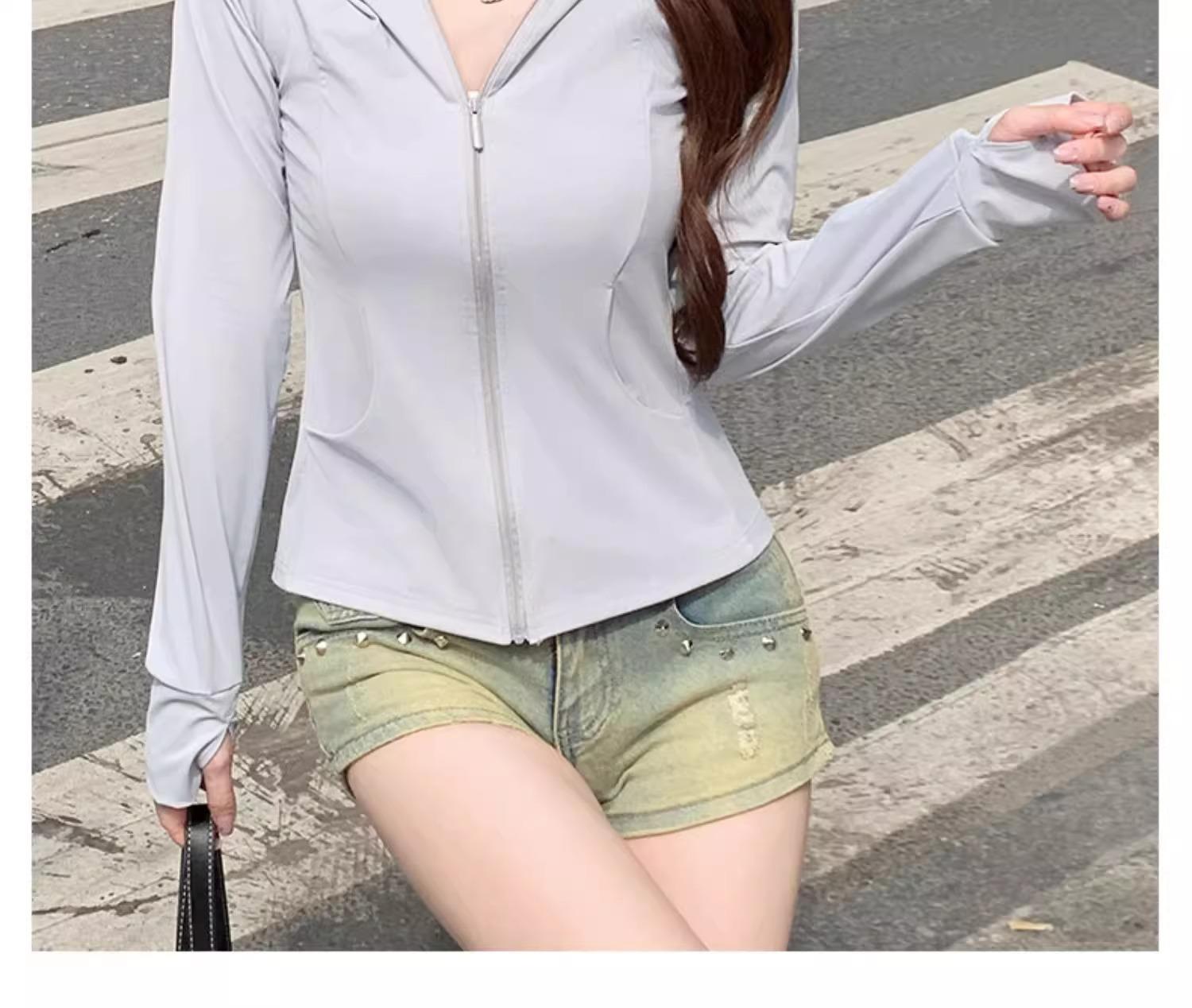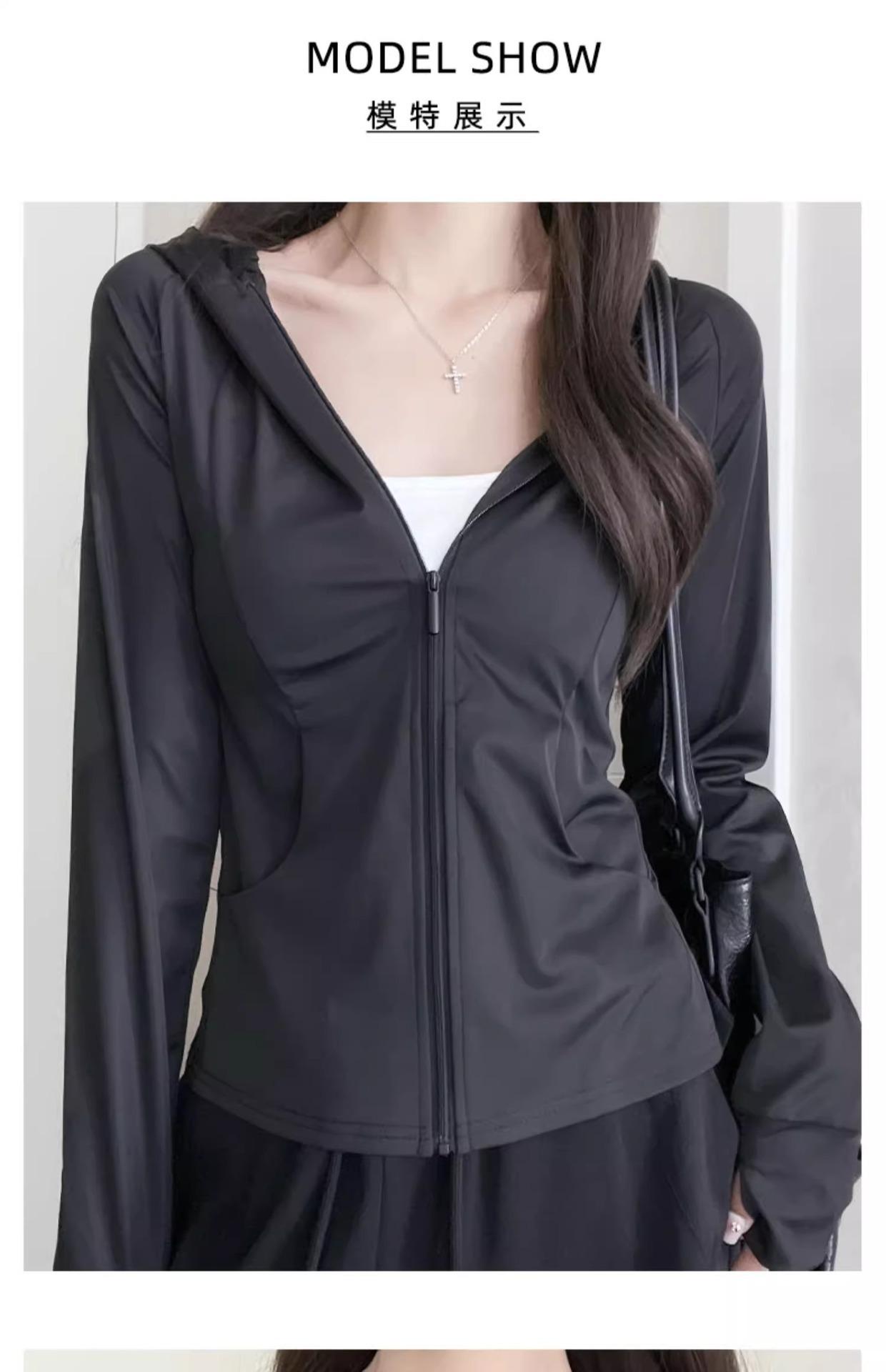 Ropa de Protección Solar de Seda de Hielo con Capucha para Mujer 2025 Nuevo Verano Fina para Exterior Anti-UV Ajustada Chaqueta Top