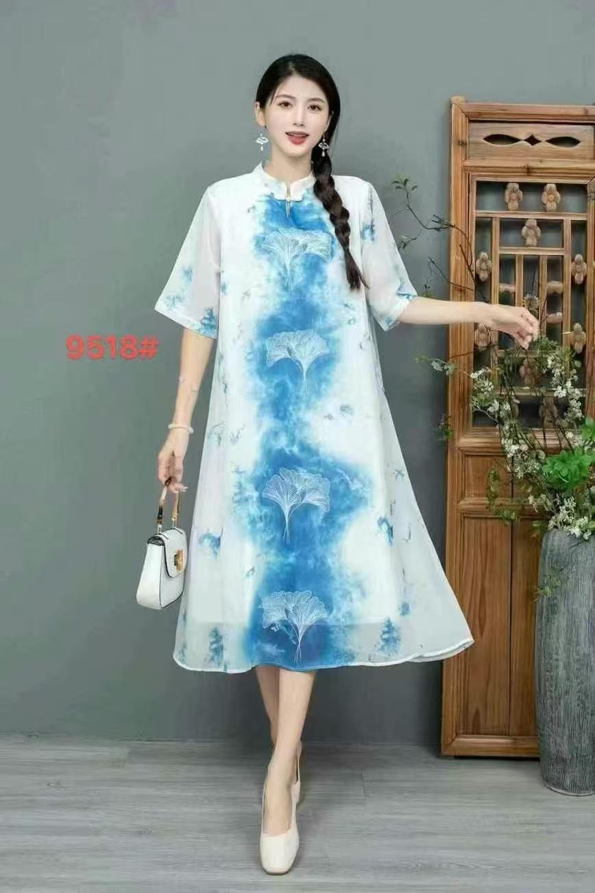 Vestido de Verano Vestido Yunnan Dali Vestido Cheongsam de Nuevo Estilo Chino Vestido de Chifón de Verano Listo para la Venta