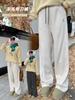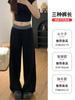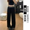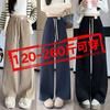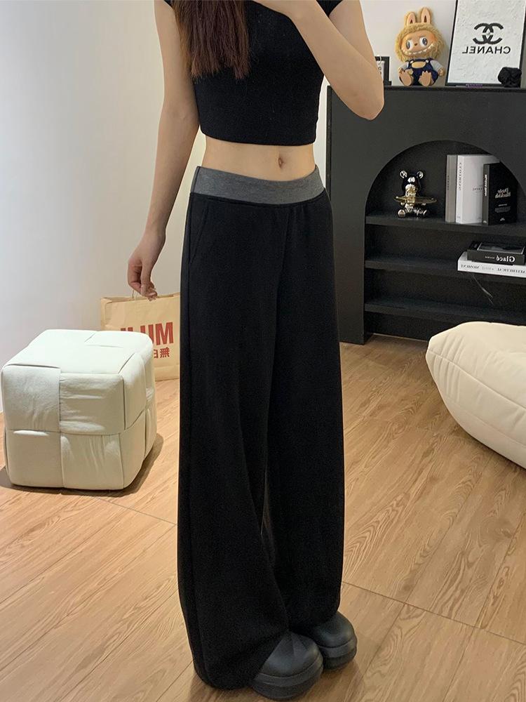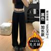Pantalones casuales negros empalmados para mujer en otoño e invierno talla grande gordita mm holgados adelgazantes figura de pera forrados de polar pantalones deportivos de pierna ancha