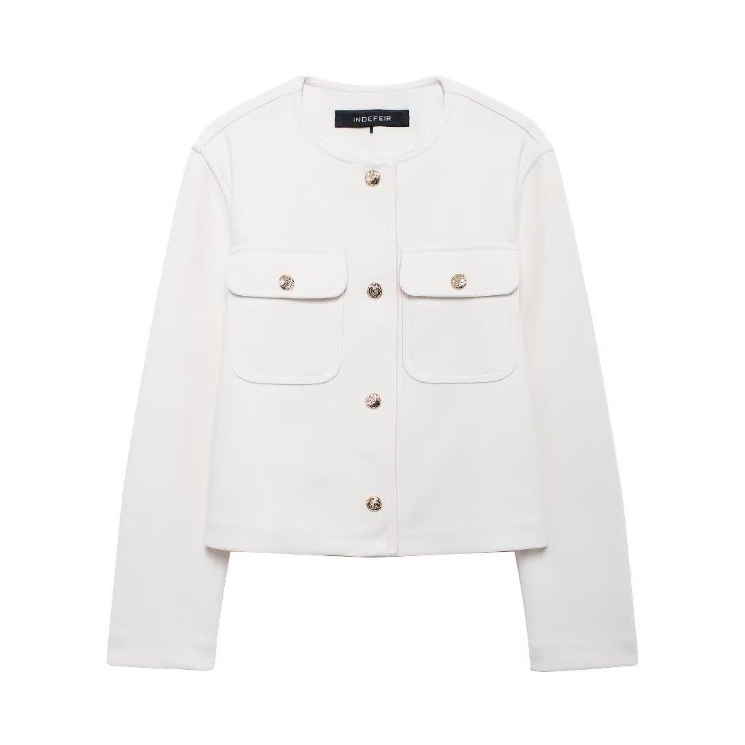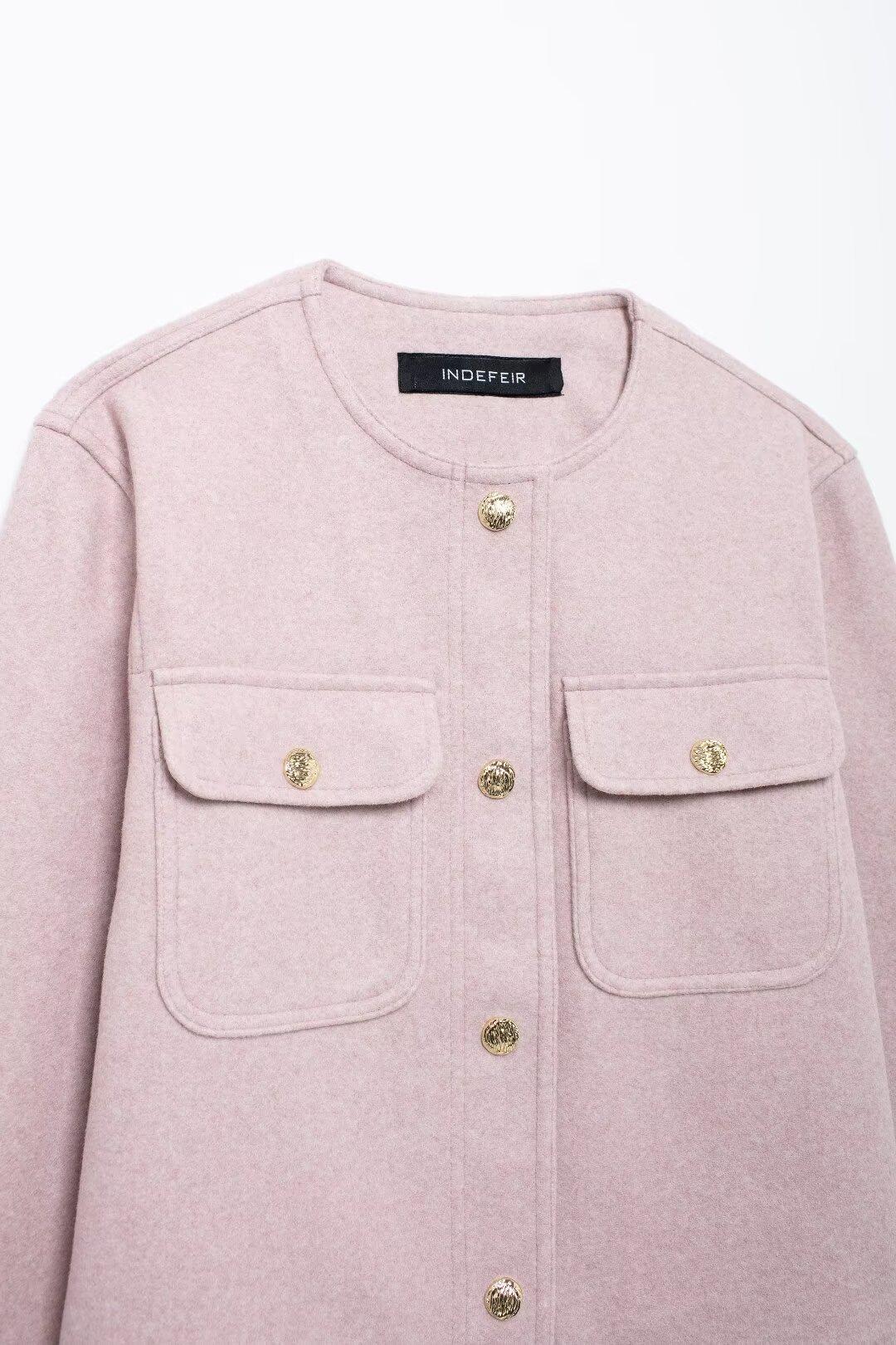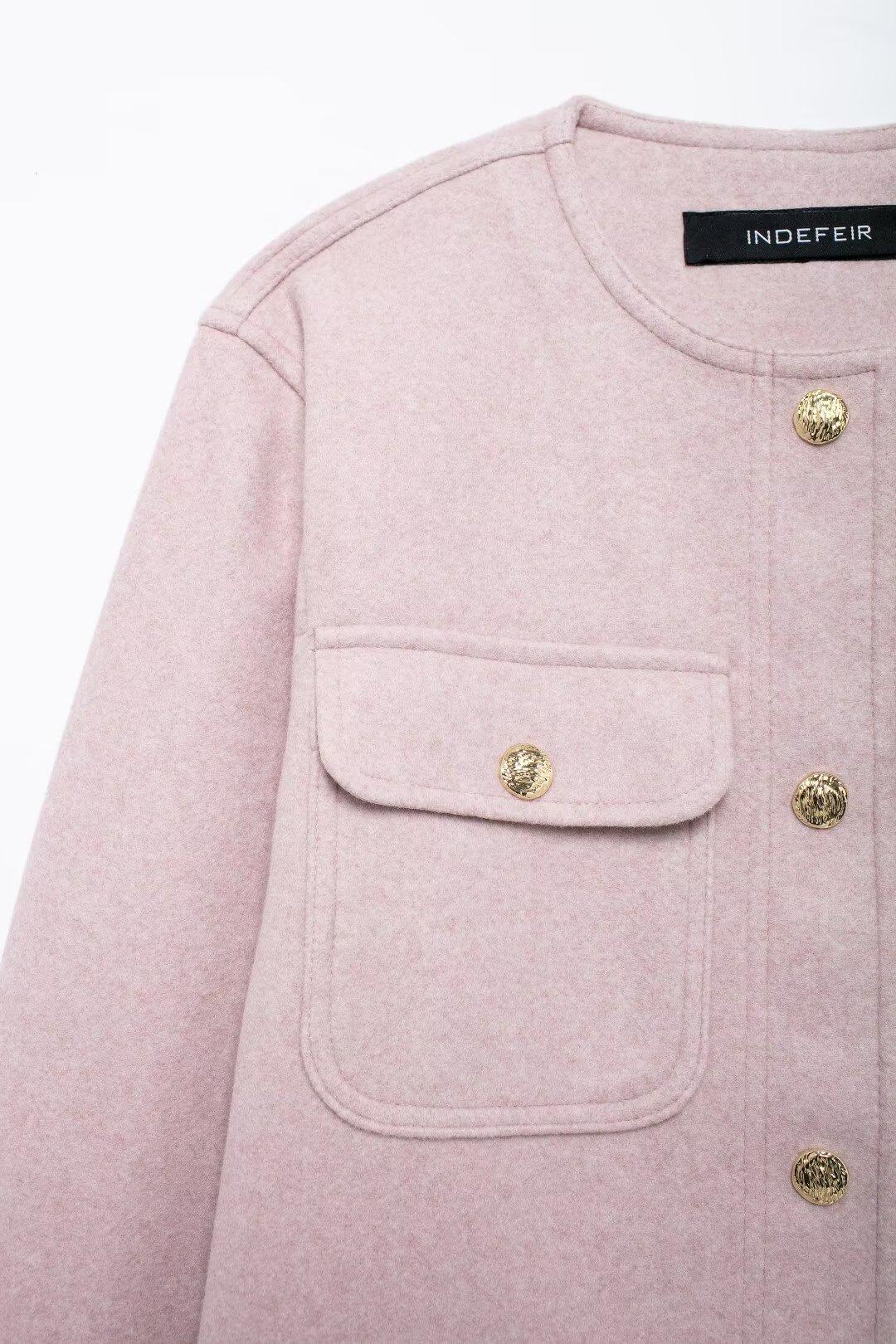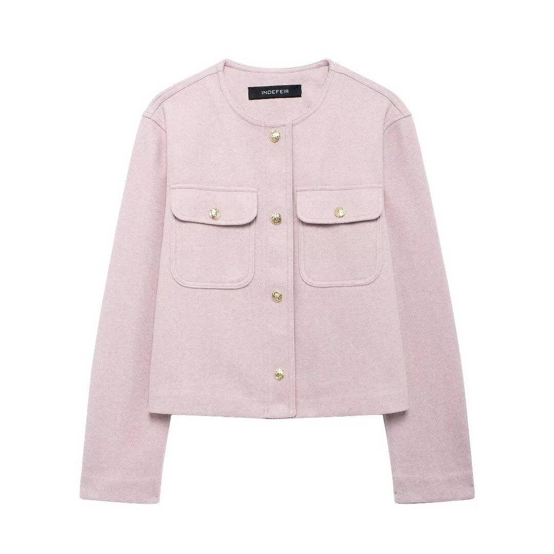 Ropa de Otoño para Mujer 2024 Nuevo Estilo Europeo y Americano Moda Sencilla Pantalones con Bolsillo de Solapa Chaqueta Suave Decorada 3046270