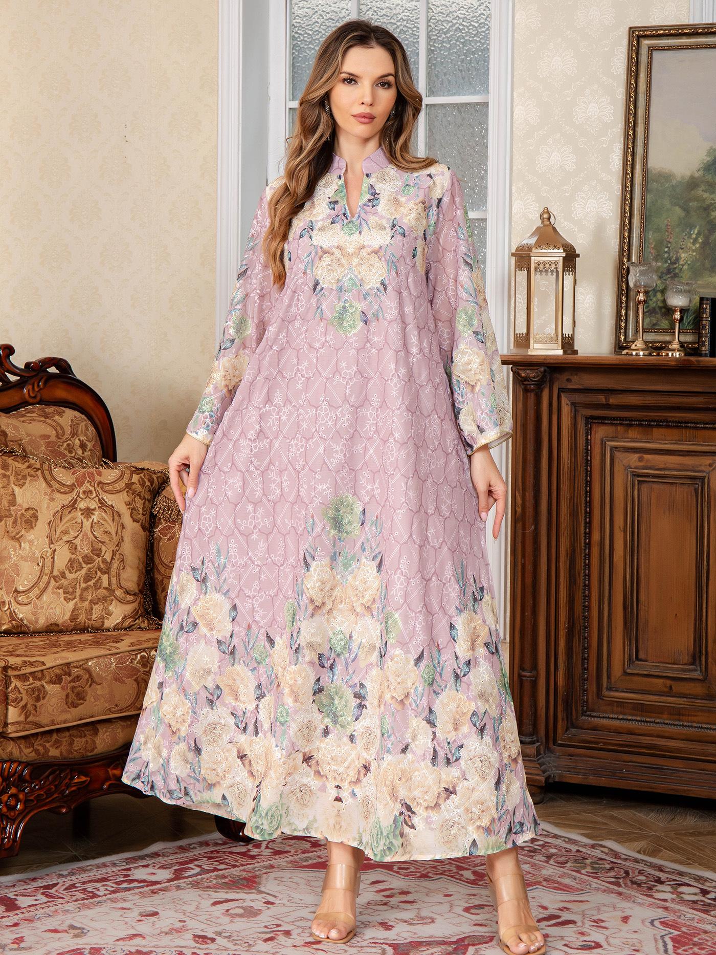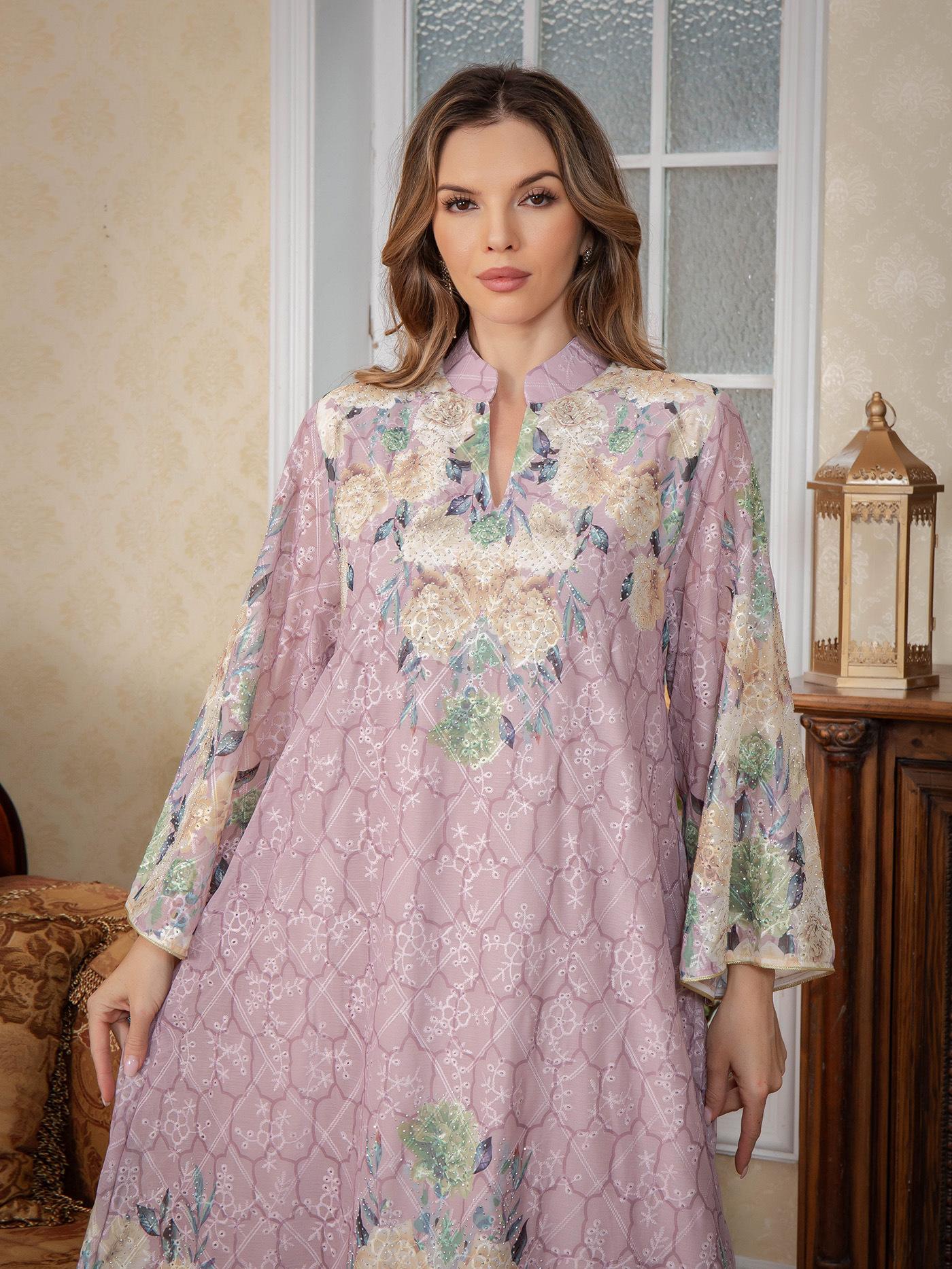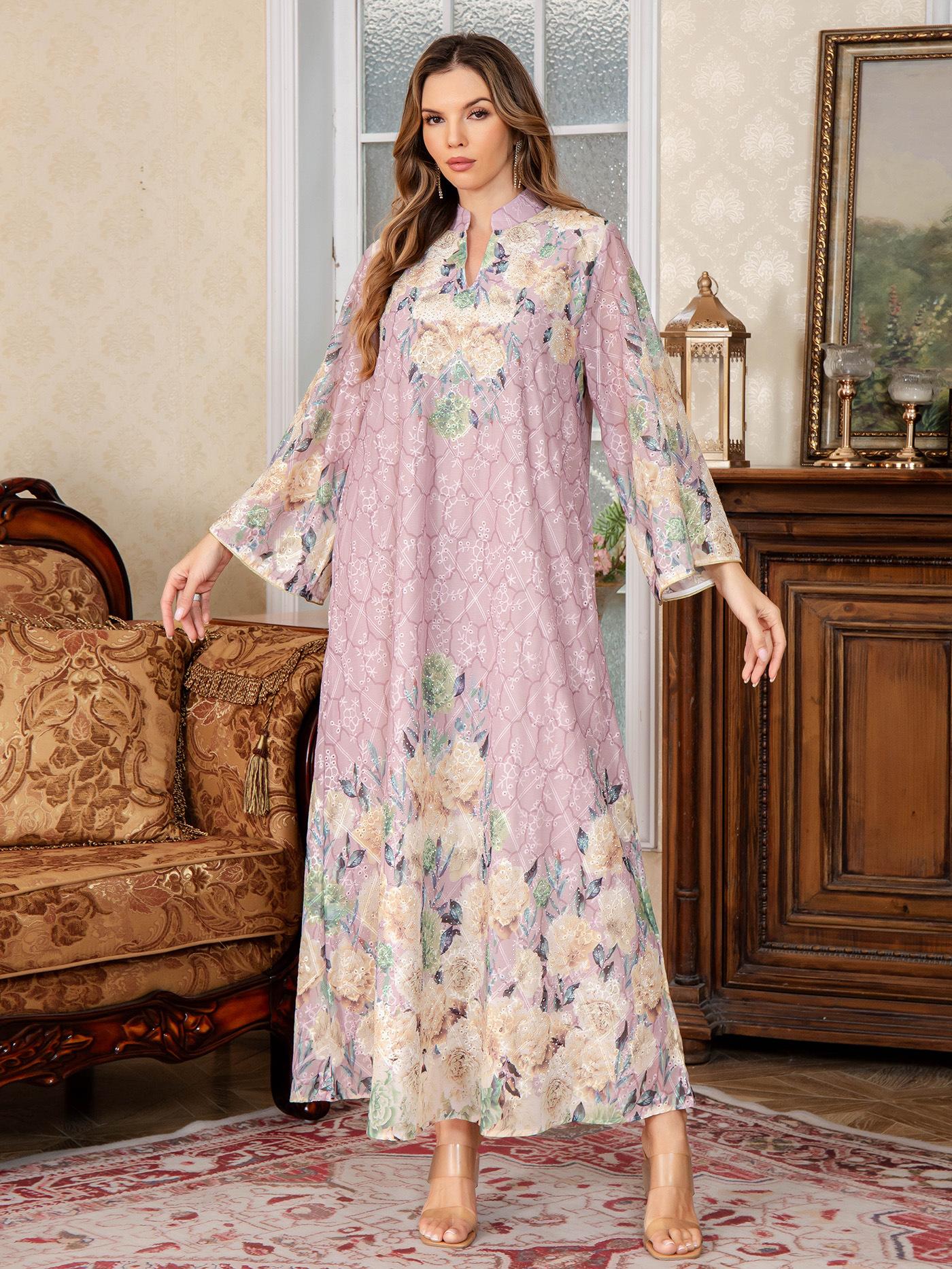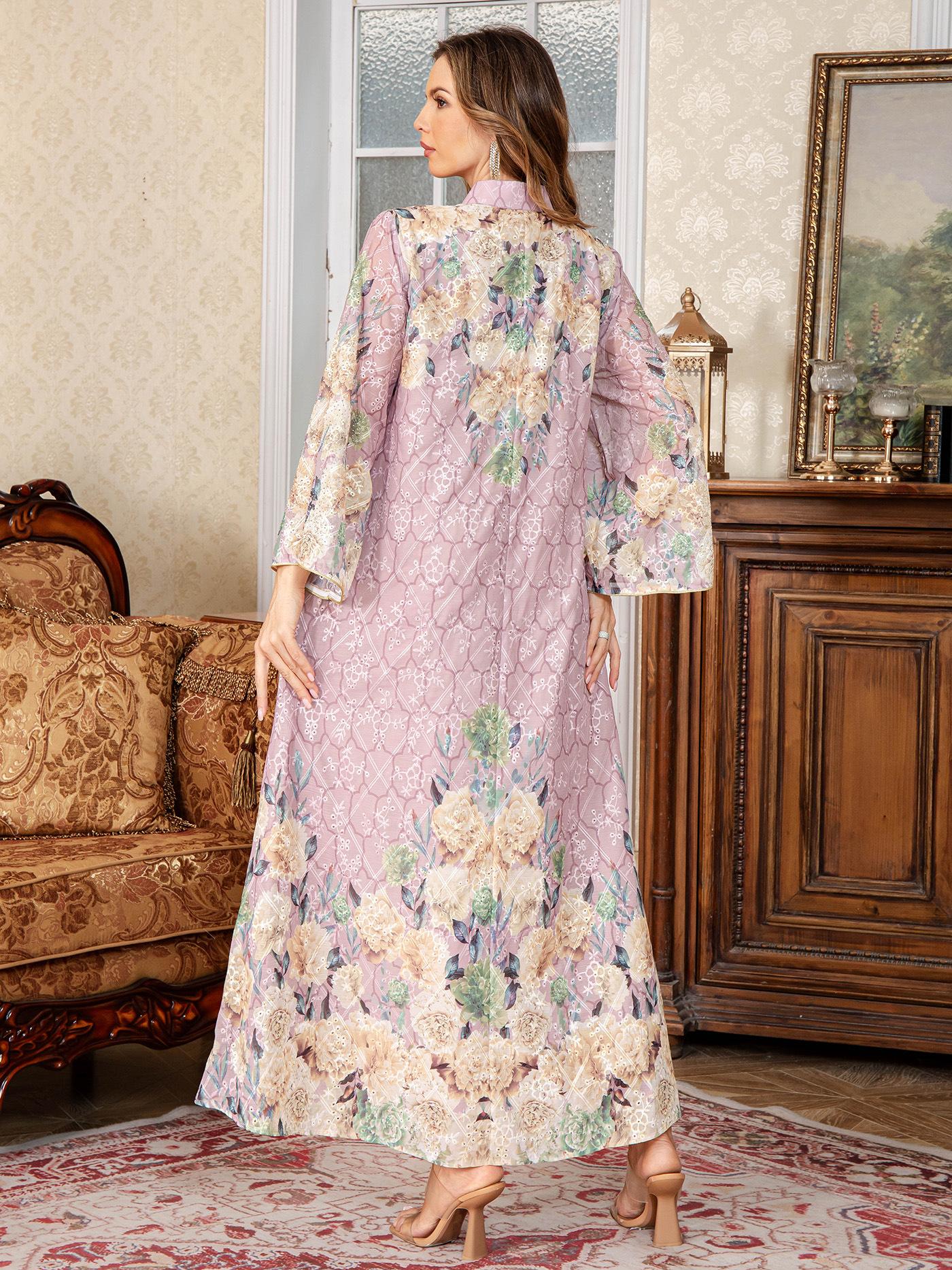 Nuevo en Stock Estampado Bordado Bata Grande Vestido Medio Oriente Ropa de Mujer Dubái Abaya Elegante Bata Larga Musulmana