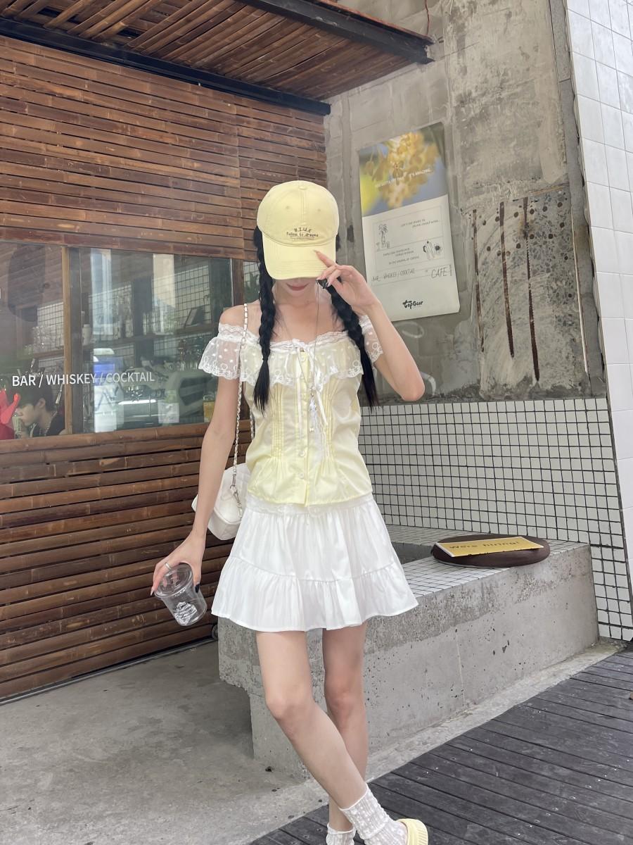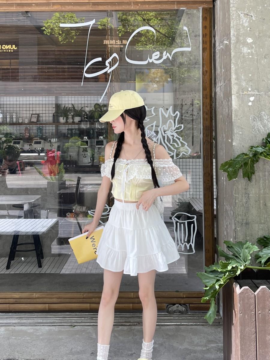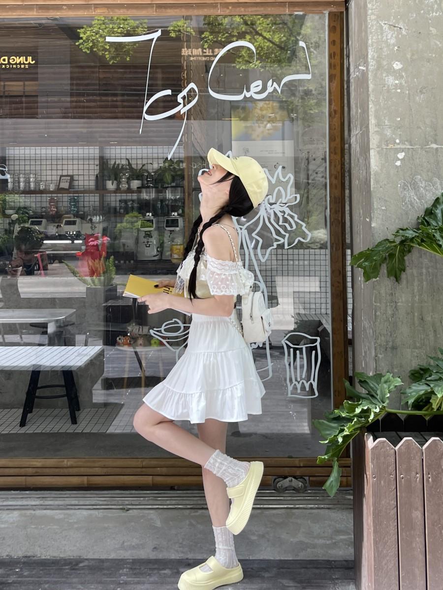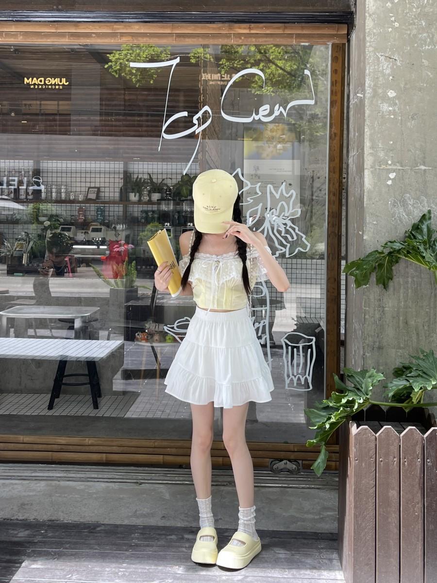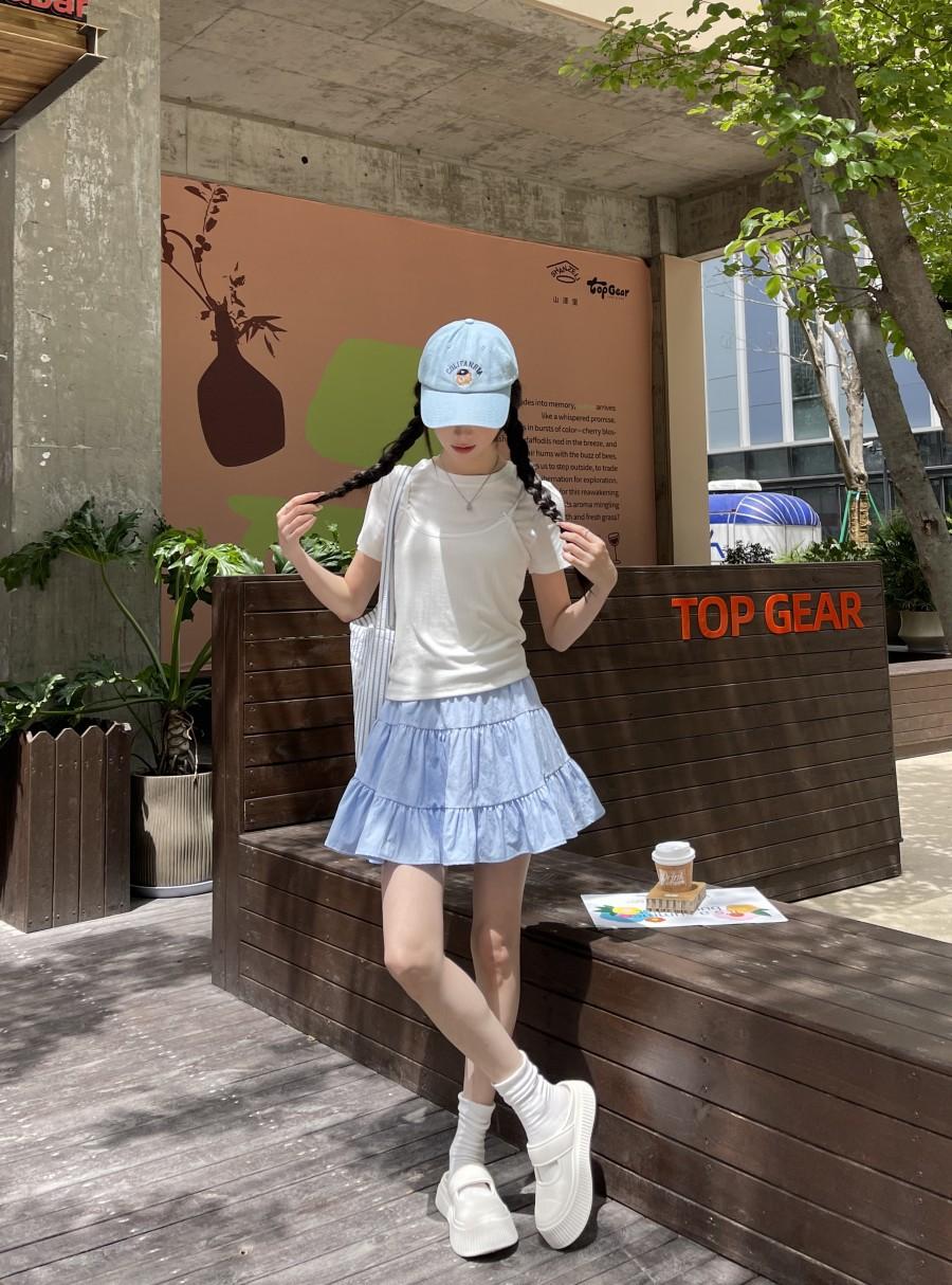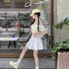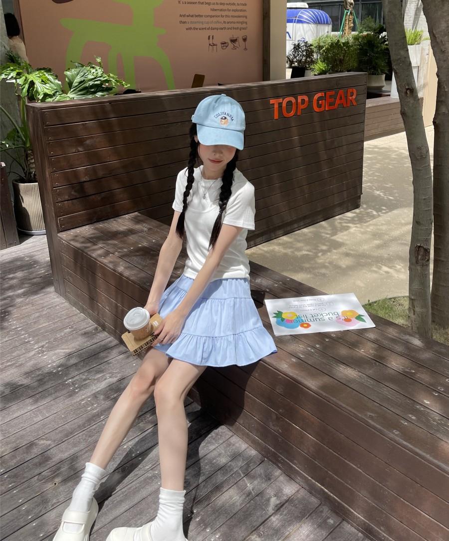 Falda Azul de Cintura Alta para Mujer Corte A Anti-Exposición Primavera y Verano Estilo Preppy Sencilla Plisada Casual Pastel Falda Corta