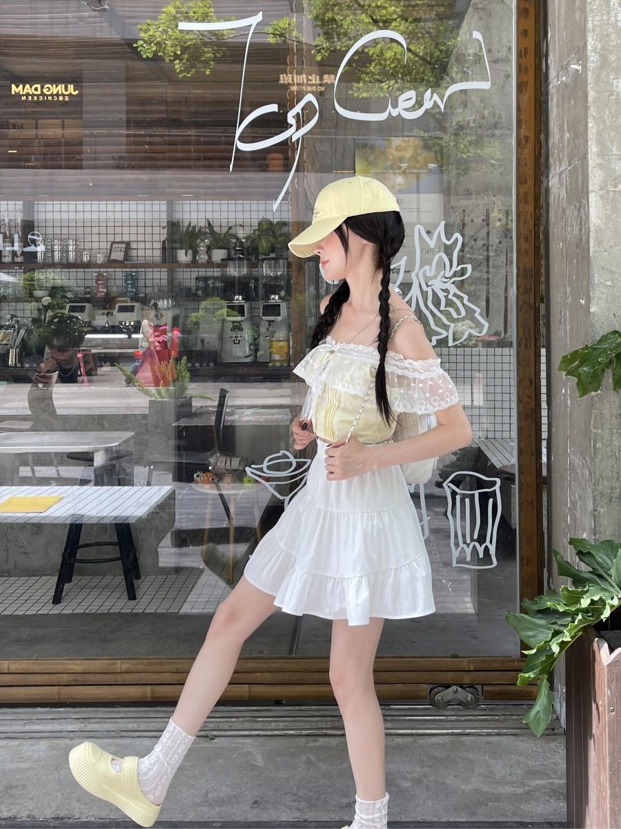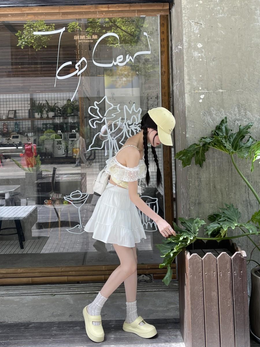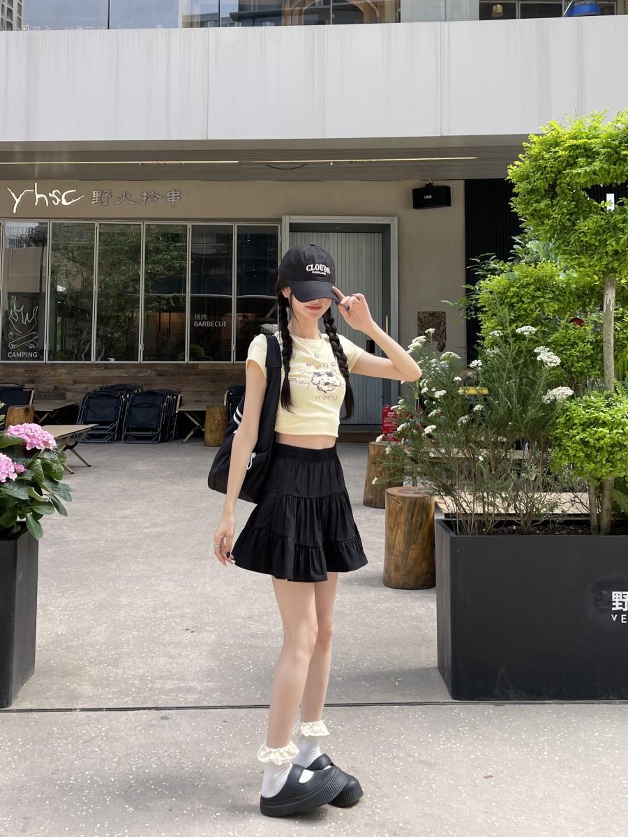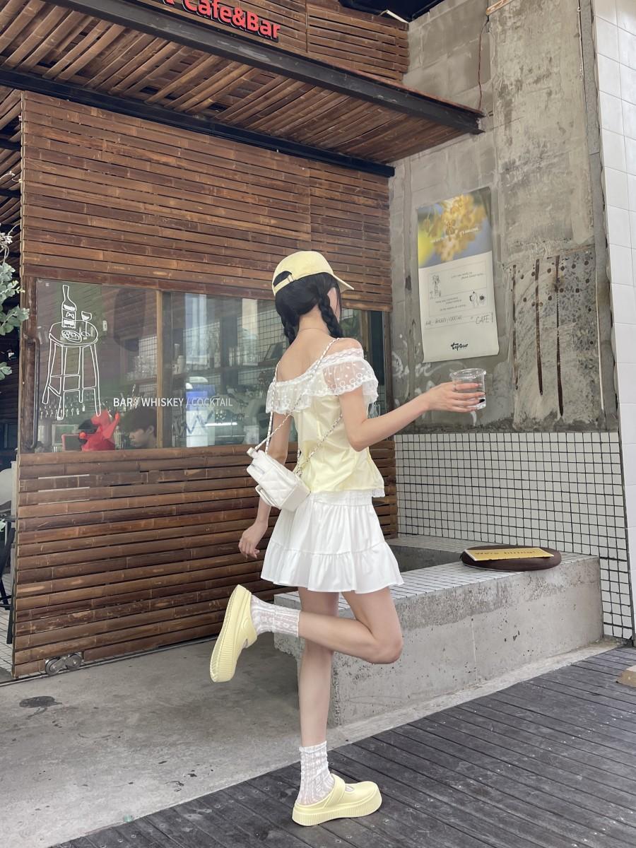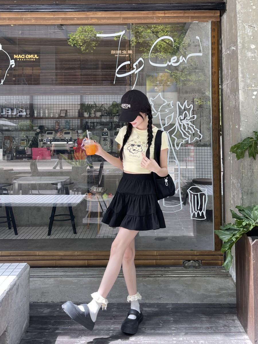 Falda Azul de Cintura Alta para Mujer Corte A Anti-Exposición Primavera y Verano Estilo Preppy Sencilla Plisada Casual Pastel Falda Corta