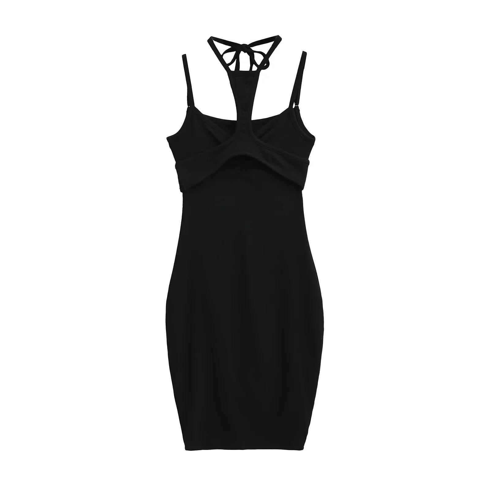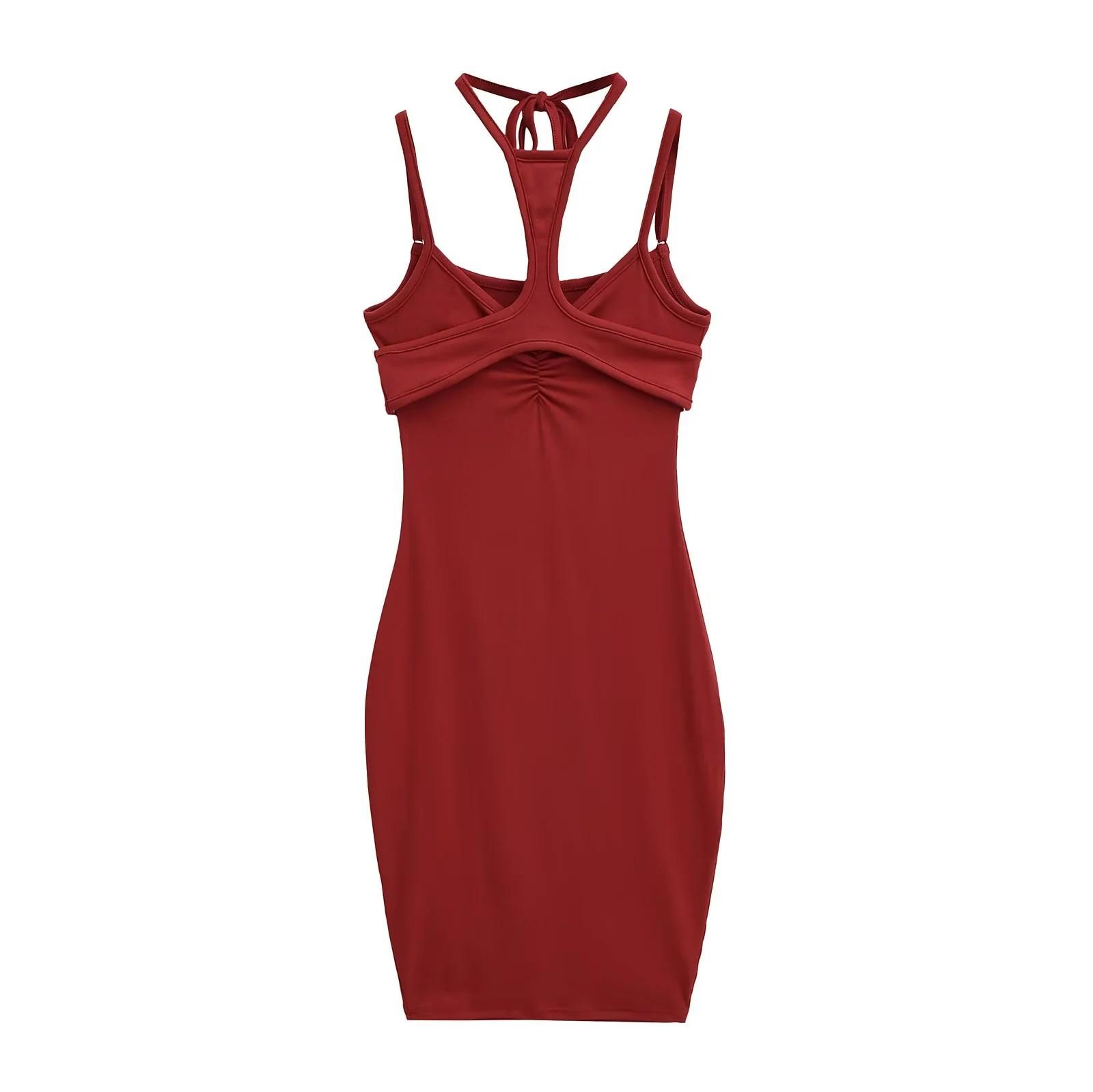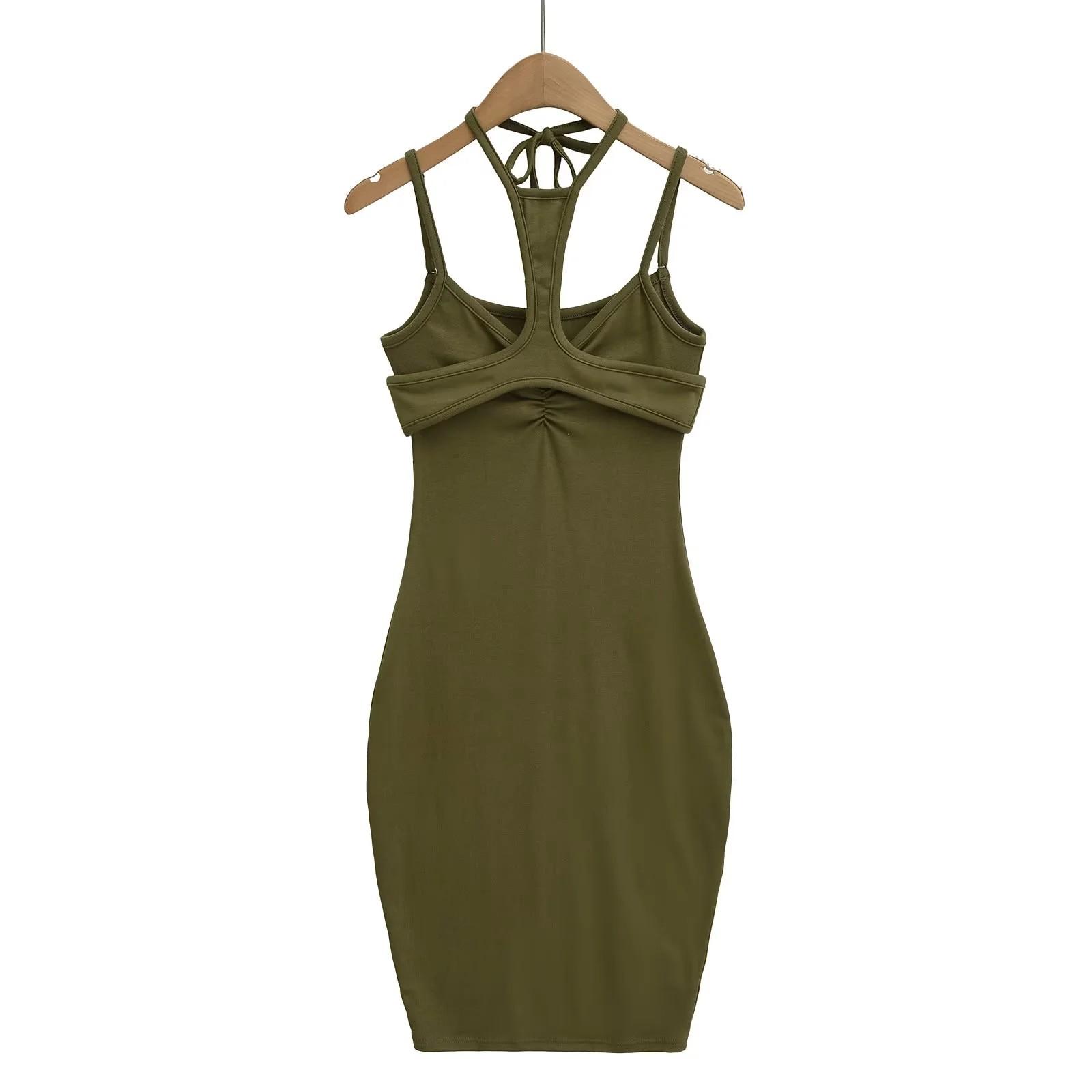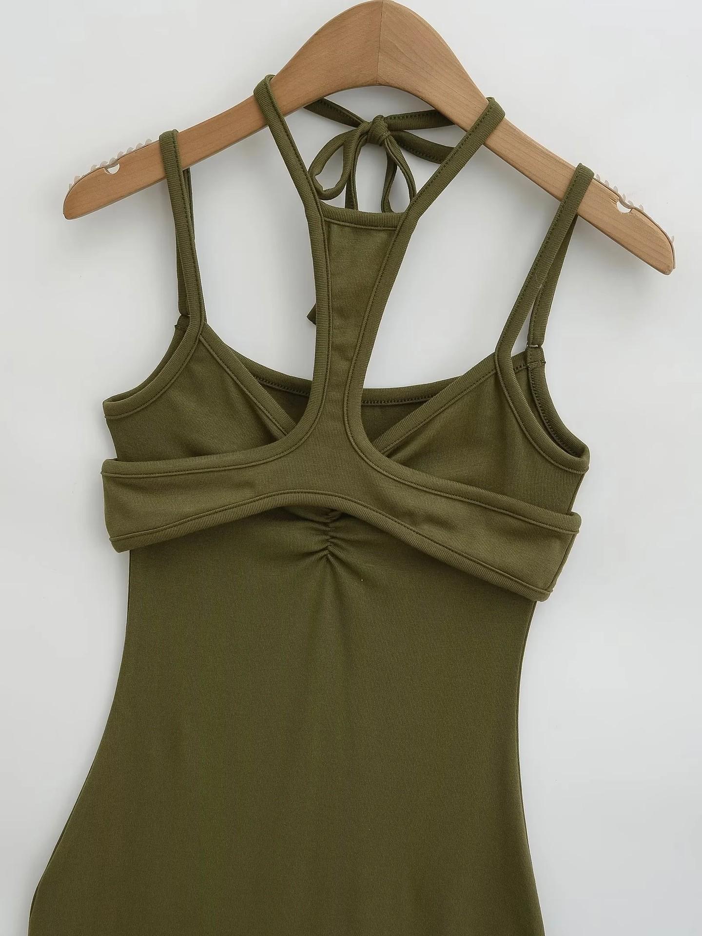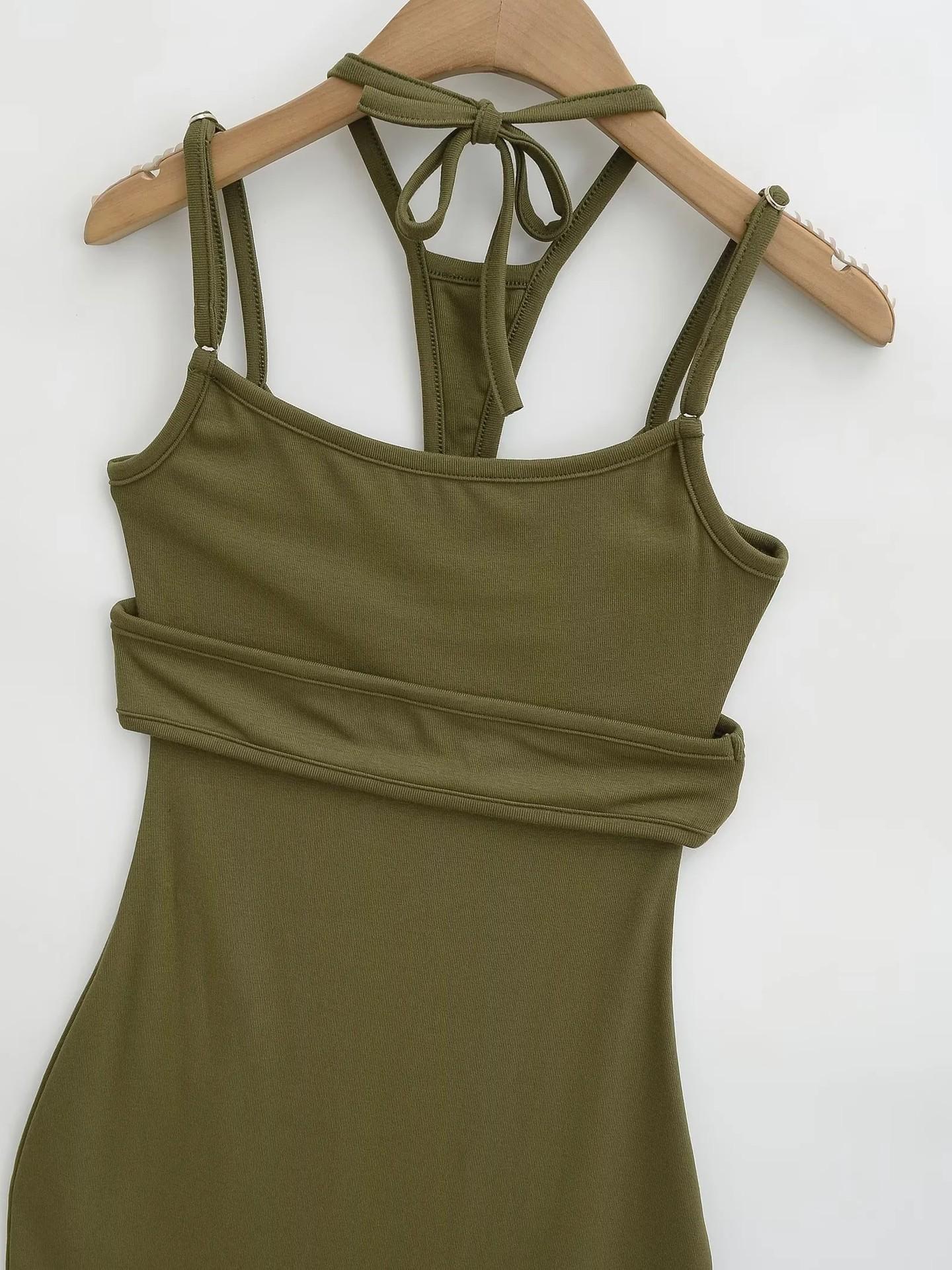 2025 Spice Girl Figura Sexy Cintura Alta Doble Cuello en V Tirantes Falda con Abertura Deseo Puro Vacaciones Espalda Descubierta Falda de Playa