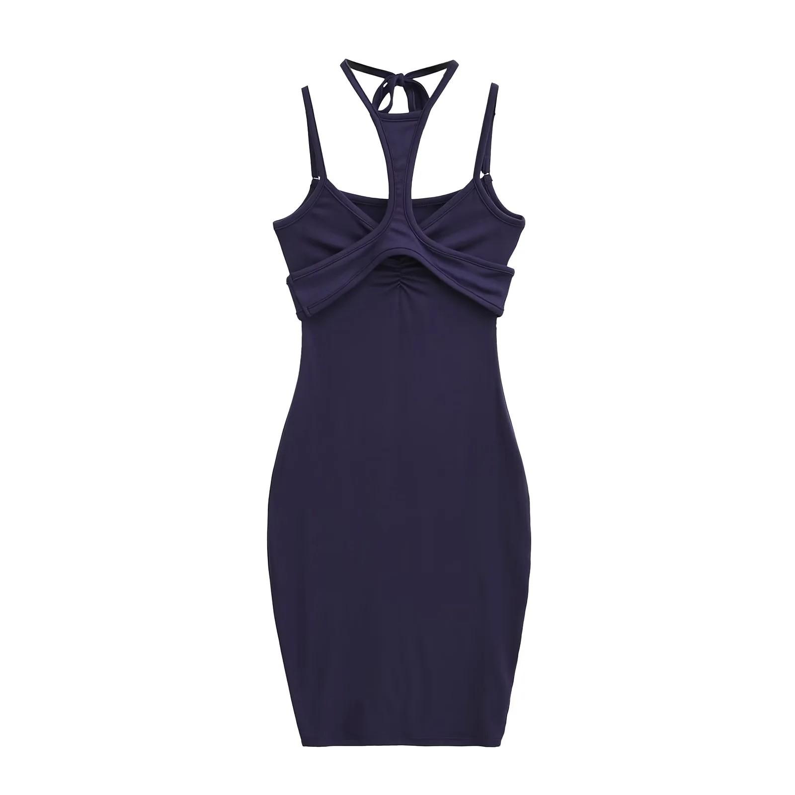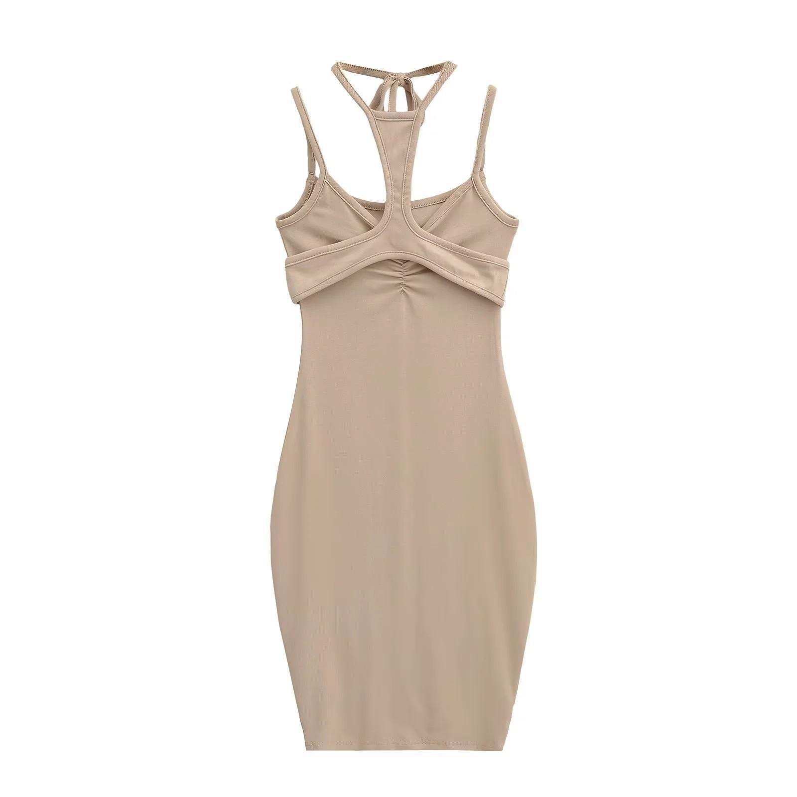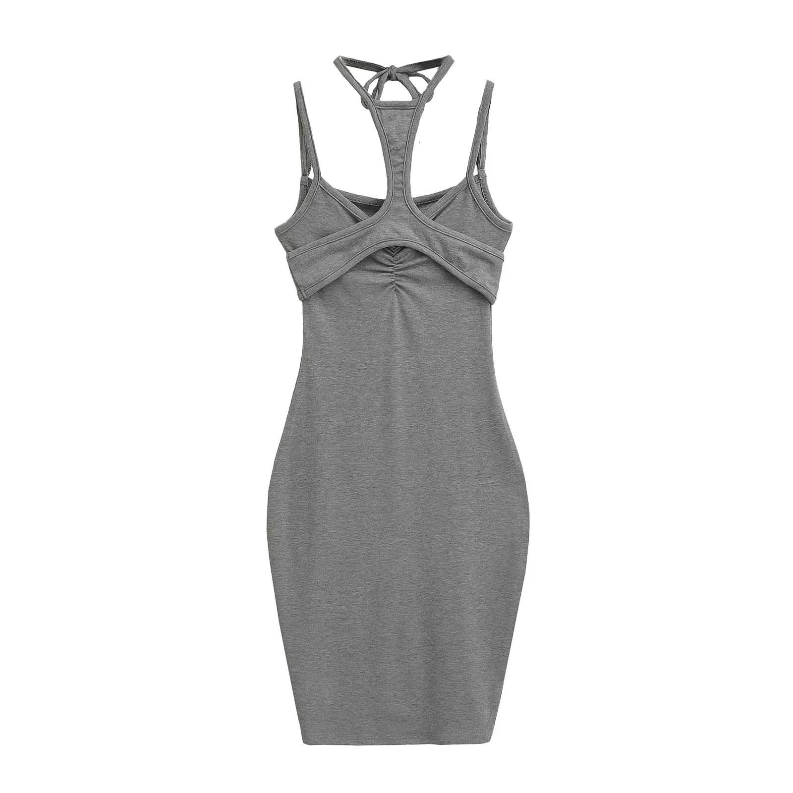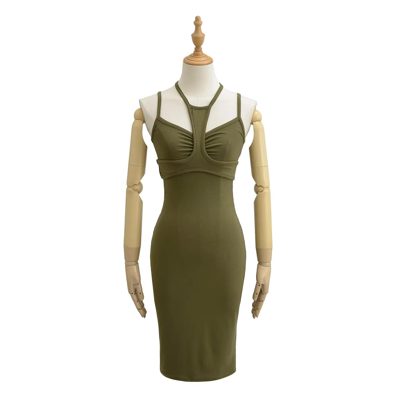 2025 Spice Girl Figura Sexy Cintura Alta Doble Cuello en V Tirantes Falda con Abertura Deseo Puro Vacaciones Espalda Descubierta Falda de Playa