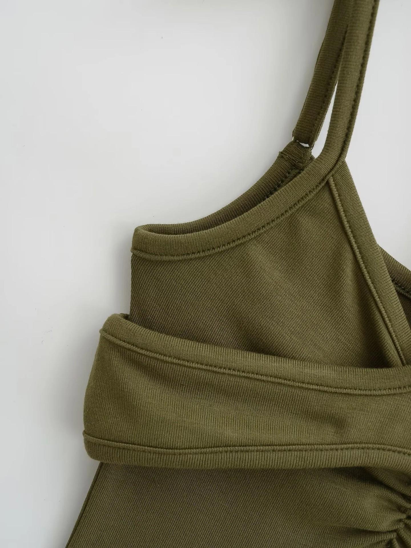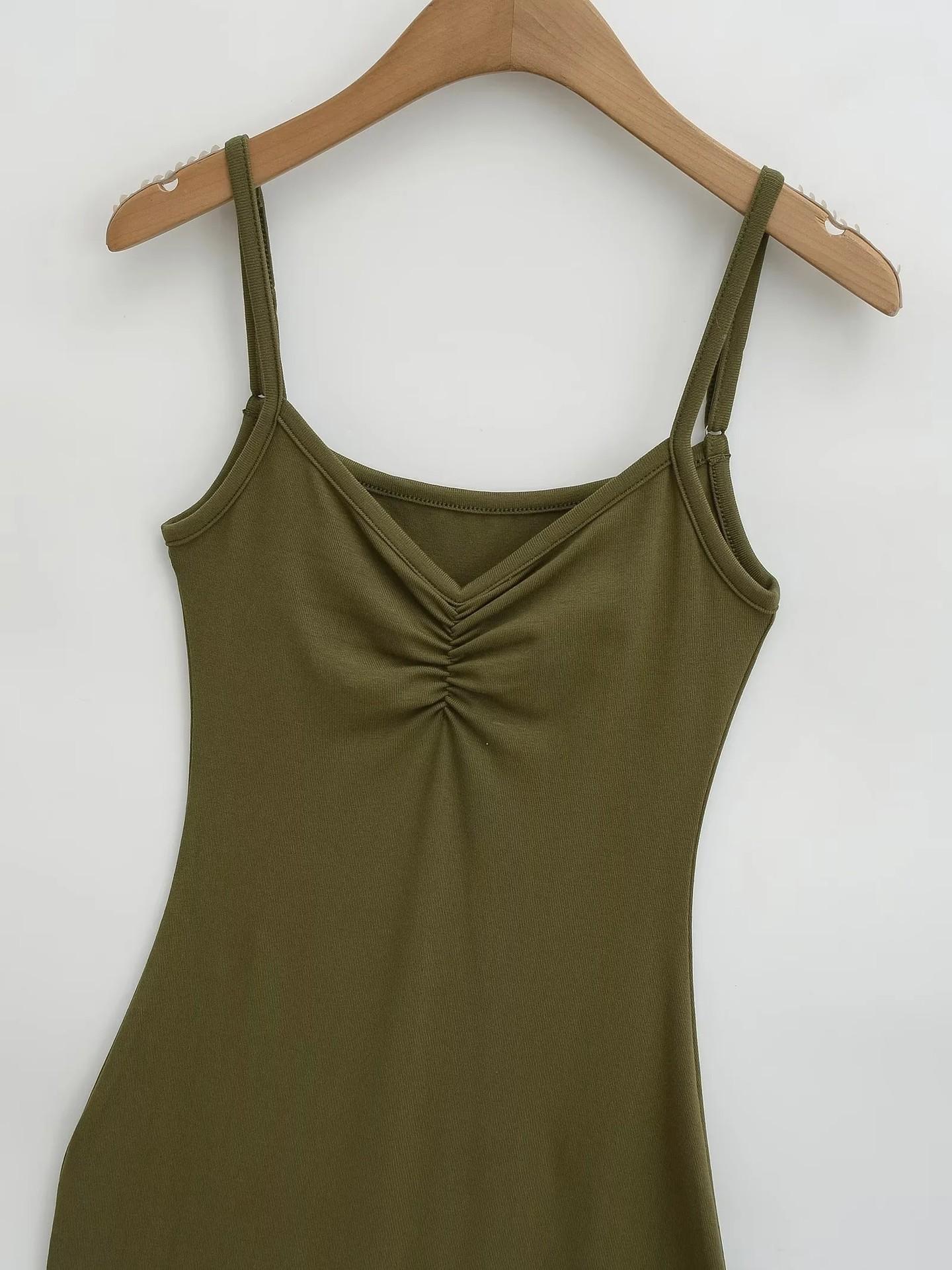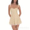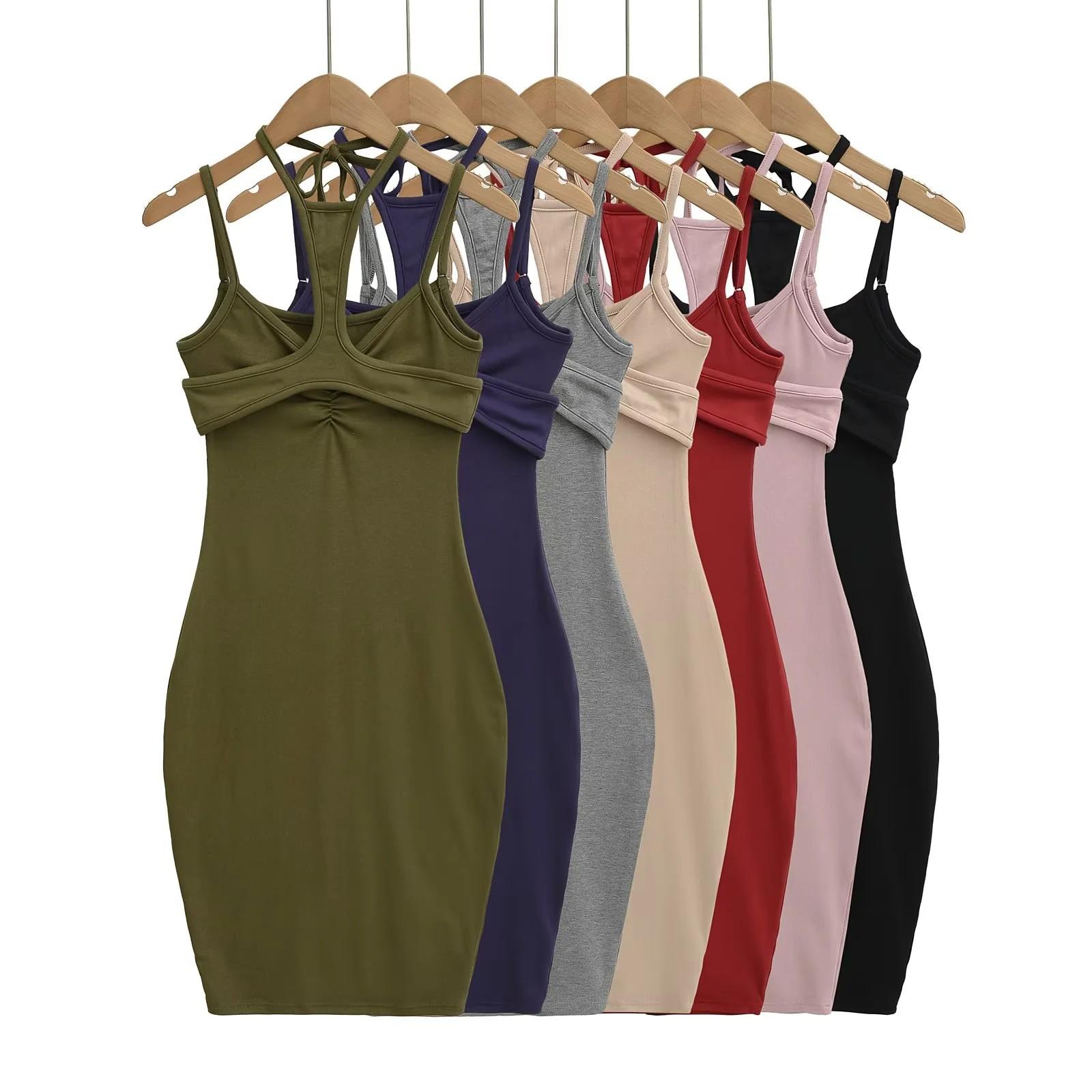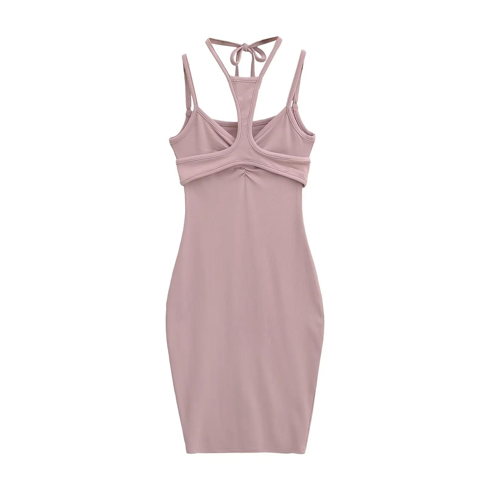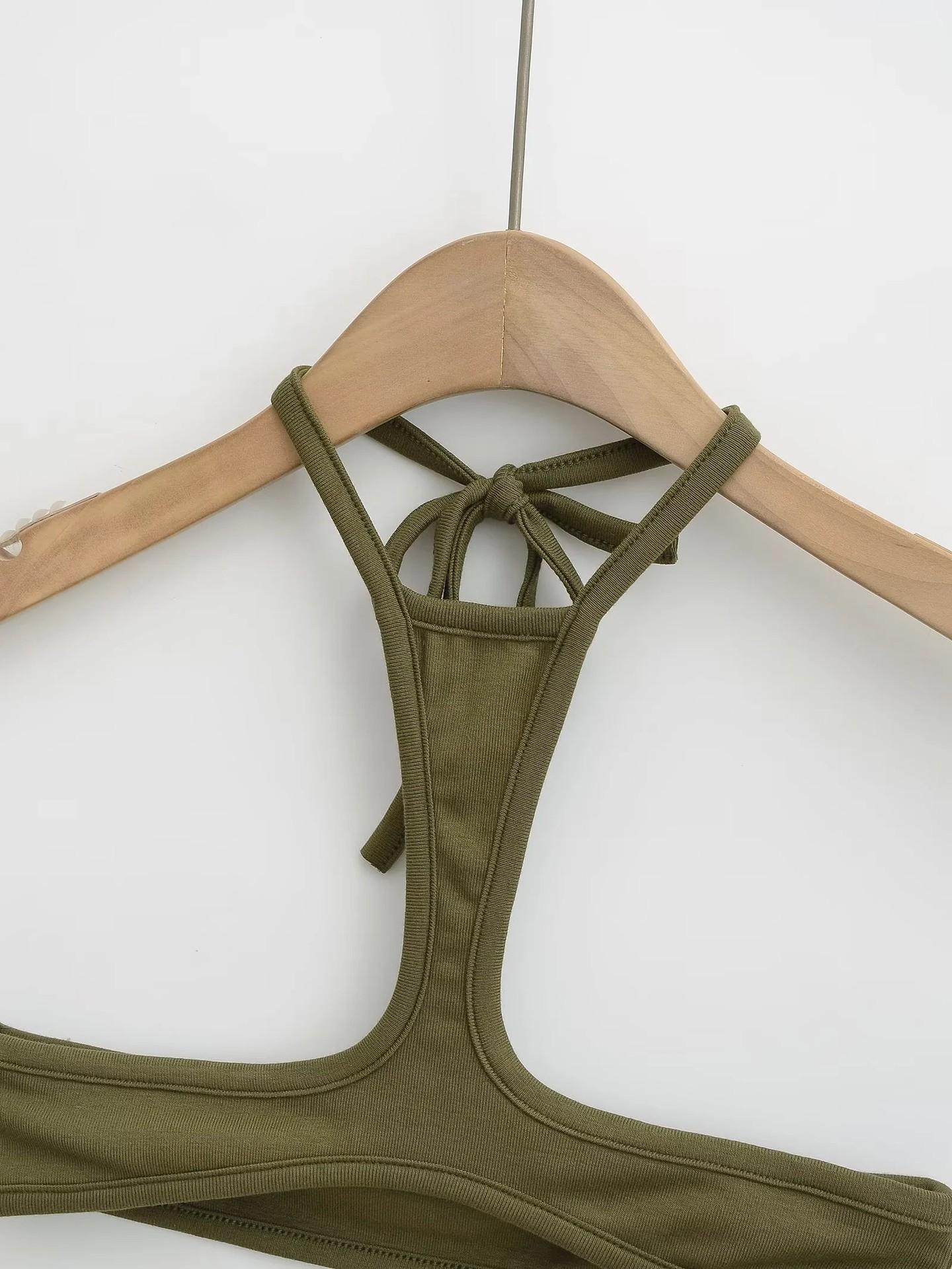 2025 Spice Girl Figura Sexy Cintura Alta Doble Cuello en V Tirantes Falda con Abertura Deseo Puro Vacaciones Espalda Descubierta Falda de Playa