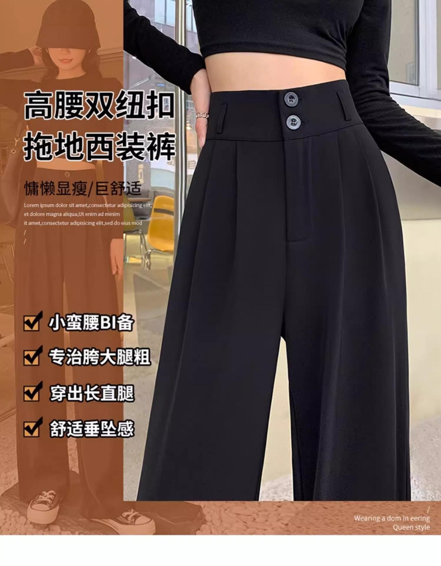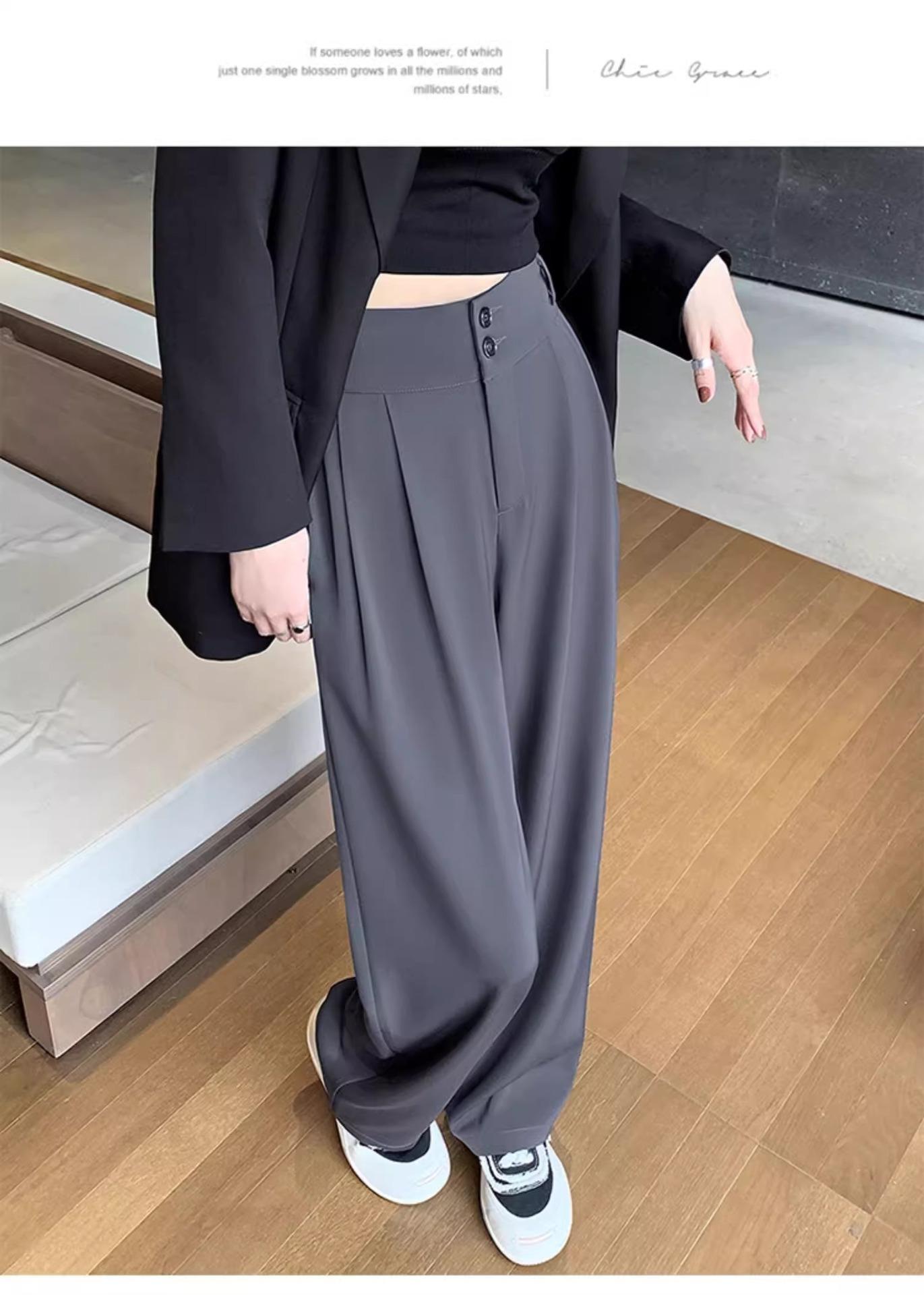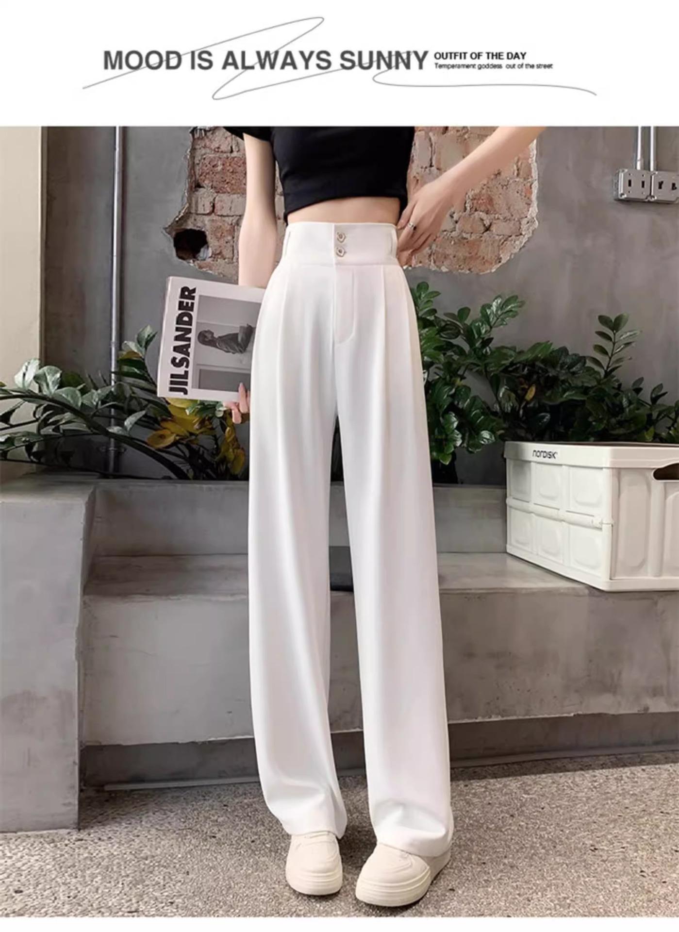 Pantalones de Traje Rectos Holgados para Mujer Verano 2025 Nuevo Versátil Drapeado Moderno Slim-Fit Pierna Ancha Pantalones de Traje