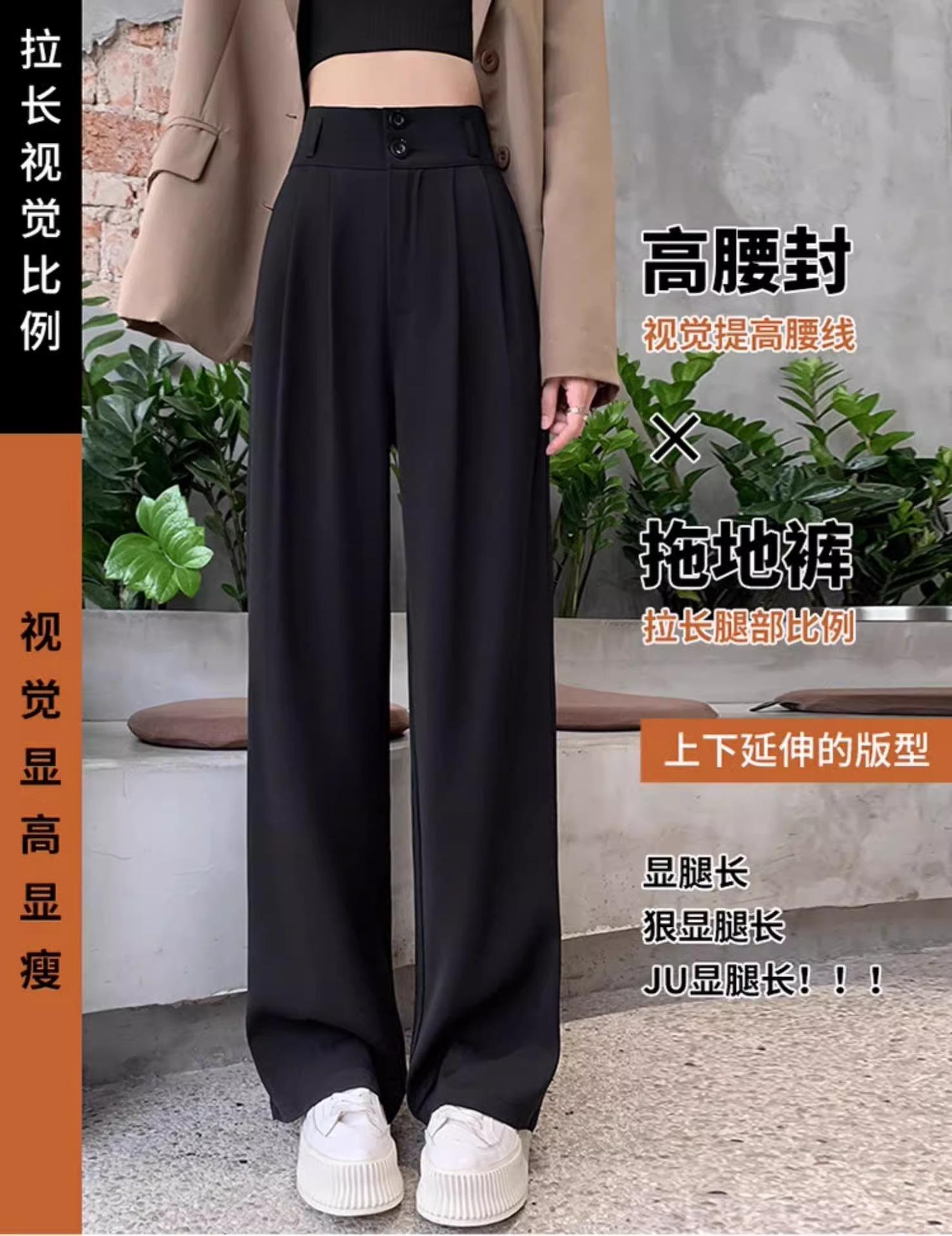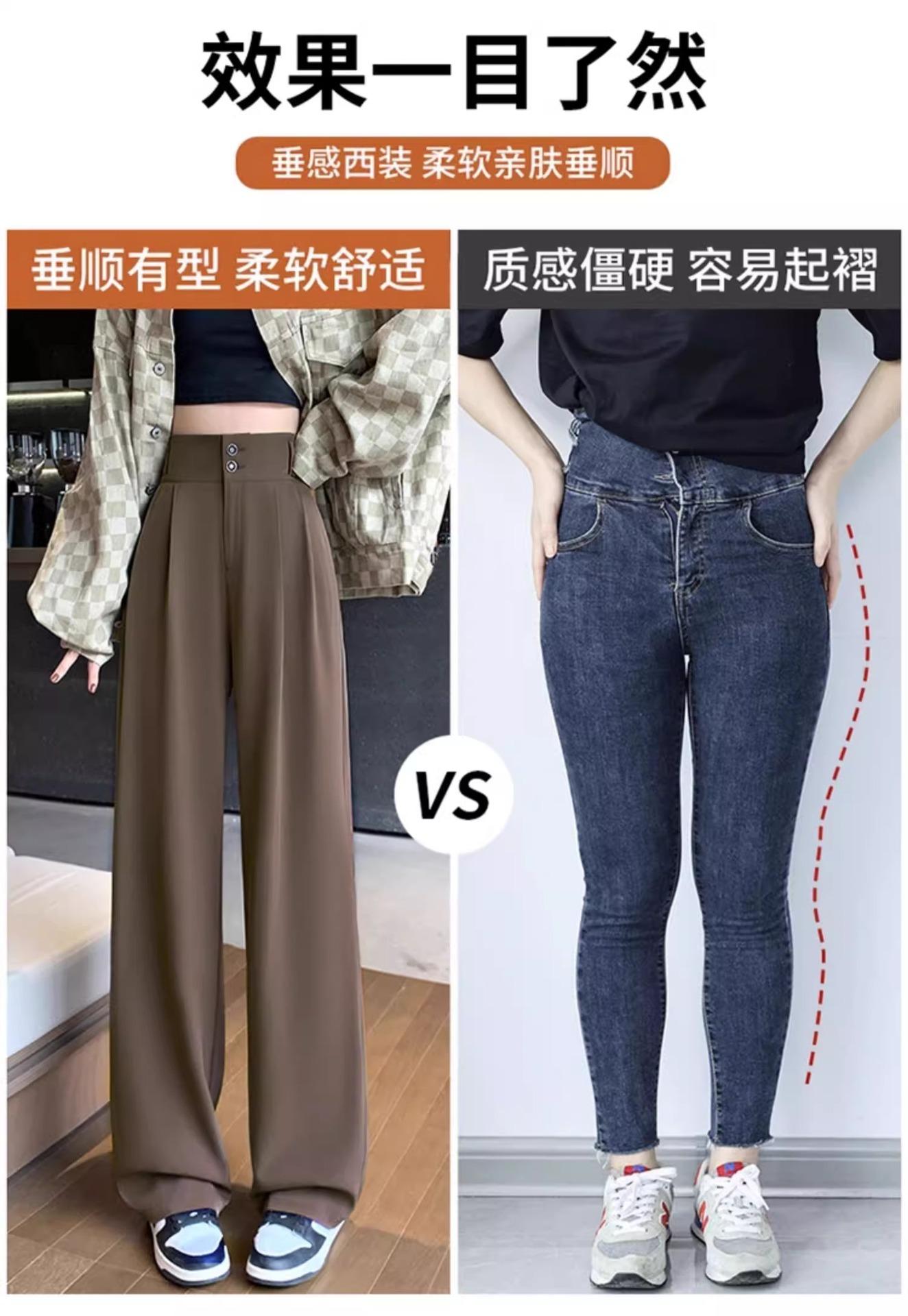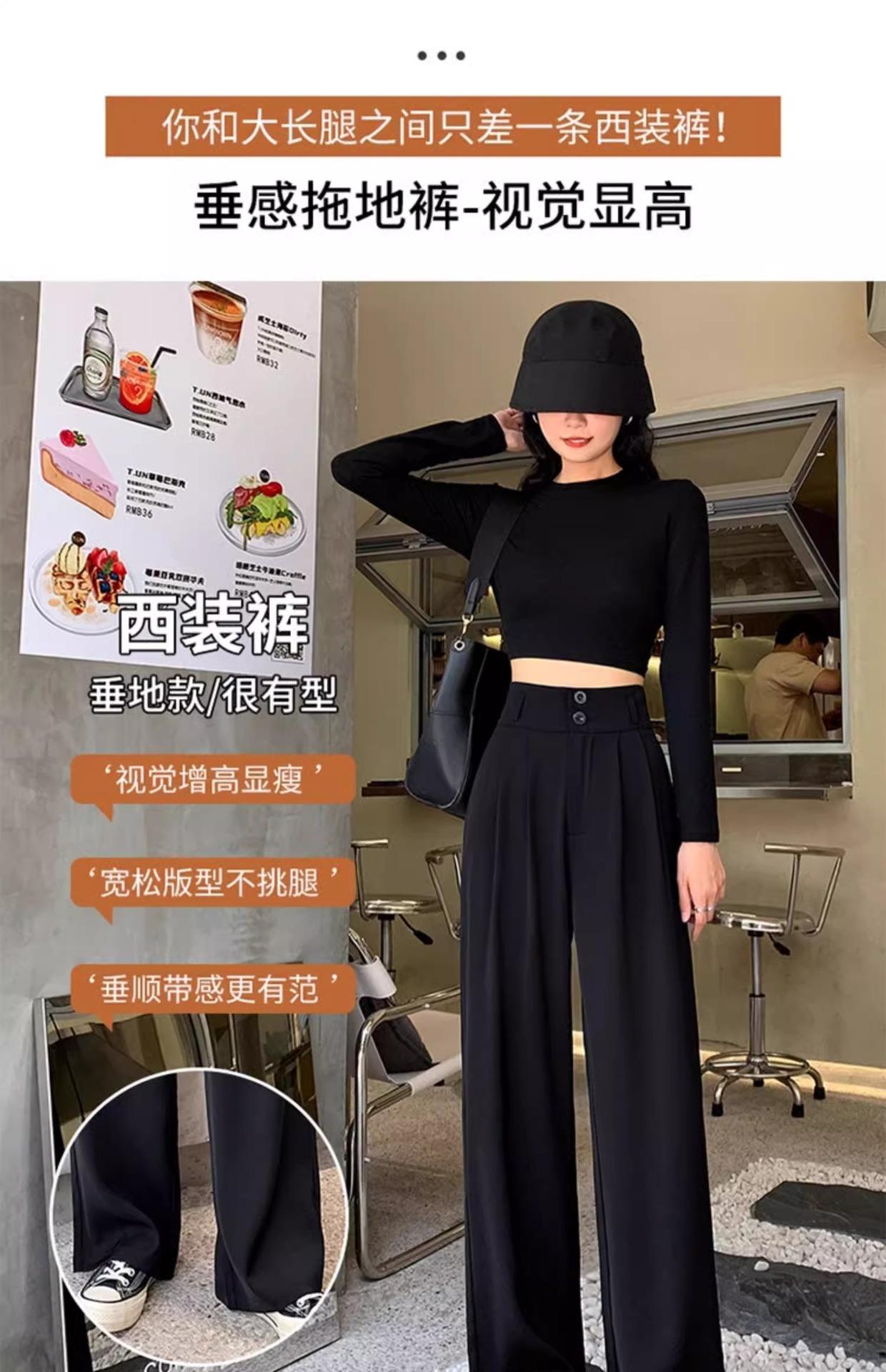 Pantalones de Traje Rectos Holgados para Mujer Verano 2025 Nuevo Versátil Drapeado Moderno Slim-Fit Pierna Ancha Pantalones de Traje
