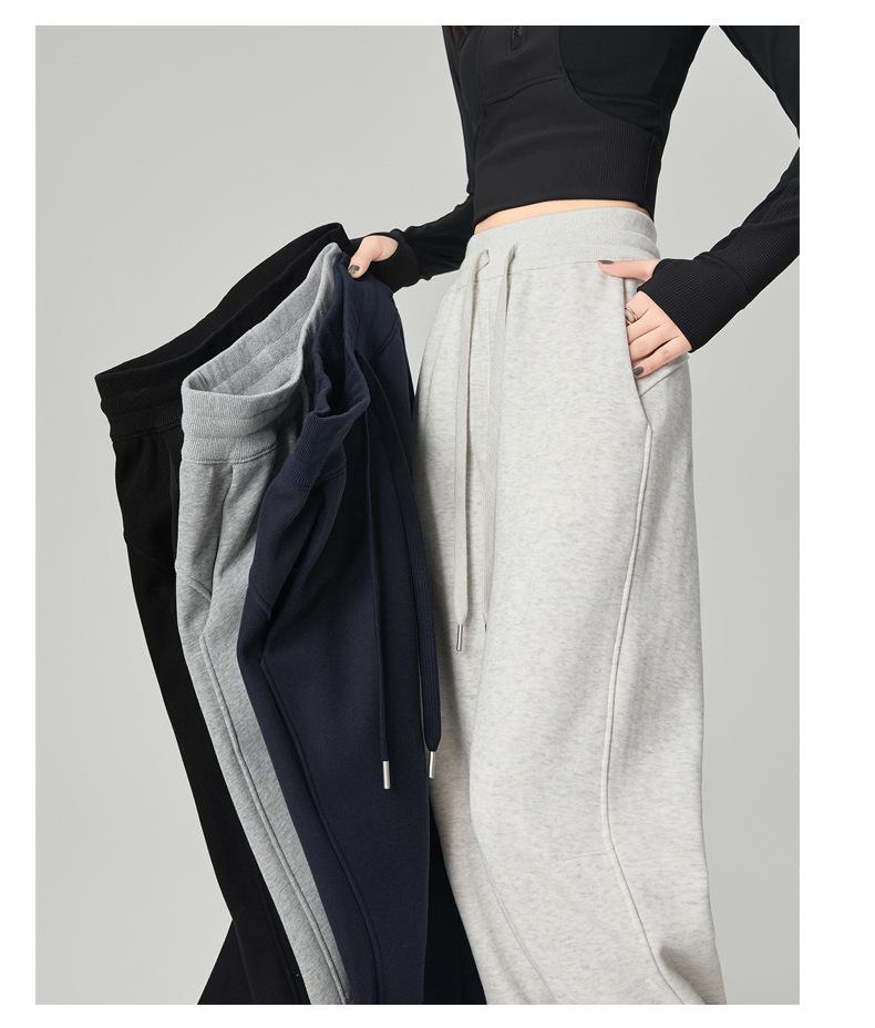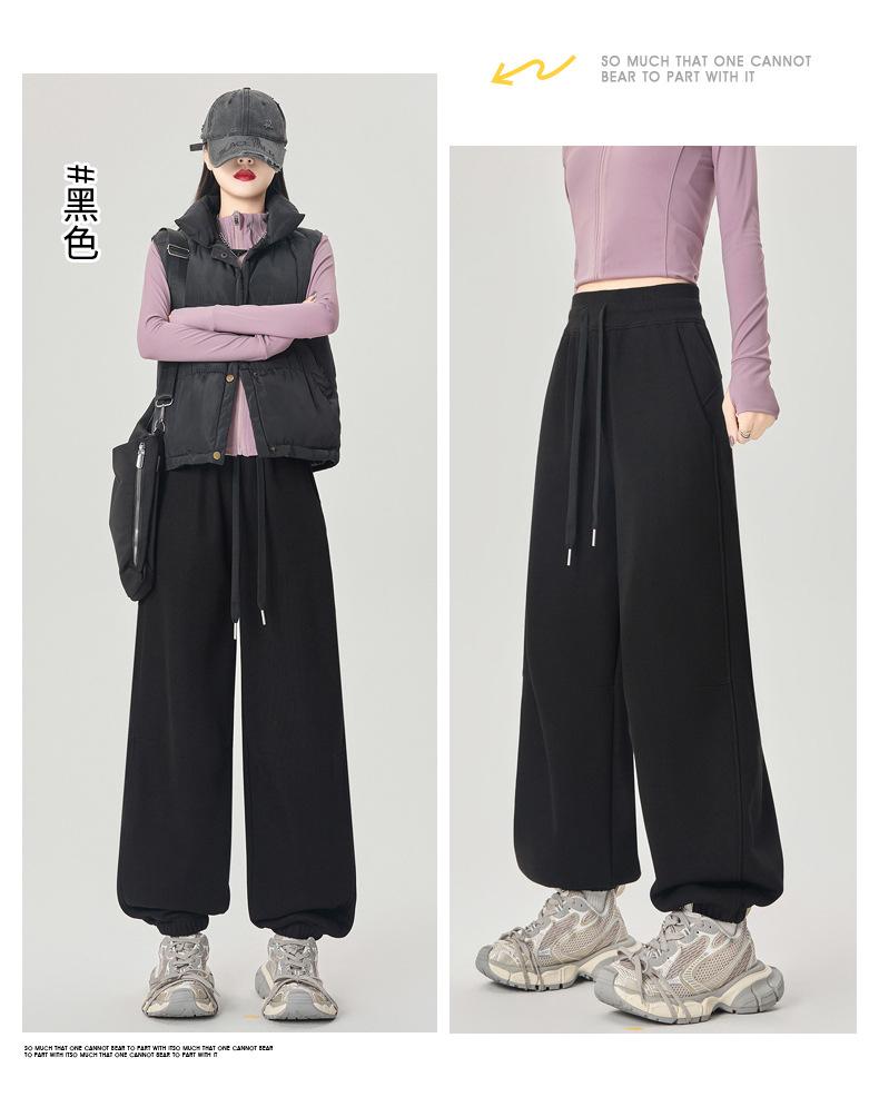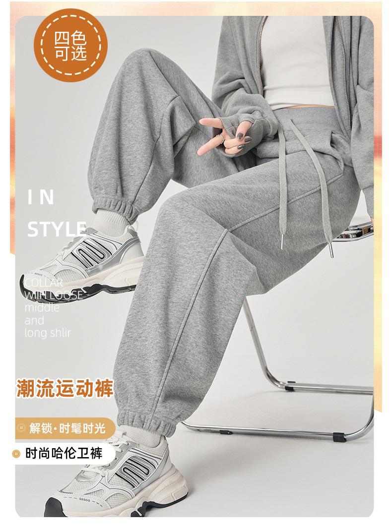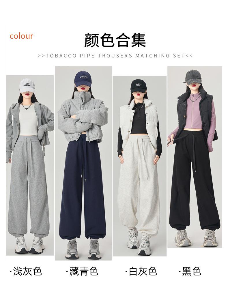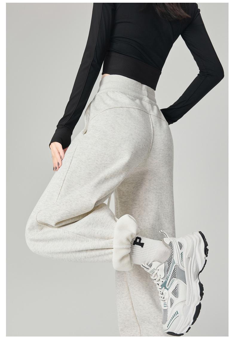 Pantalones Casuales para Mujer 2025 Otoño e Invierno Nuevo Estilo Sueltos y Cómodos Color Puro Moda Deportiva Forro Polar Engrosado Cálido Pantalones Deportivos de Punto
