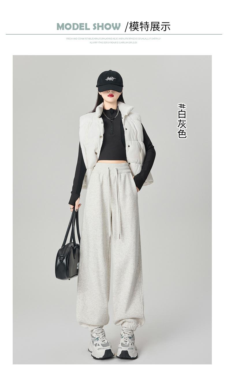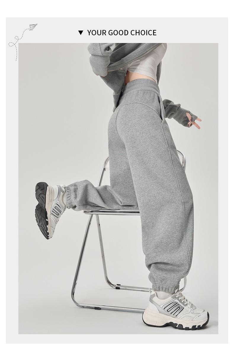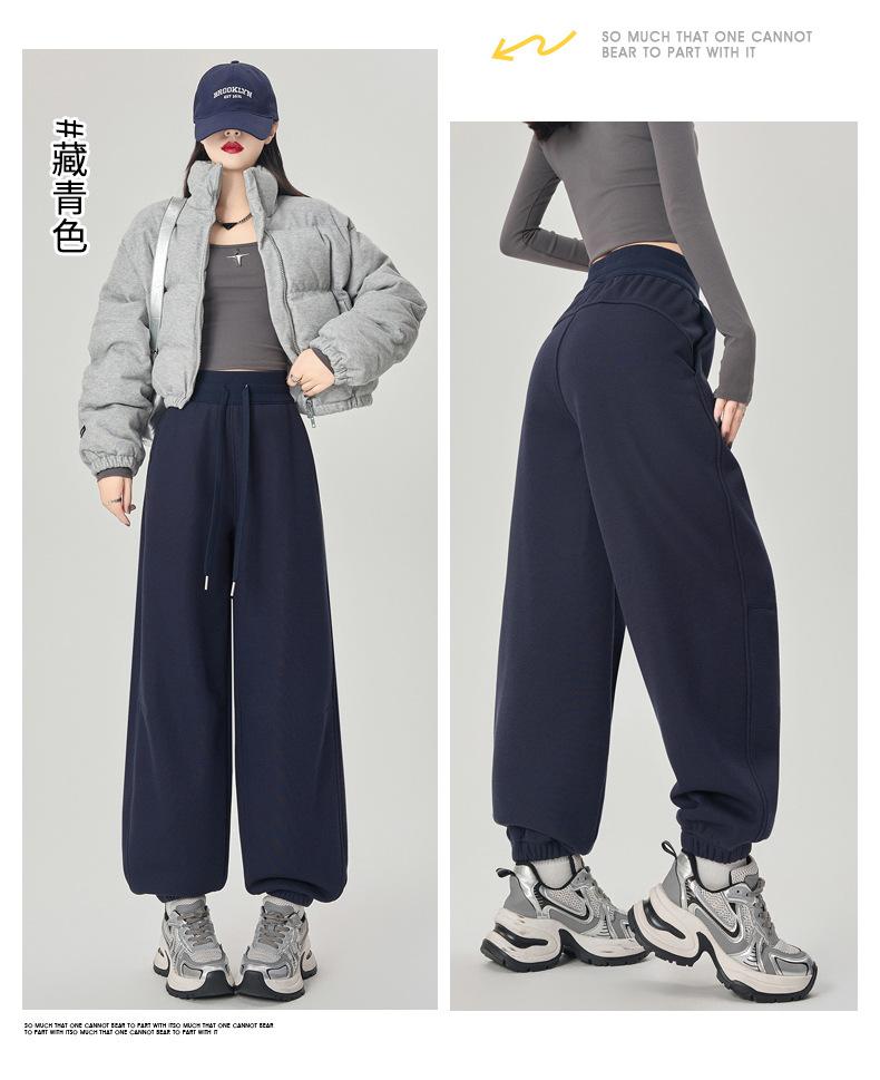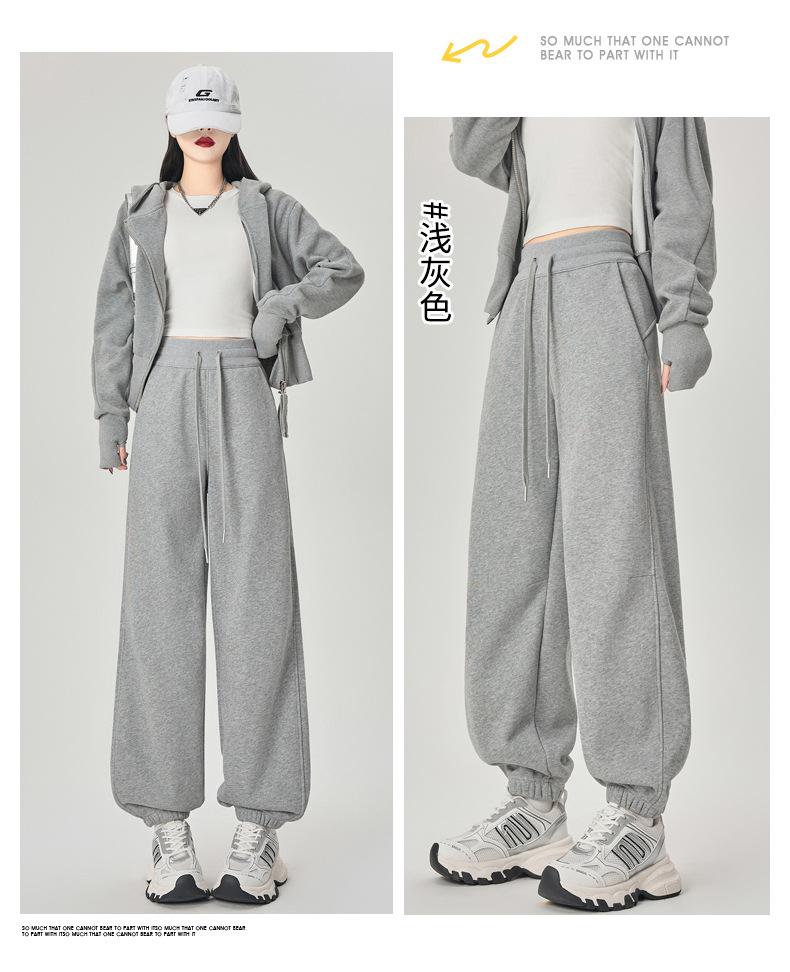 Pantalones Casuales para Mujer 2025 Otoño e Invierno Nuevo Estilo Sueltos y Cómodos Color Puro Moda Deportiva Forro Polar Engrosado Cálido Pantalones Deportivos de Punto