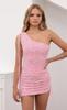 Moda Transfronteriza Europea y Americana Sexy Falda Corta de un Hombro, Vestido de Noche de Alta Gama, Elegante Vestido de Lentejuelas Ajustado a las Caderas (4 colores